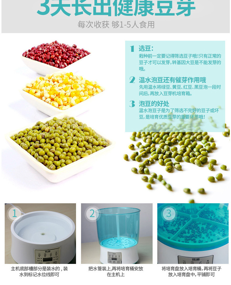 콩나물 기계, 가정용 자동 대용량 콩나물 양동이, 생 녹두나물 항아리, 소형 묘목 화분