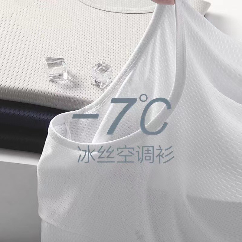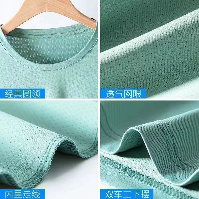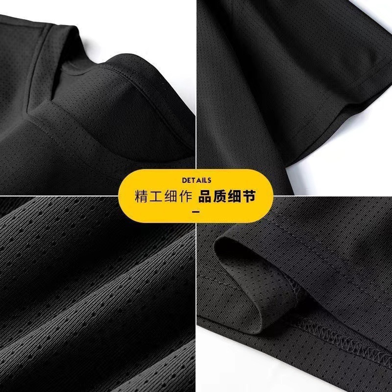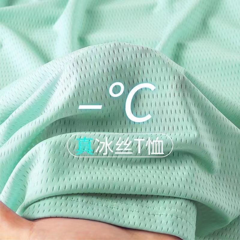 소스 제조업체 여름 메쉬 통기성 아이스 실크 티셔츠 남성용 짧은 소매 라운드 넥 퀵 드라이 아이스 셔츠 여름 옷스토어 가기