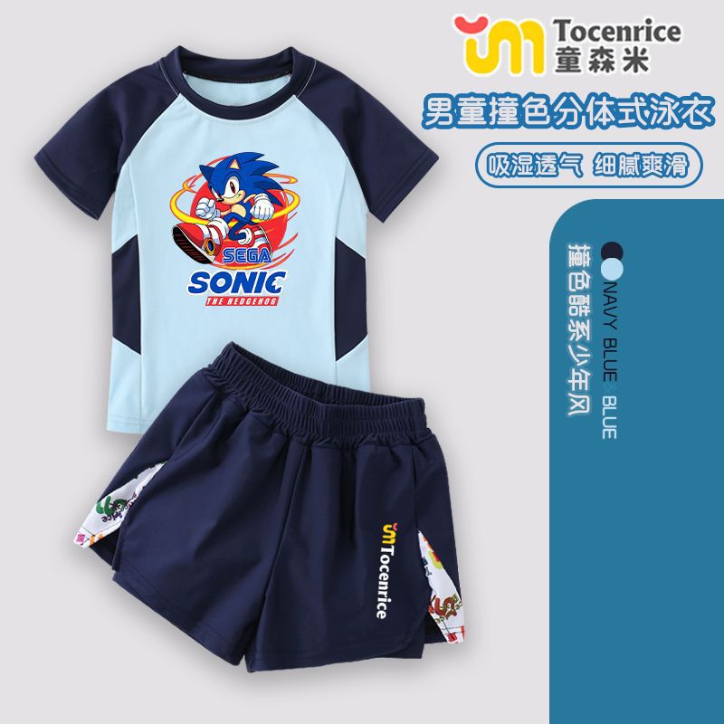소닉 더 헤지혹 어린이 수영복 소년 스플릿 수영복 소년 중대형 어린이 및 청소년 전문 훈련 수영 장비