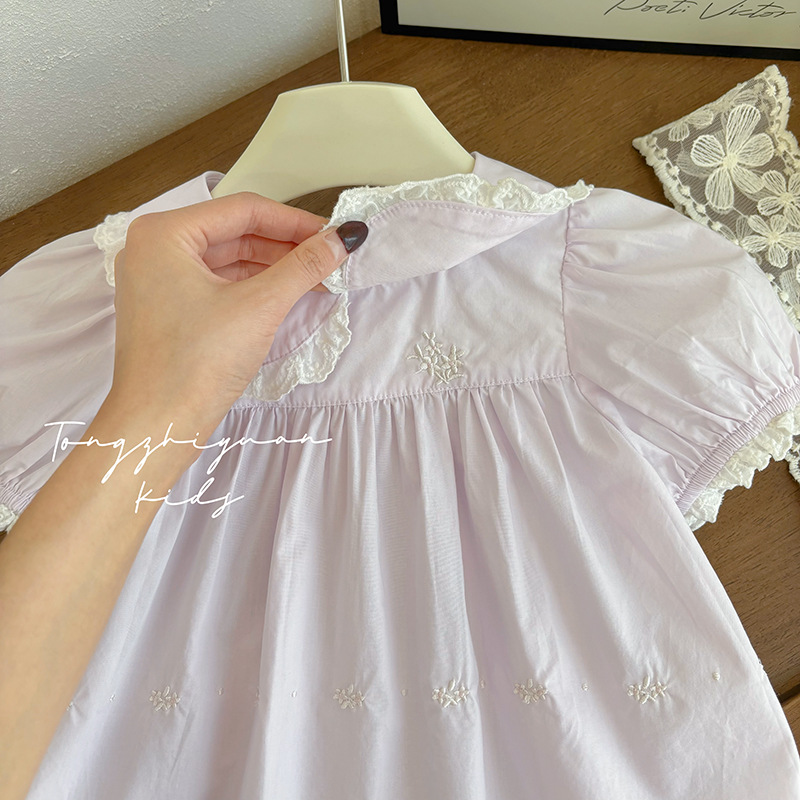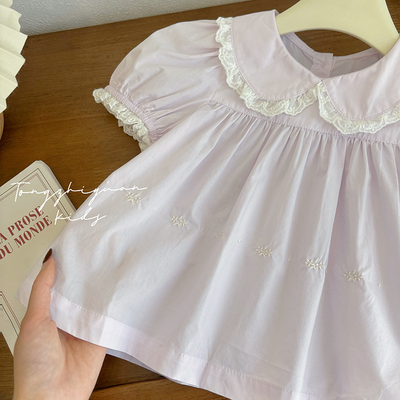 여자 여름 새로운 패션 세련된 인형 칼라 라일락 짧은 소매 셔츠 아기 소녀 캐주얼 품질 아동복 유행스토어 가기
