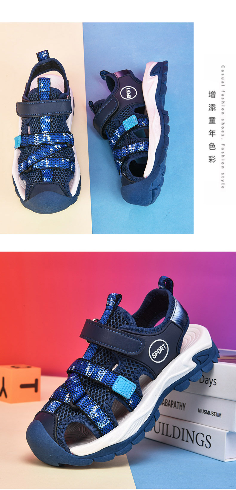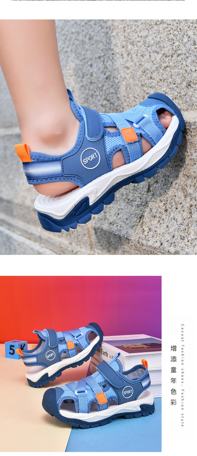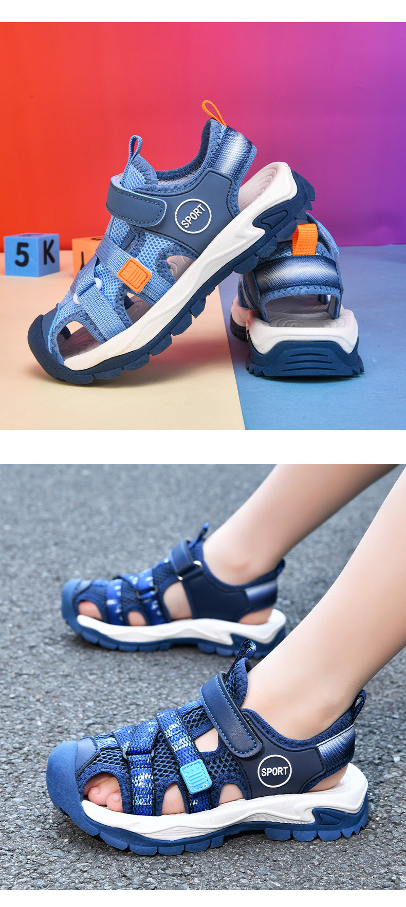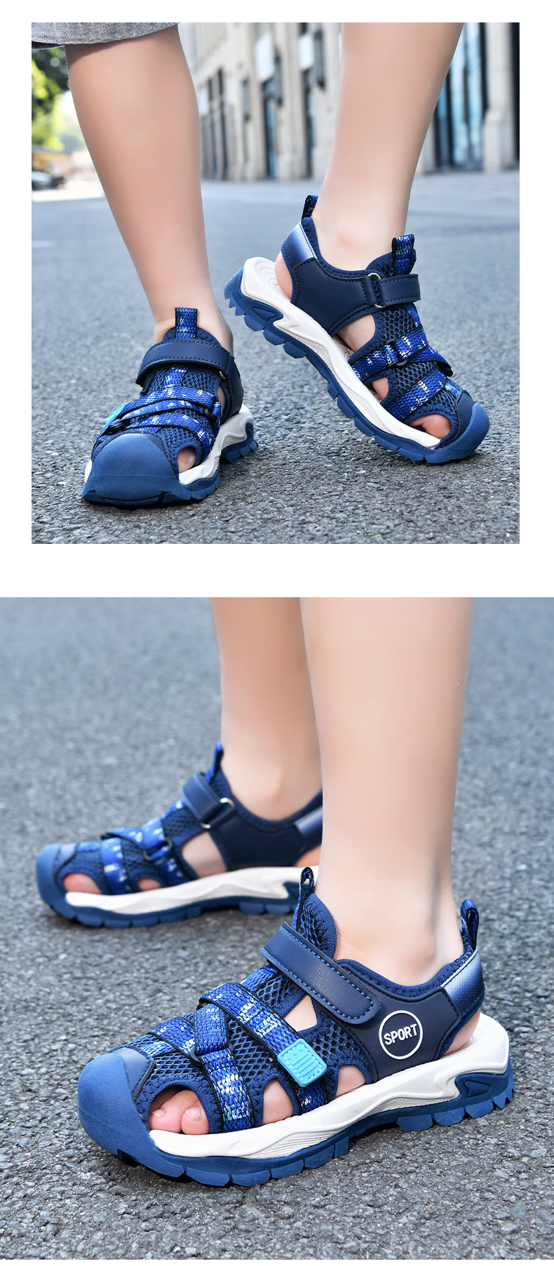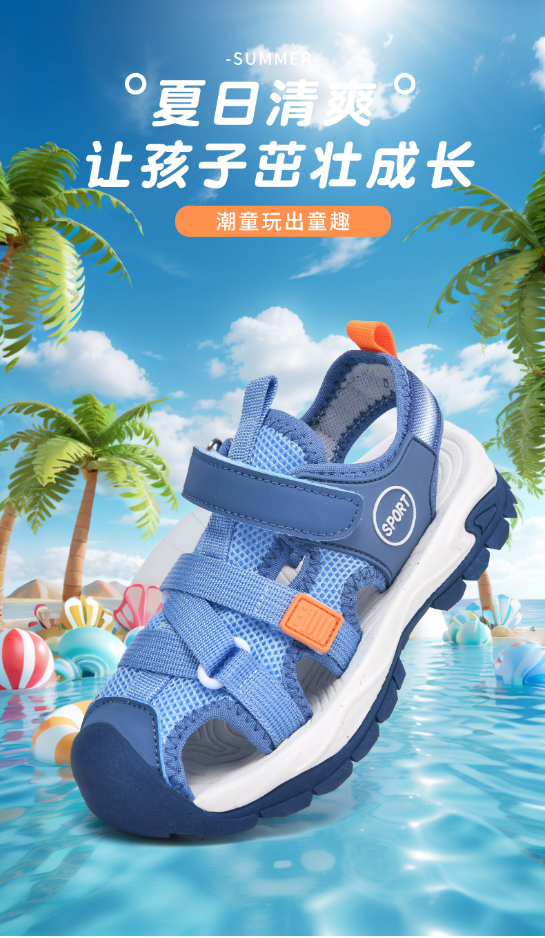 어린이 스포츠 Baotou 샌들 소년 2025 뉴 비치 슈즈 소프트 솔 미끄럼 방지 운동화 중 및 대형 어린이를위한 국경 간 신발스토어 가기