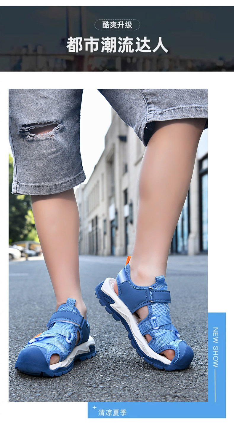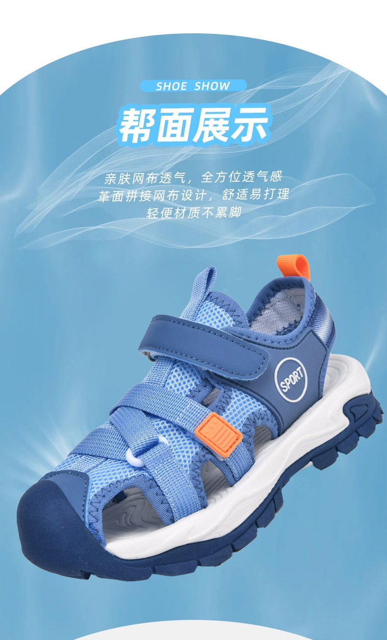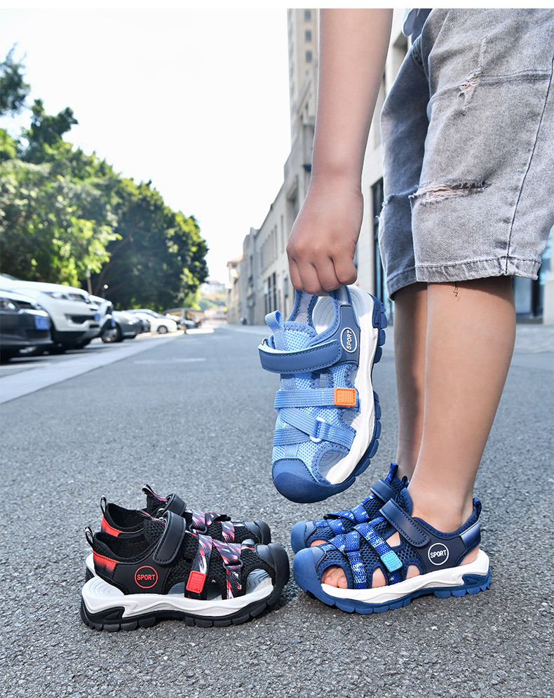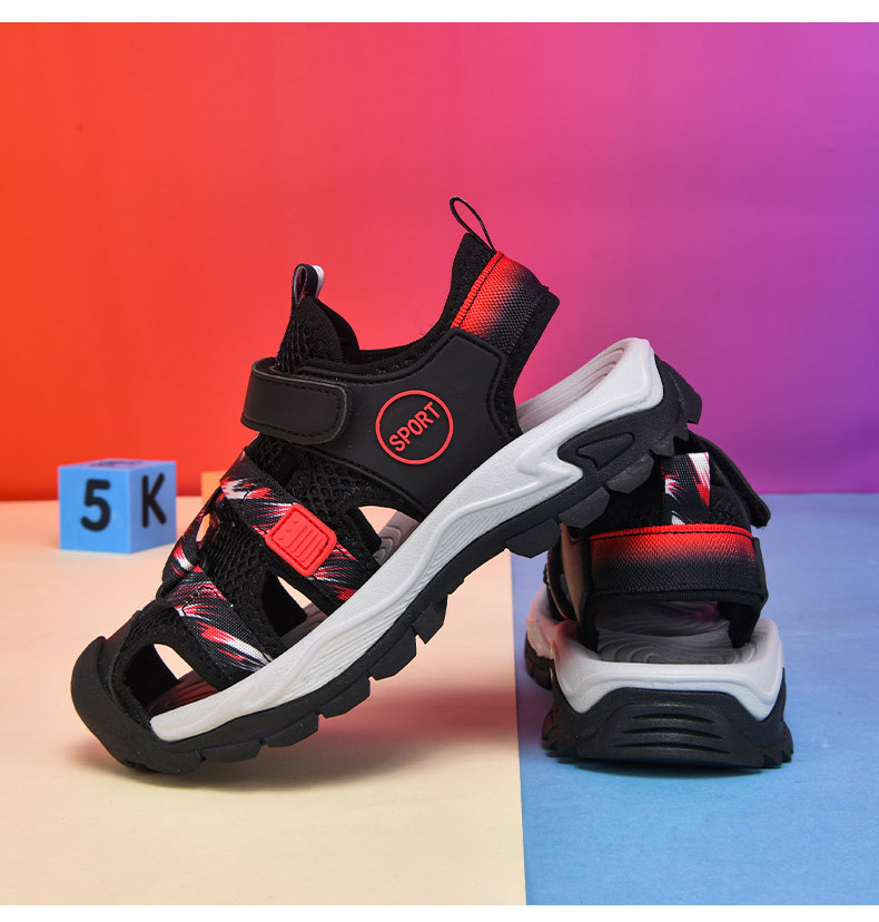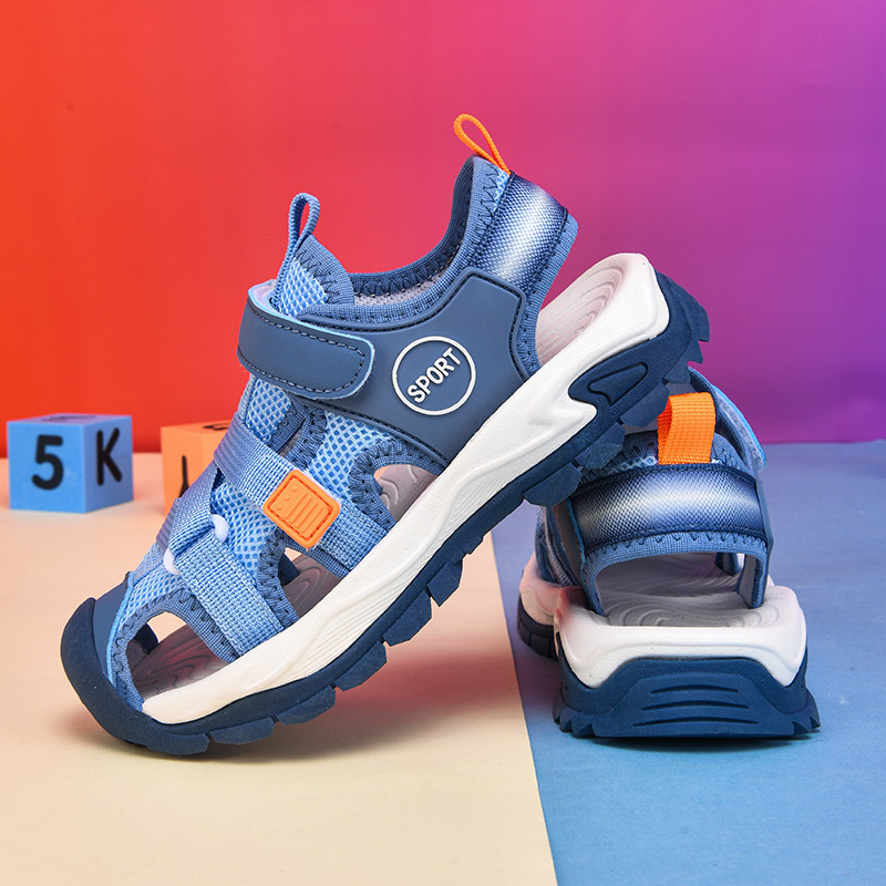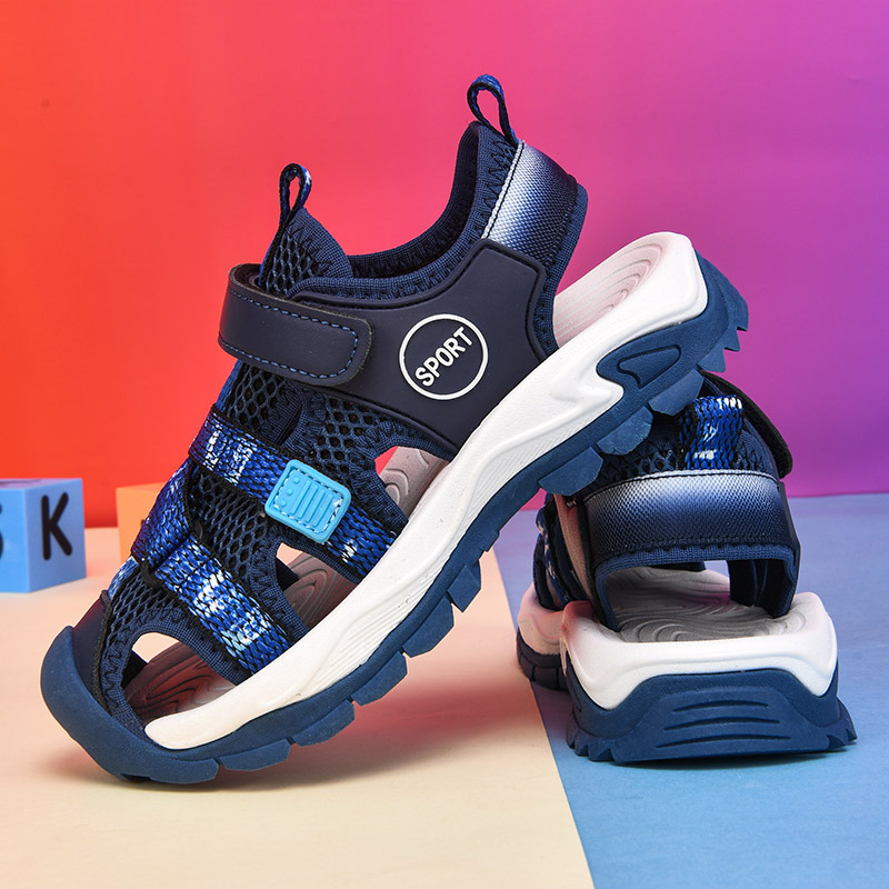 어린이 스포츠 Baotou 샌들 소년 2025 뉴 비치 슈즈 소프트 솔 미끄럼 방지 운동화 중 및 대형 어린이를위한 국경 간 신발