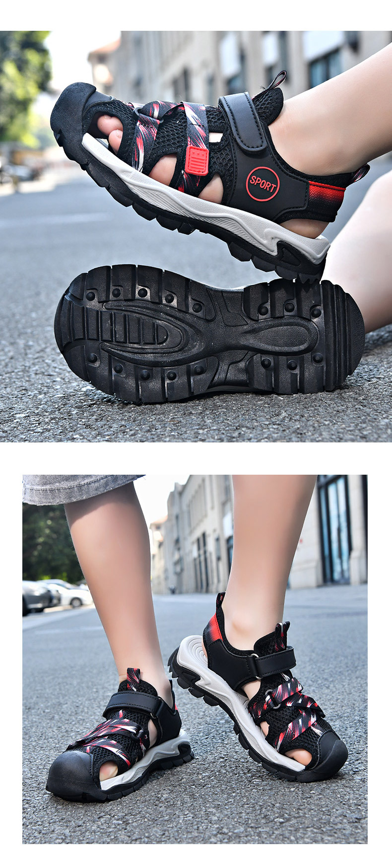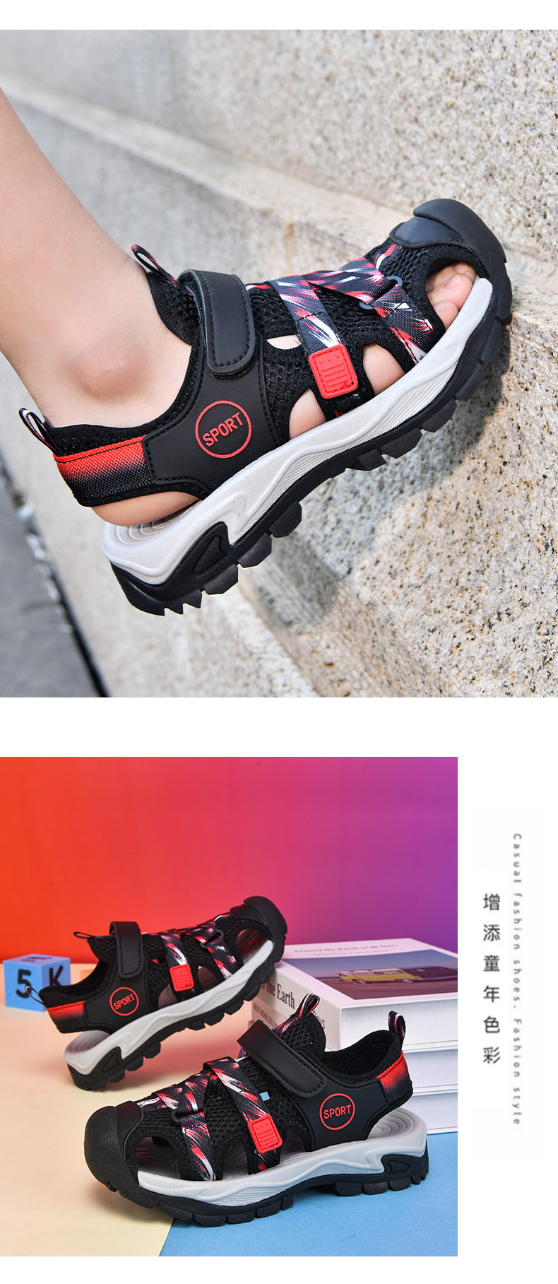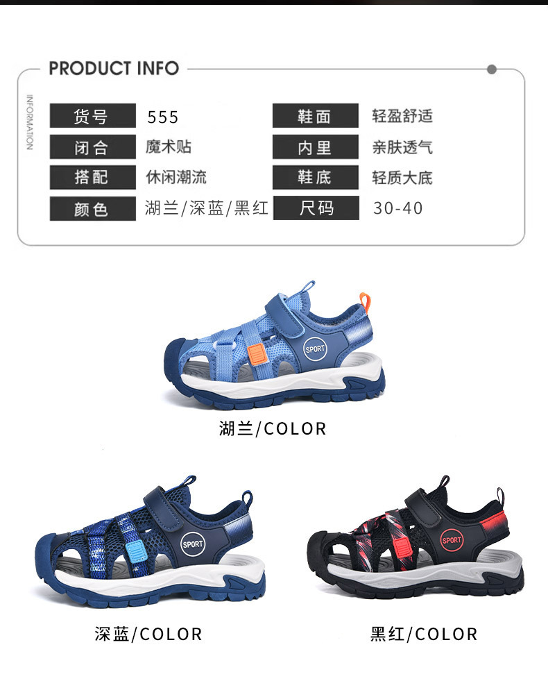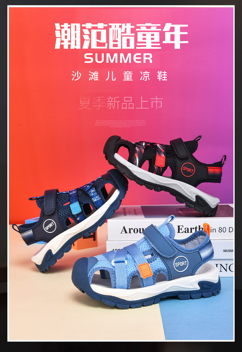 어린이 스포츠 Baotou 샌들 소년 2025 뉴 비치 슈즈 소프트 솔 미끄럼 방지 운동화 중 및 대형 어린이를위한 국경 간 신발