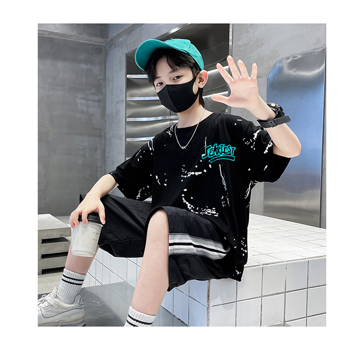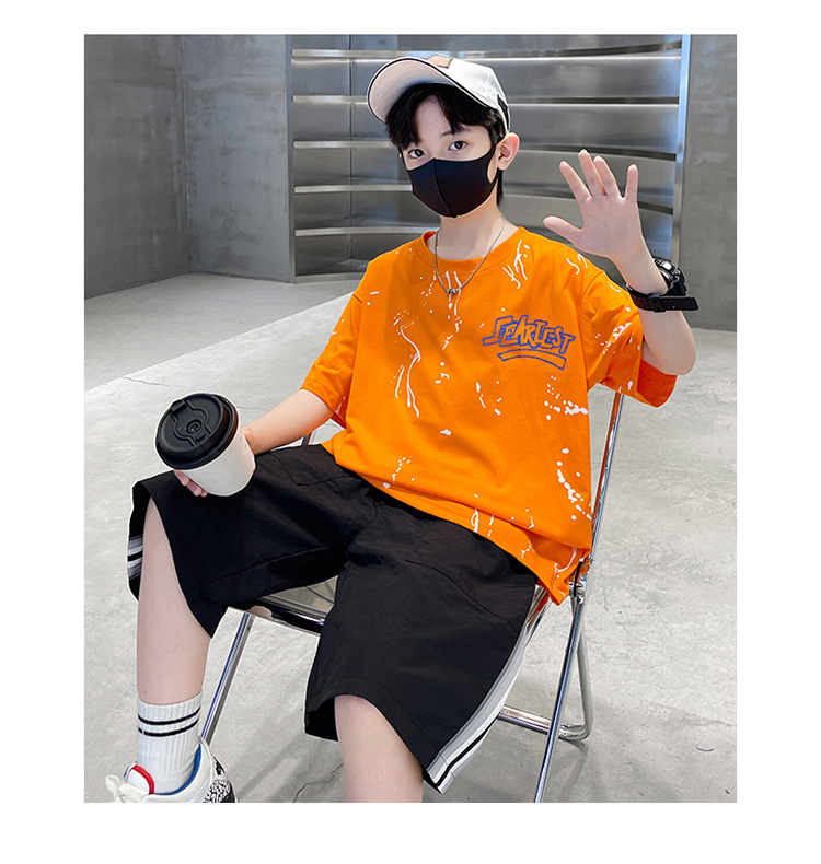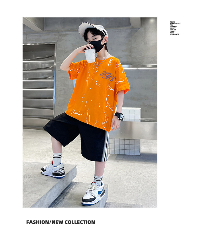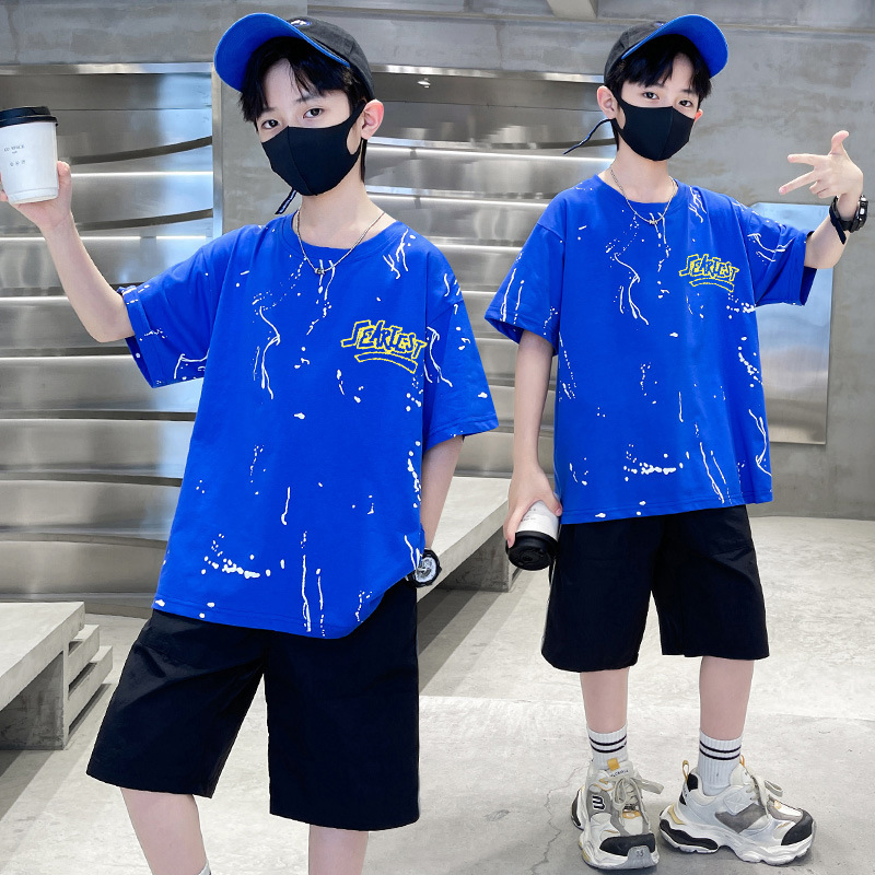 남아 여름 얇은 양복 반팔 티셔츠 5부 바지 투피스 세트 2025 새로운 중대형 아동복 트렌드스토어 가기