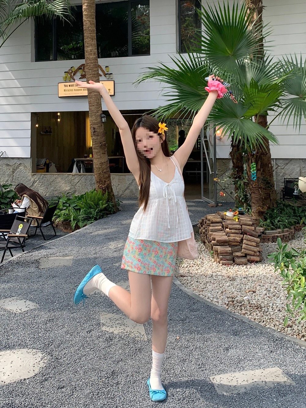 달콤한 스타일 세트 레이스 업 화이트 카미솔 조끼 여성 여름 꽃 엉덩이 스커트 투피스 화이트 탑