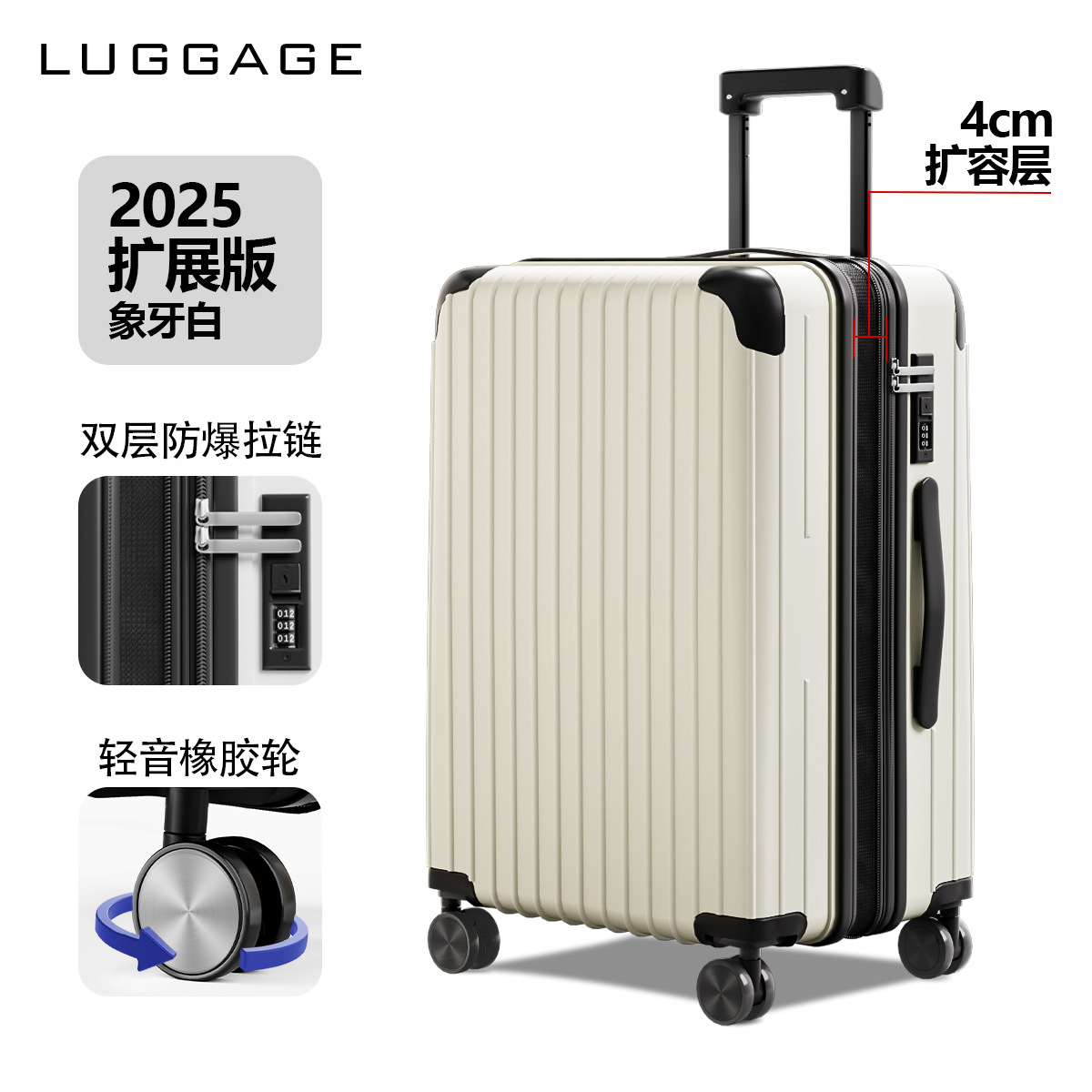 남성용 2025년 신형 확장형 대용량 튼튼하고 내구성 있는 비밀번호 여행용 트롤리 가방 28inch