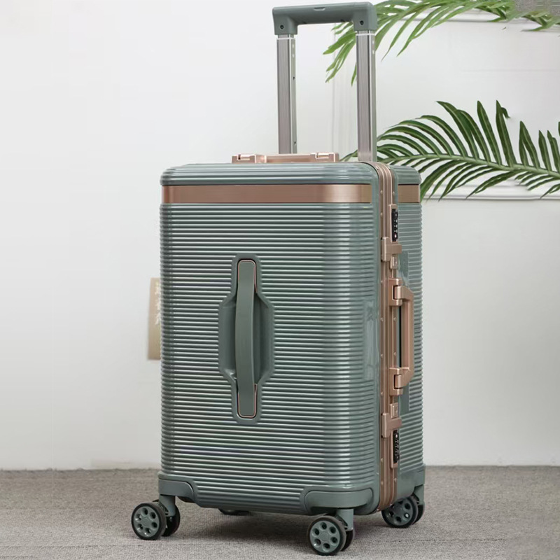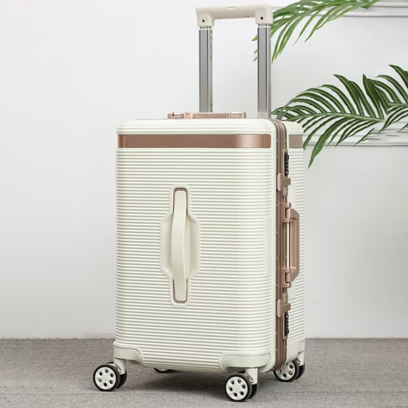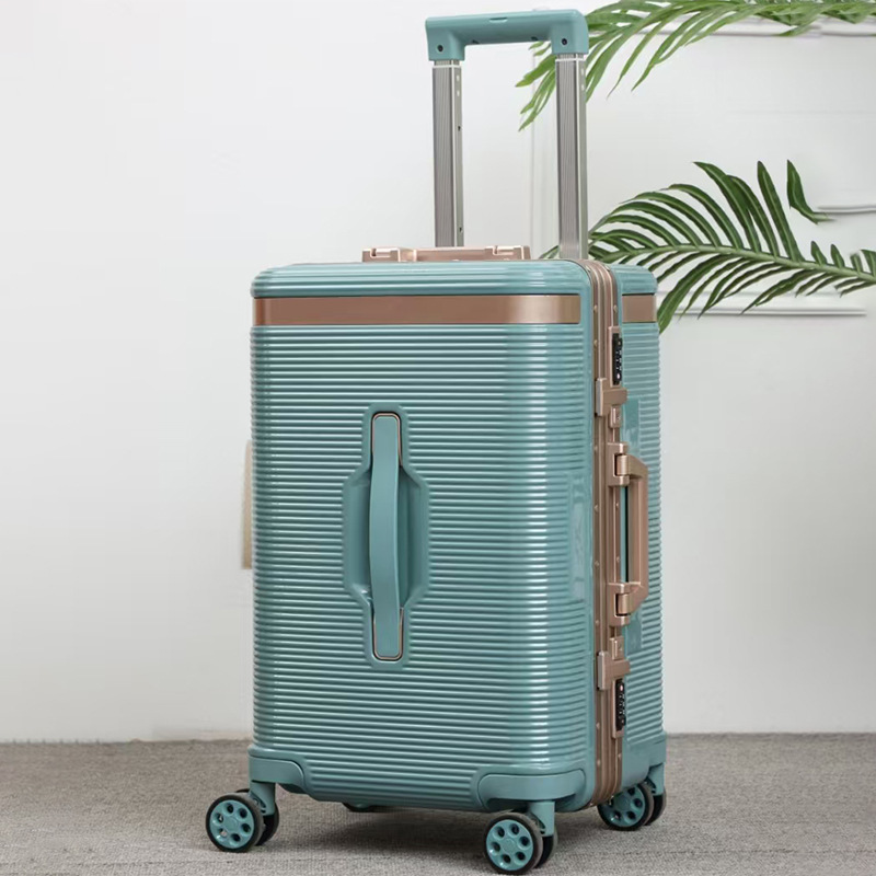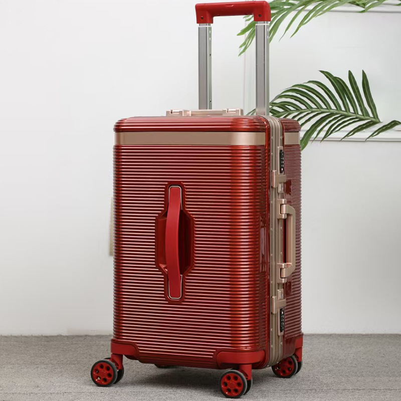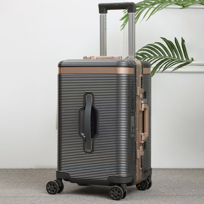 대용량 실용적인 트롤리 케이스 알루미늄 프레임 크로스 보더 비즈니스 가방 남성과 여성을위한 강력하고 내구성이 뛰어난 20inch 비밀번호 탑승 케이스