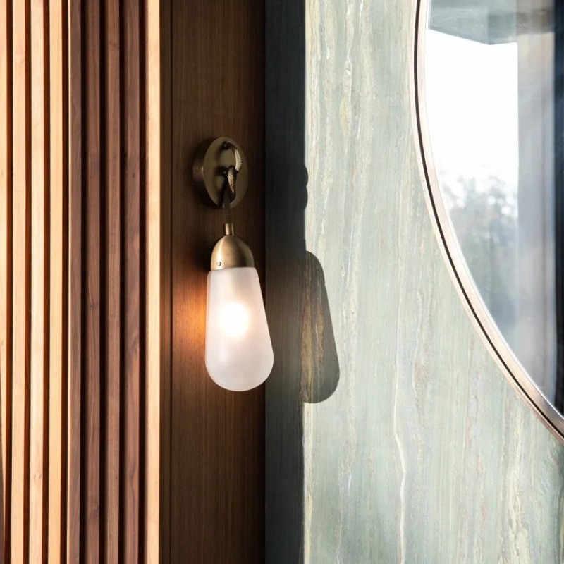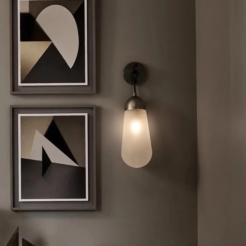 전체 구리 소재의 심플한 유리 벽등, 거실 배경벽 조명, 럭셔리한 포스트모던 침실 서재 구리등, LED 조명스토어 가기