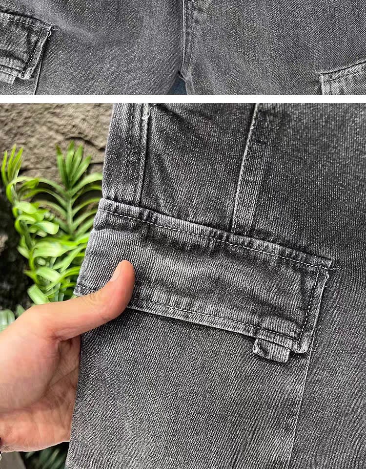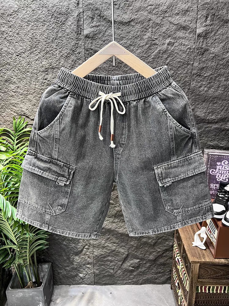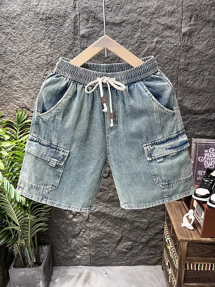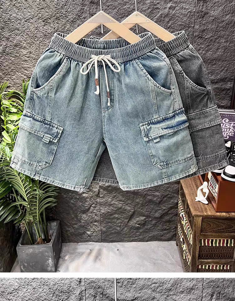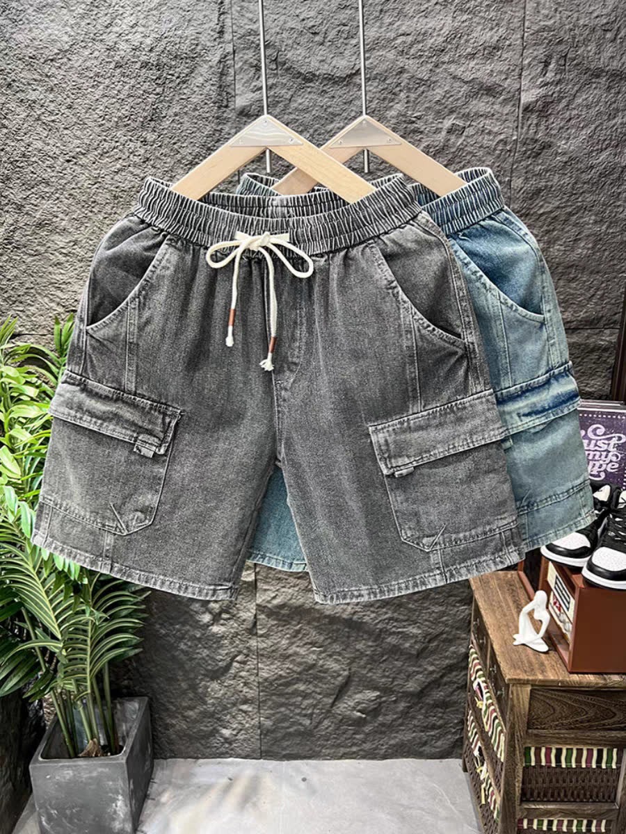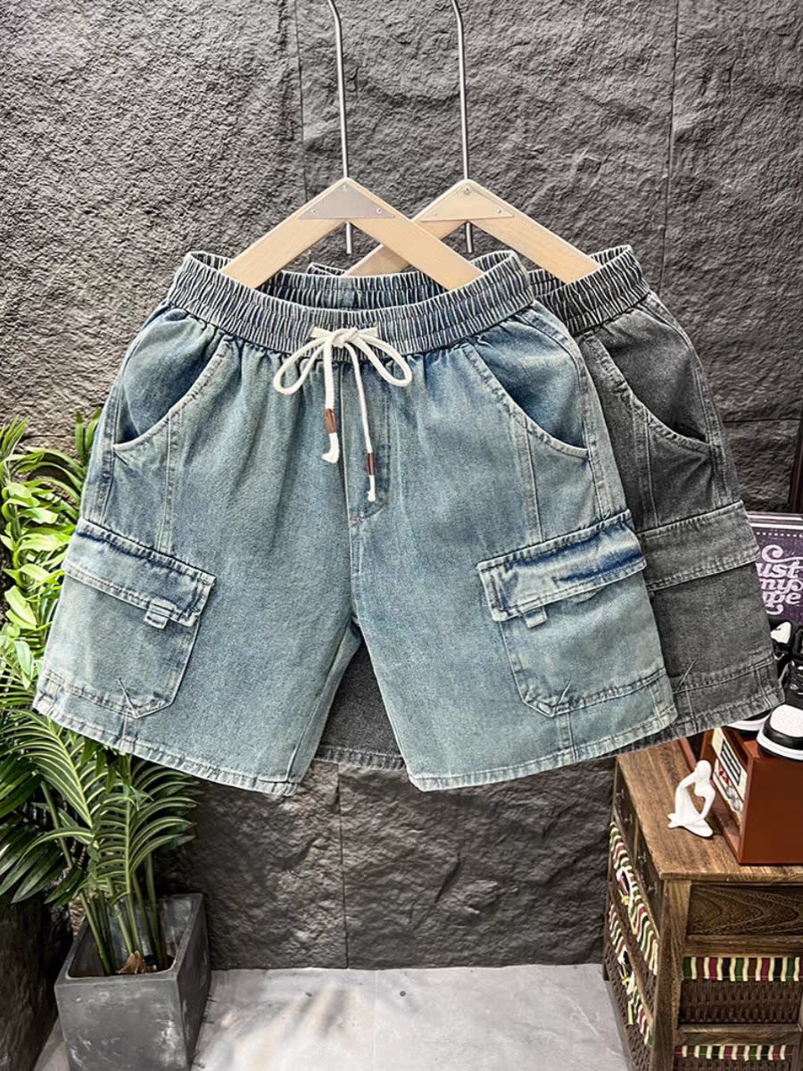 작업복 데님 반바지 여름 얇은 남성 느슨한 미국 복고풍 유행 캐주얼 5부 바지 2025 새로운 남성