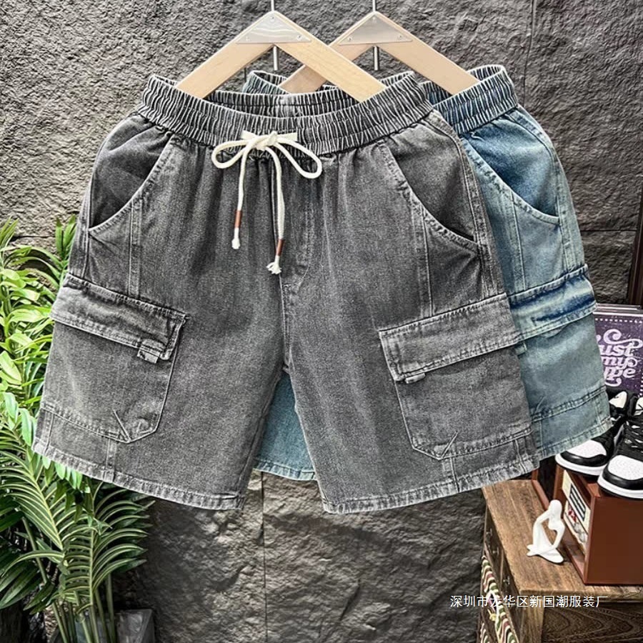 작업복 데님 반바지 여름 얇은 남성 느슨한 미국 복고풍 유행 캐주얼 5부 바지 2025 새로운 남성스토어 가기