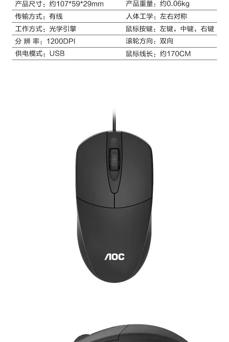 AOC MS121 유선 USB 마우스 홈 오피스 비즈니스 노트북 데스크탑 컴퓨터 범용 마우스