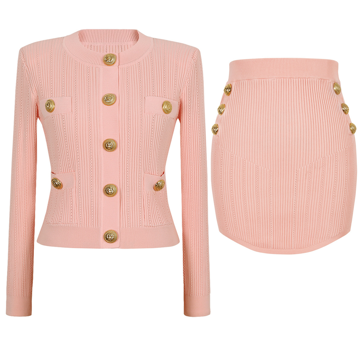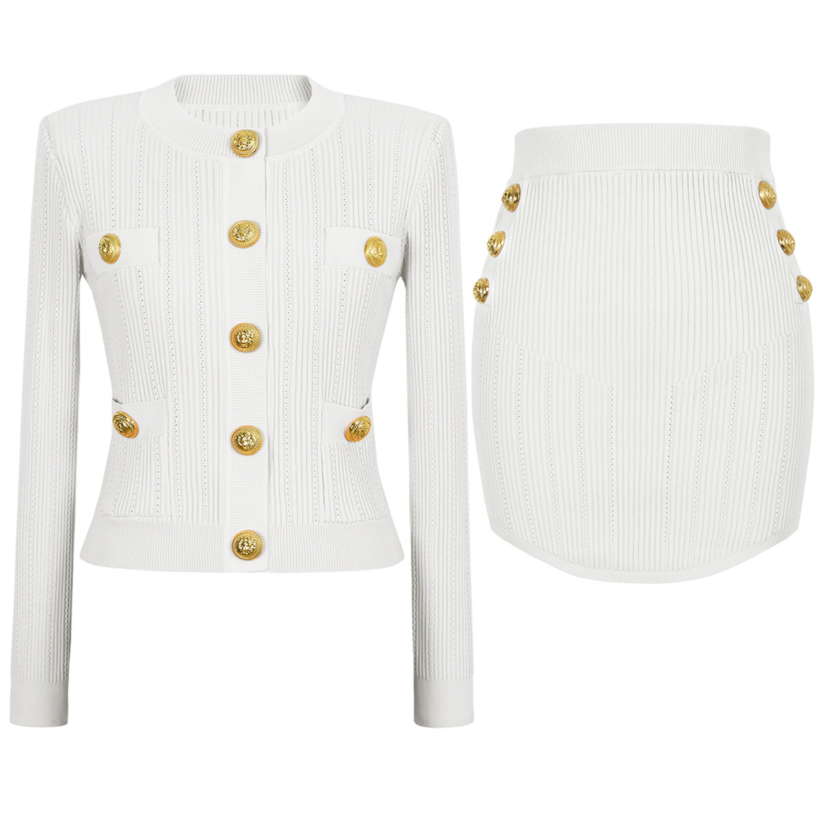 품질 재고 2025 봄과 여름 새로운 도착 여성 패션 인터넷 인기 니트 코트 톱 하프 스커트 세트스토어 가기