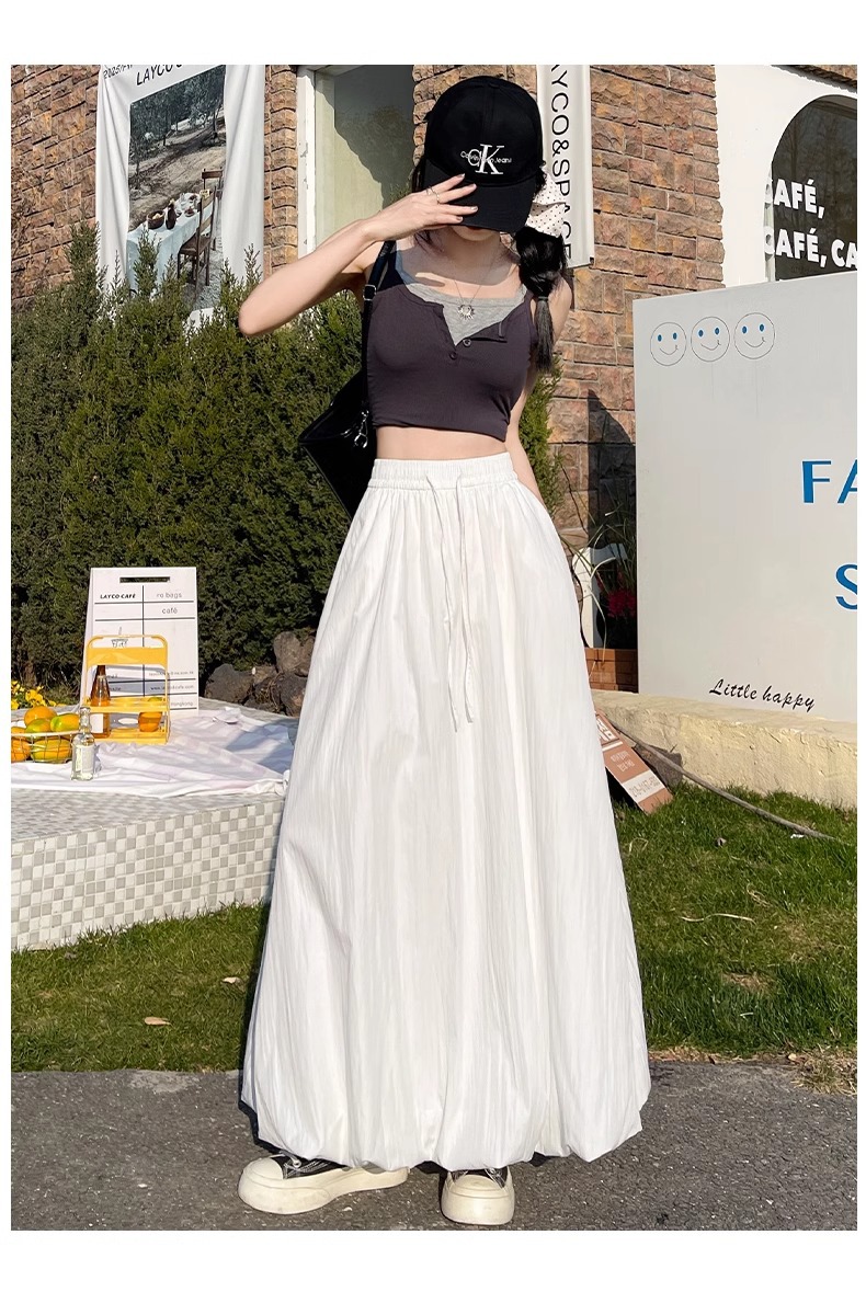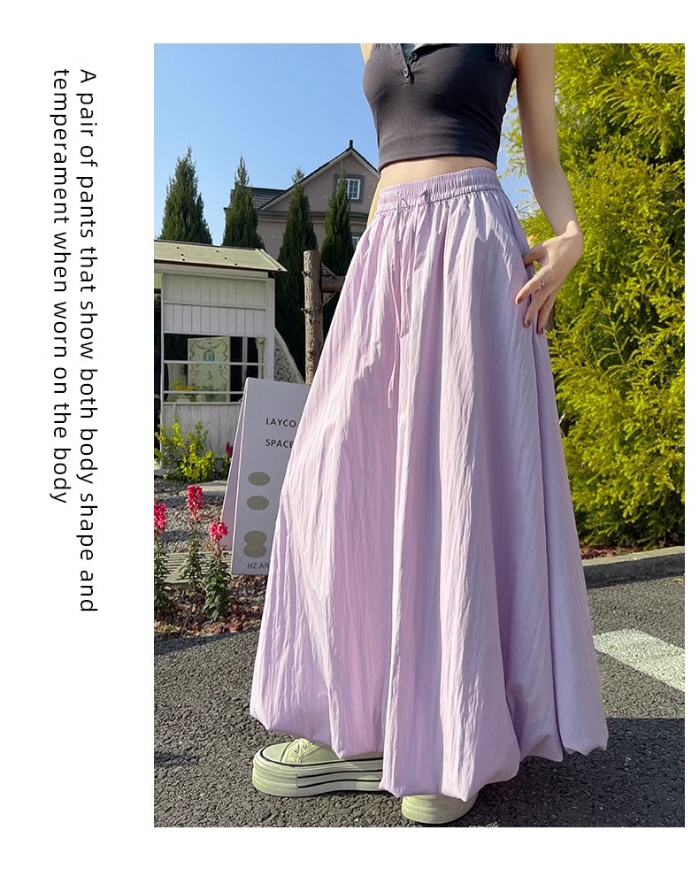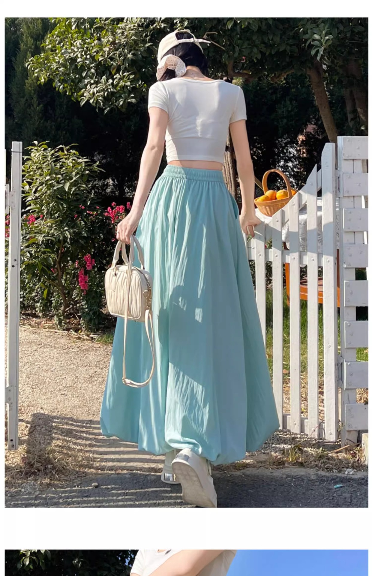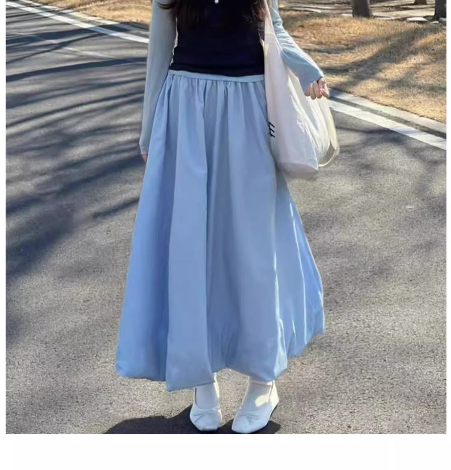 회색 푹신한 버드 스커트 여성 여름 얇은 아이스 실크 랜턴 스커트 우아한 높은 허리 슬림 A-라인 중간 길이 스커트스토어 가기