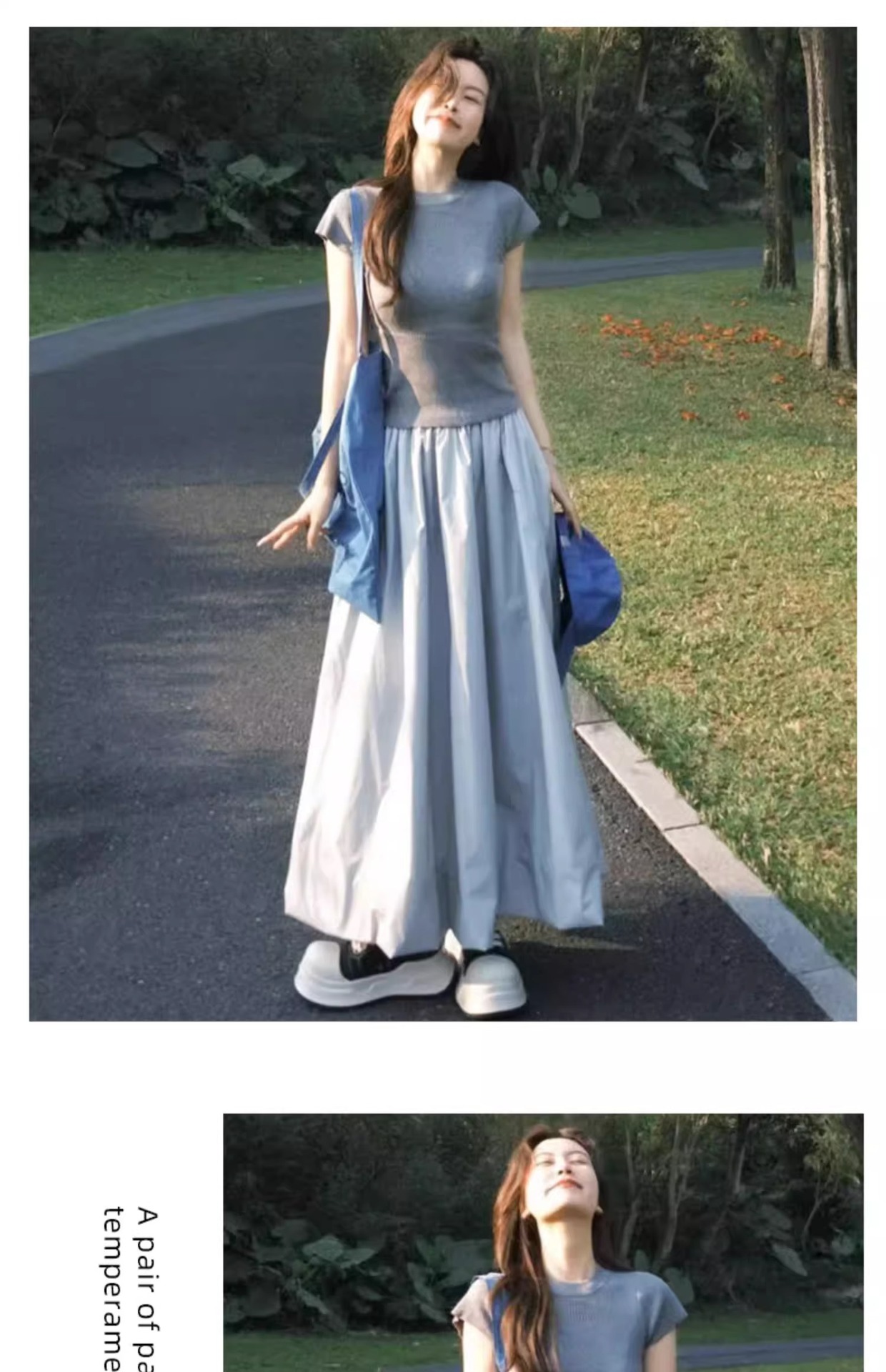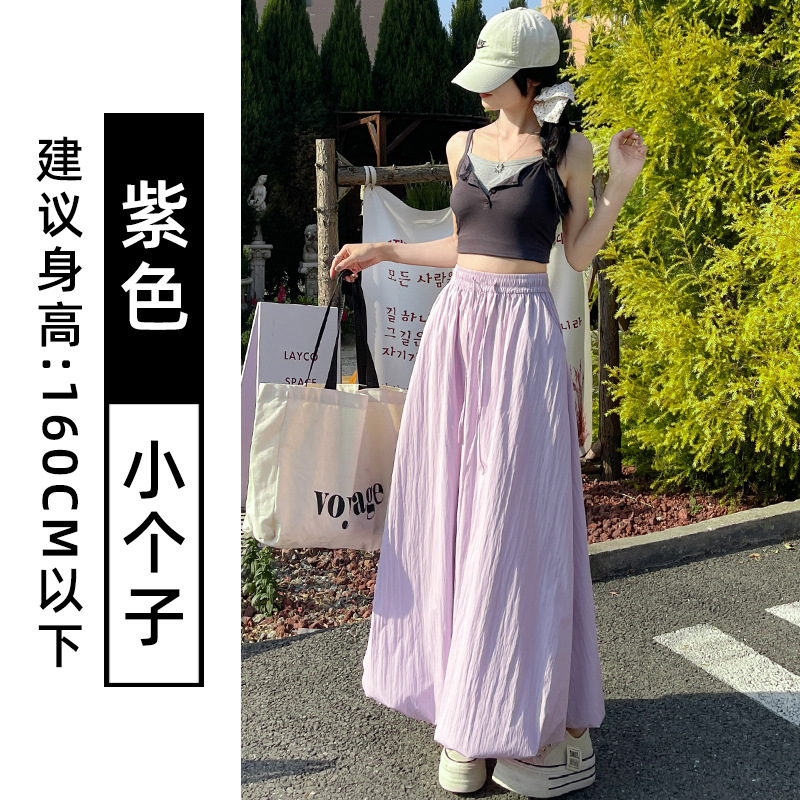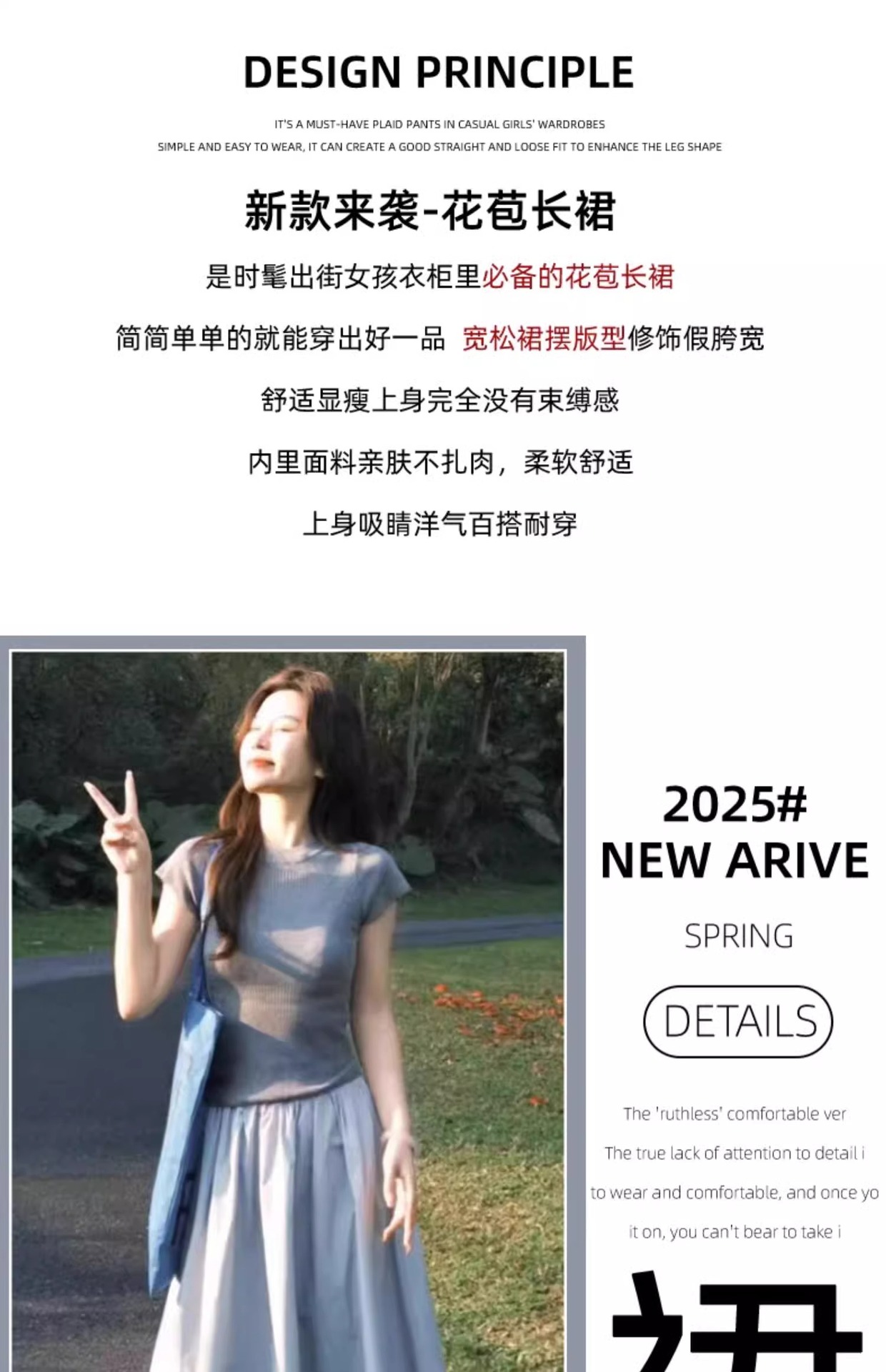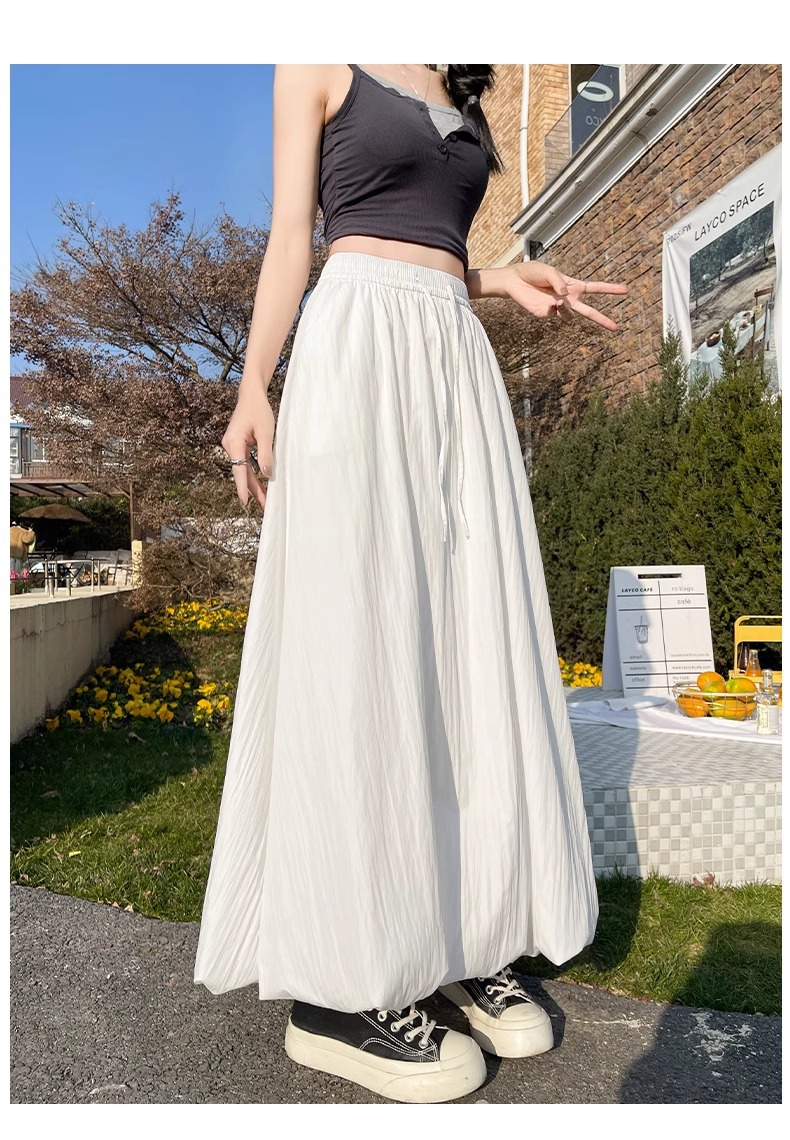회색 푹신한 버드 스커트 여성 여름 얇은 아이스 실크 랜턴 스커트 우아한 높은 허리 슬림 A-라인 중간 길이 스커트스토어 가기