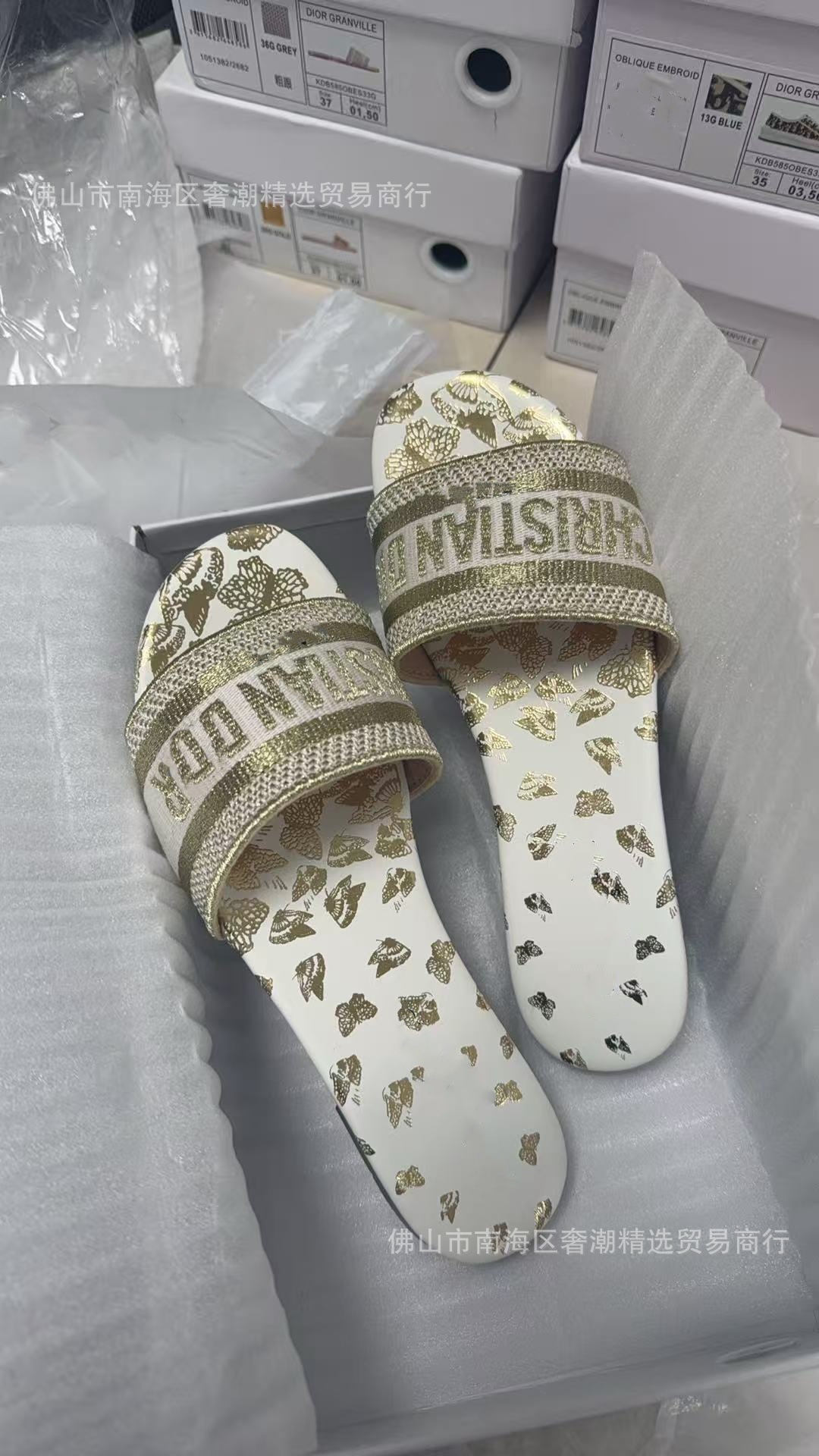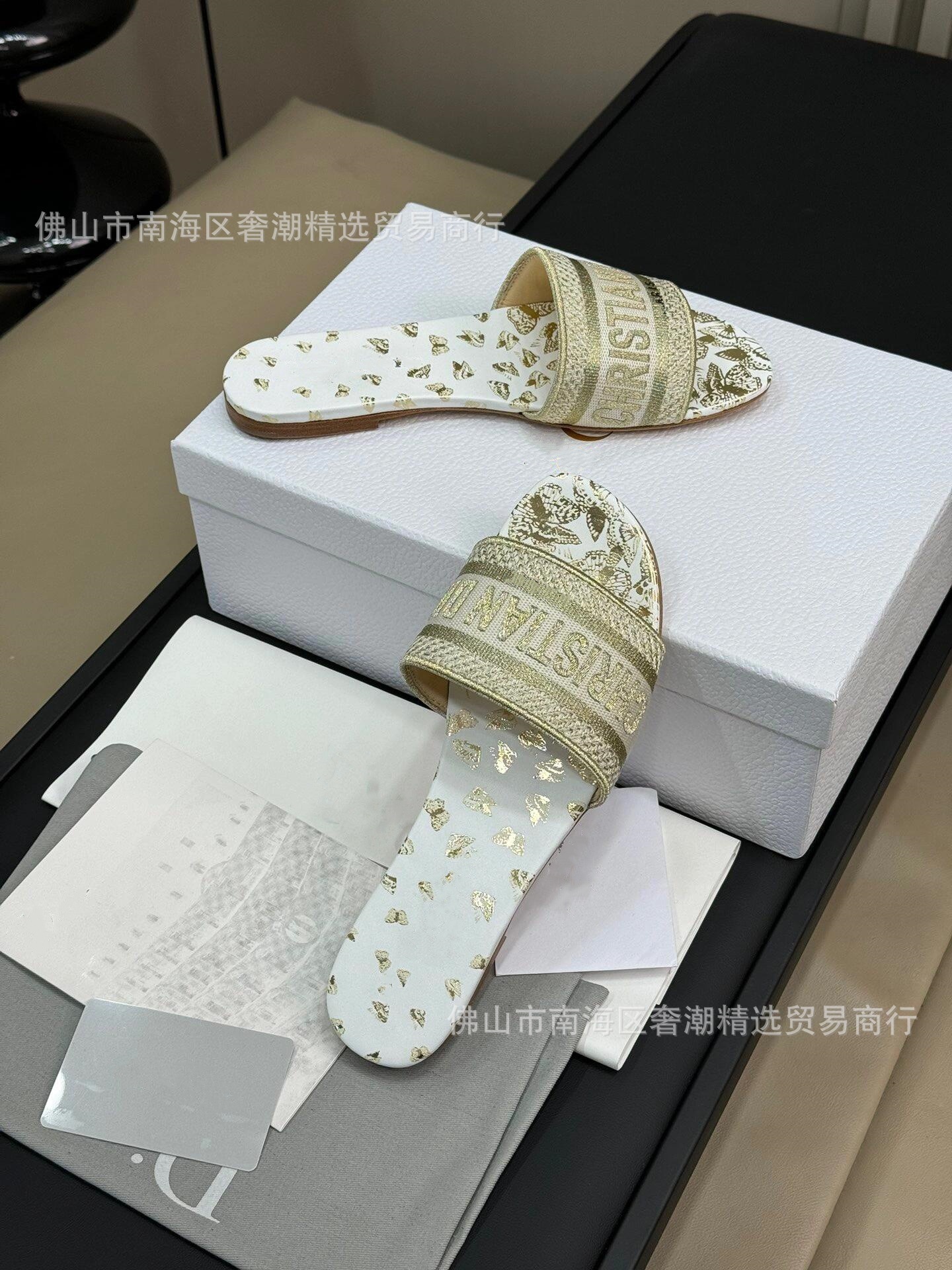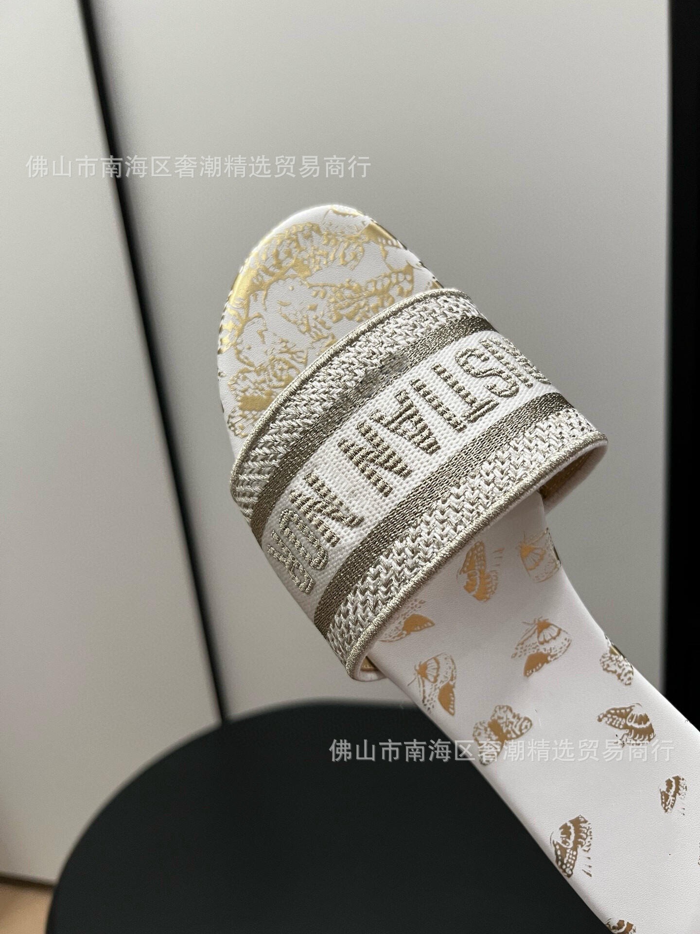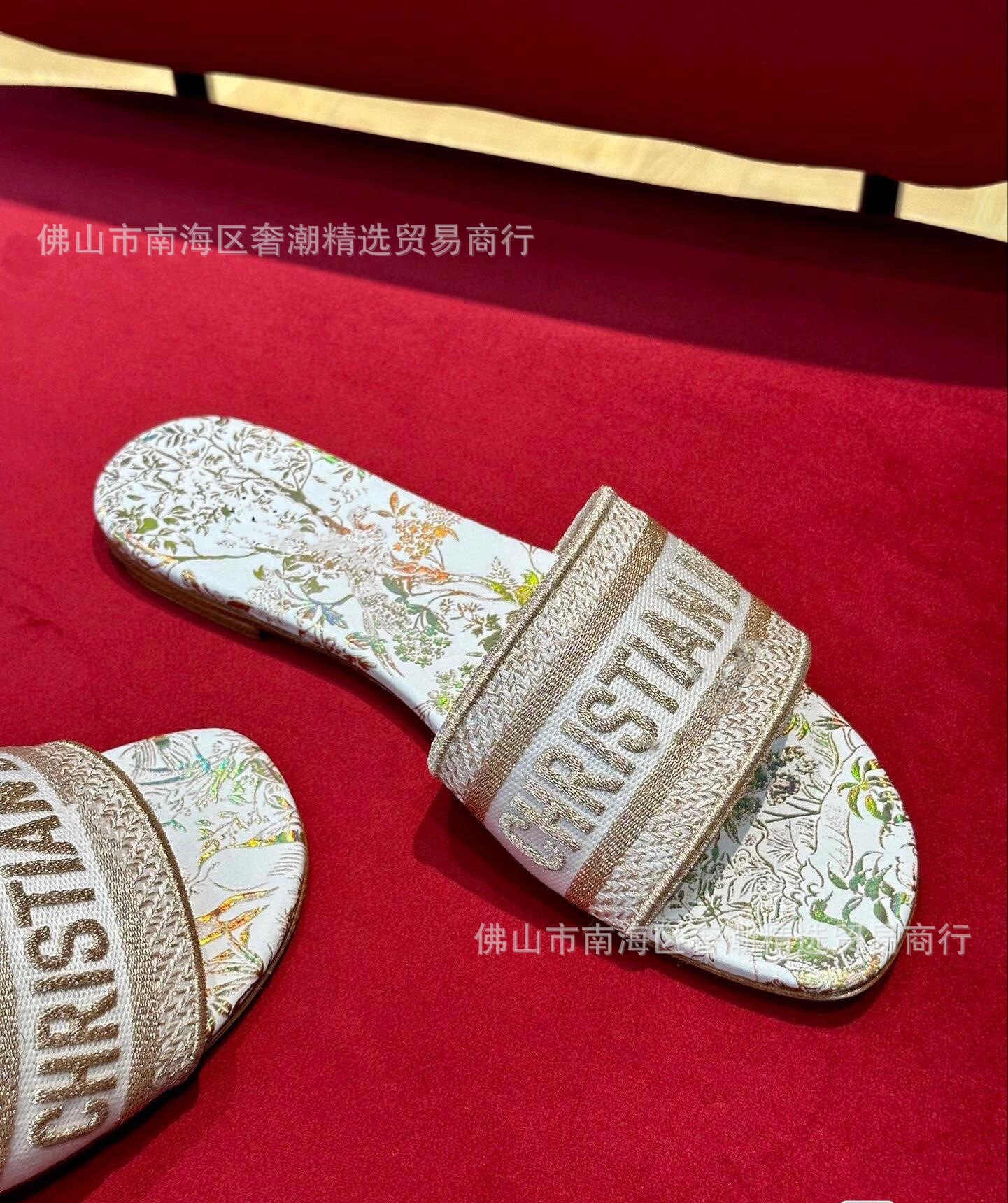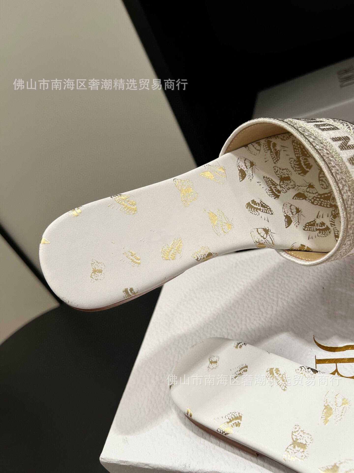 2025SS 여름 새 D 홈 황금 나비 인쇄 편지 자수 슬리퍼 여성 해변 외부 한 단어 샌들스토어 가기