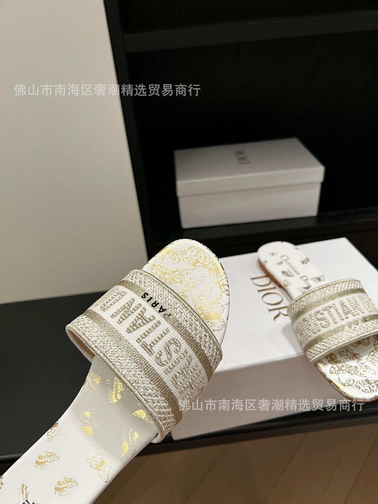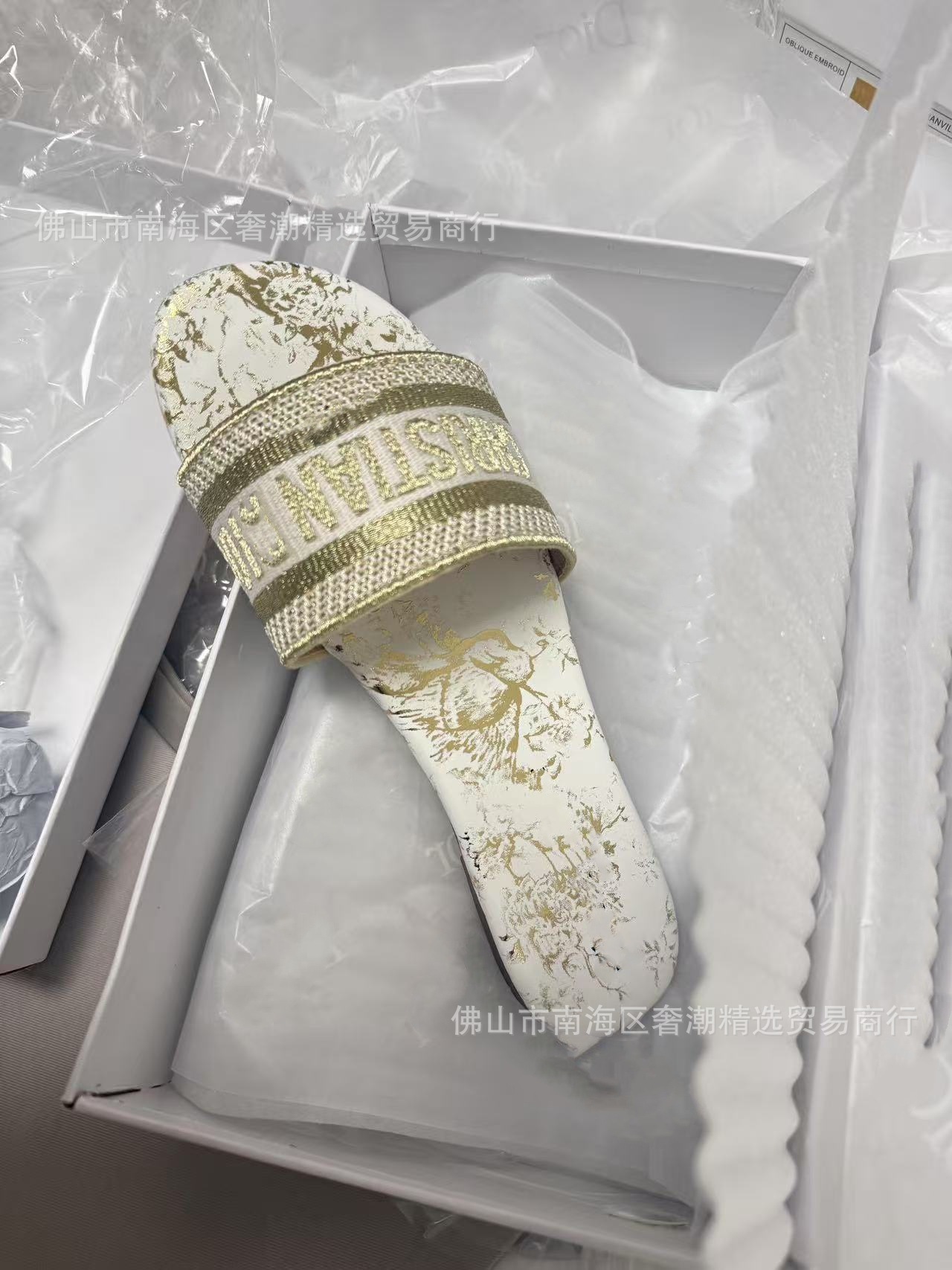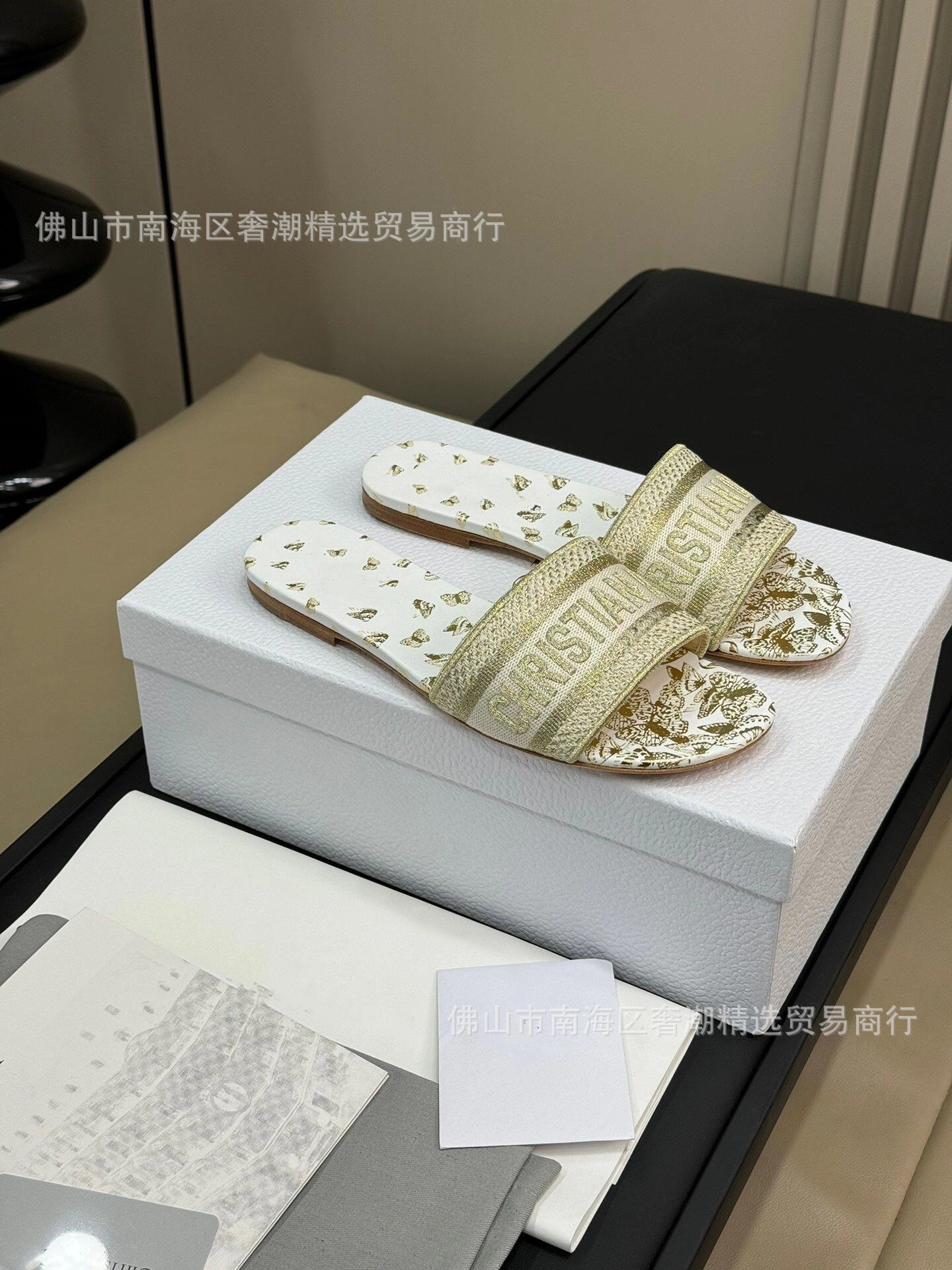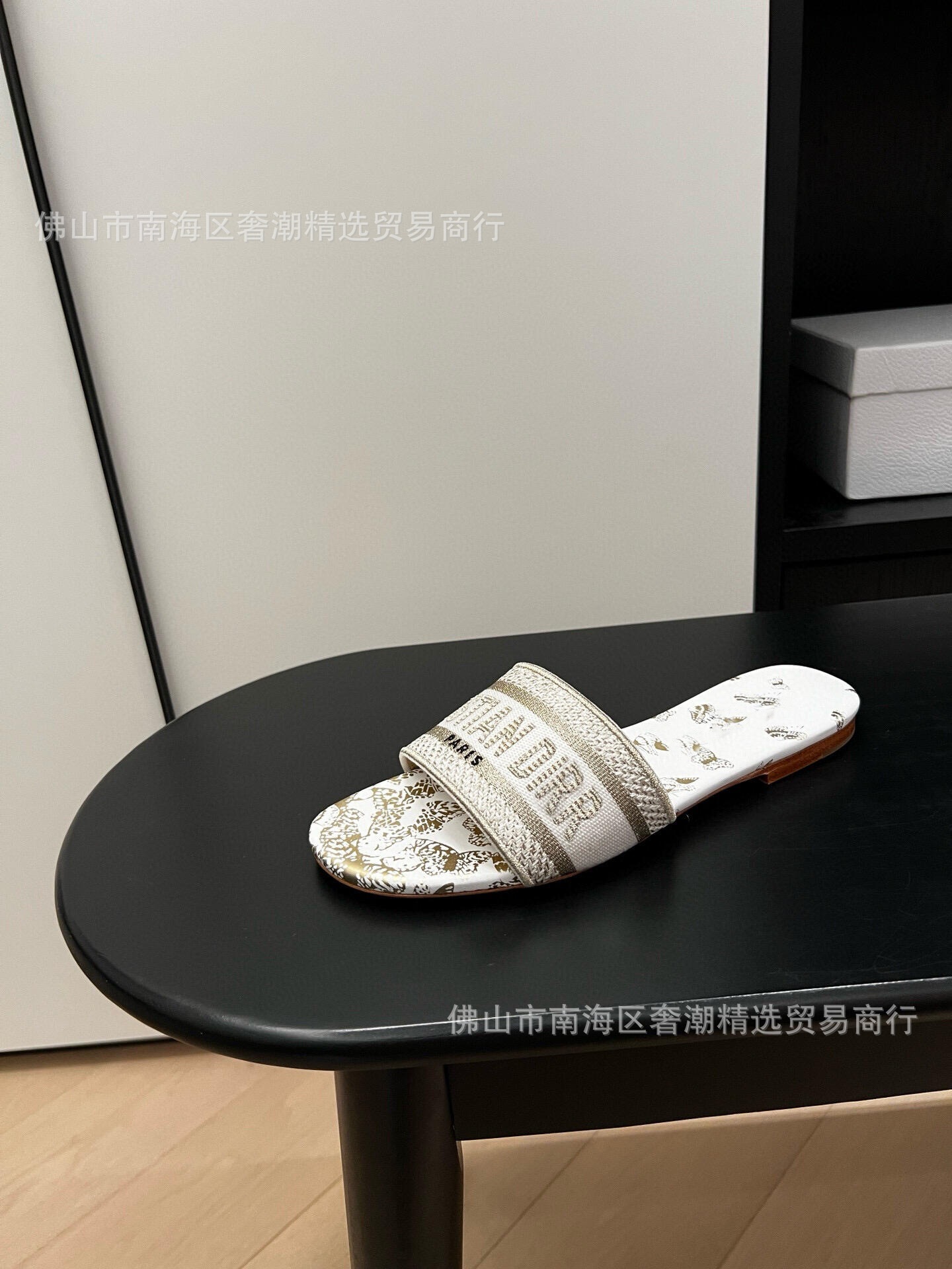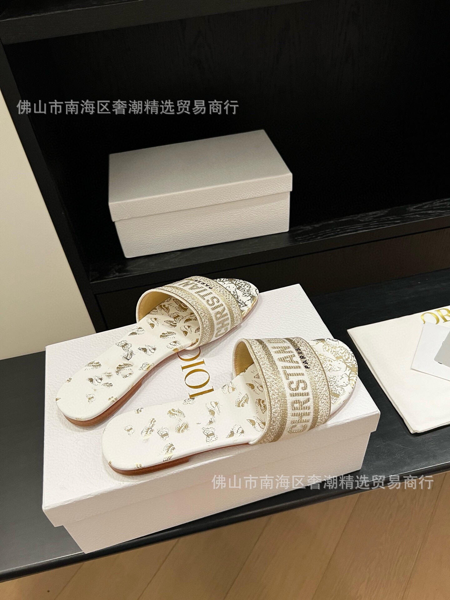 2025SS 여름 새 D 홈 황금 나비 인쇄 편지 자수 슬리퍼 여성 해변 외부 한 단어 샌들스토어 가기