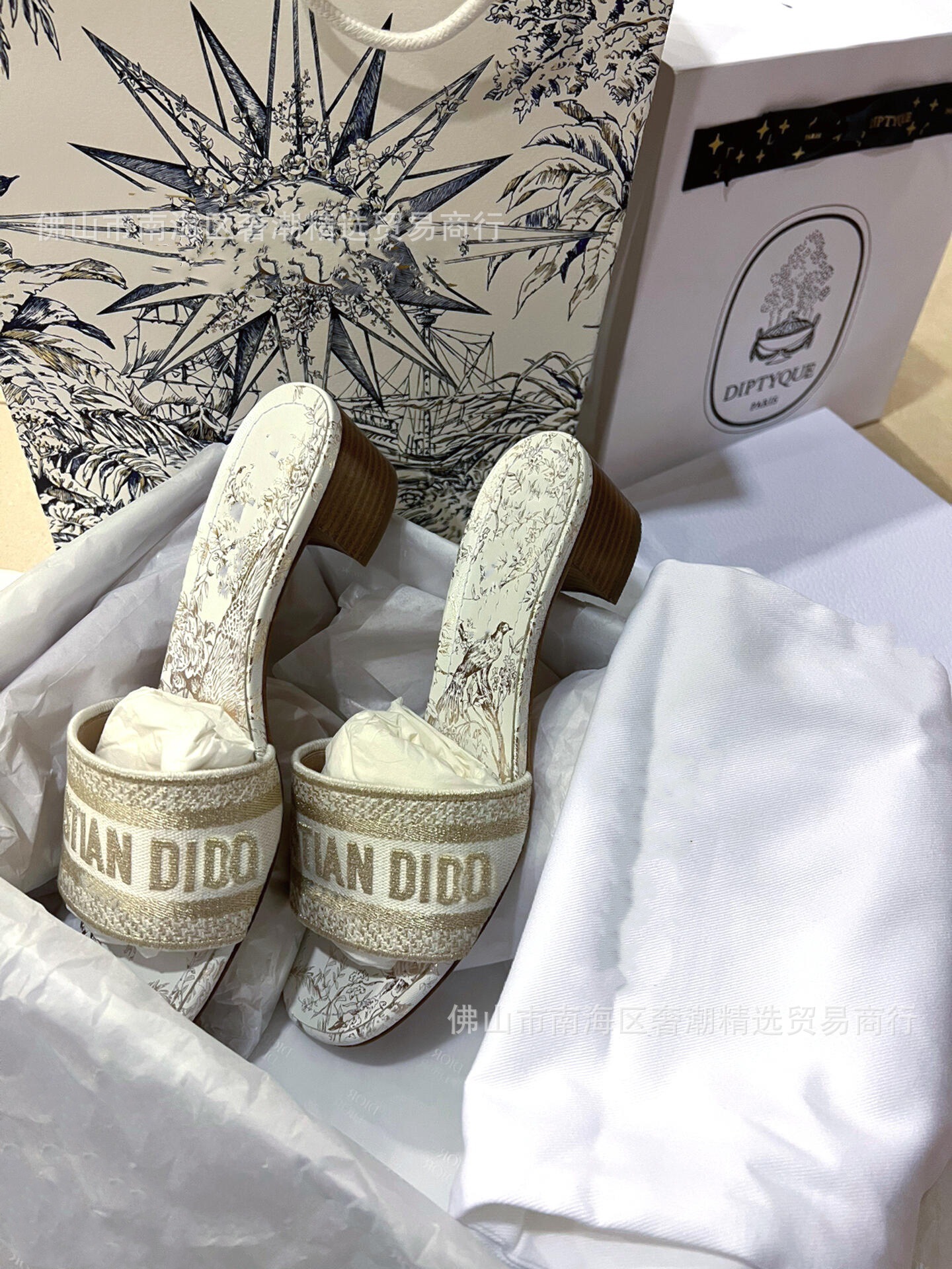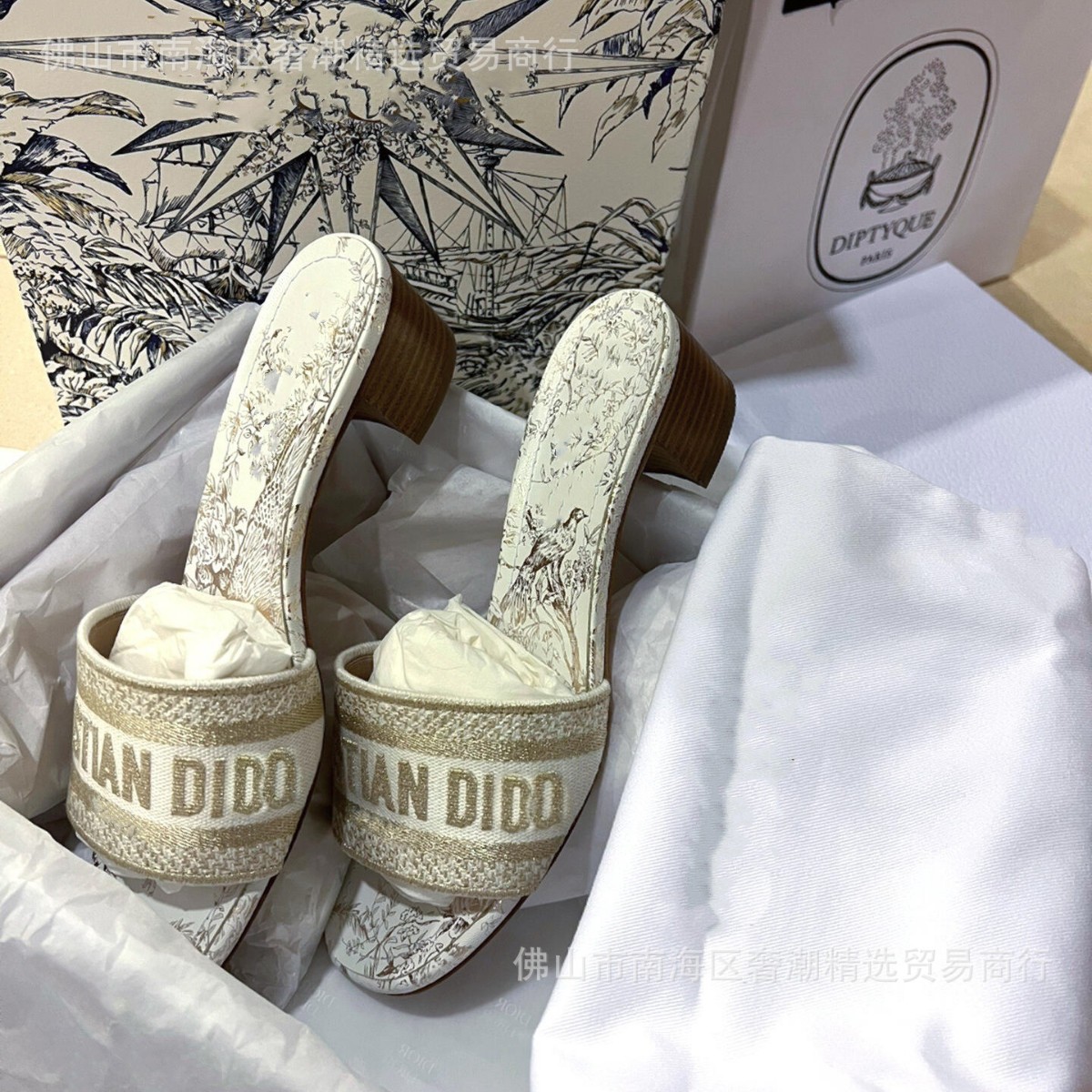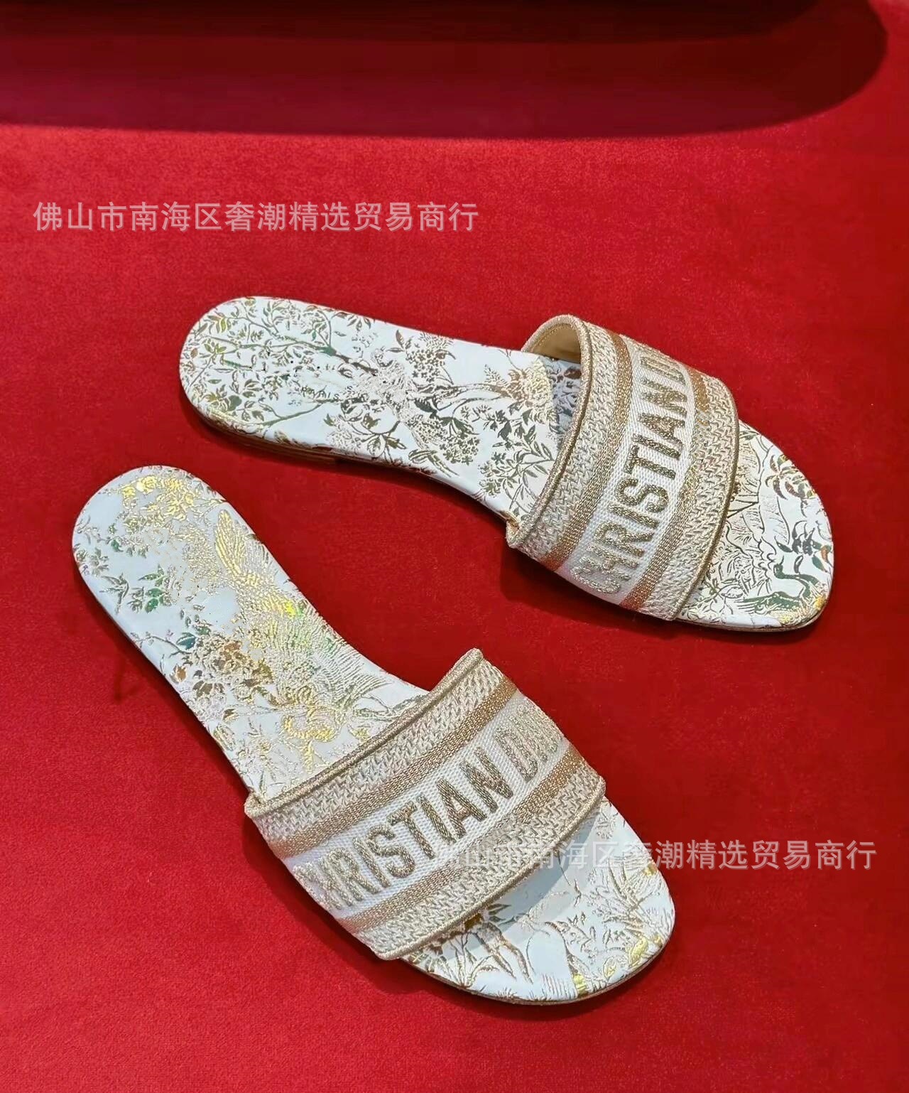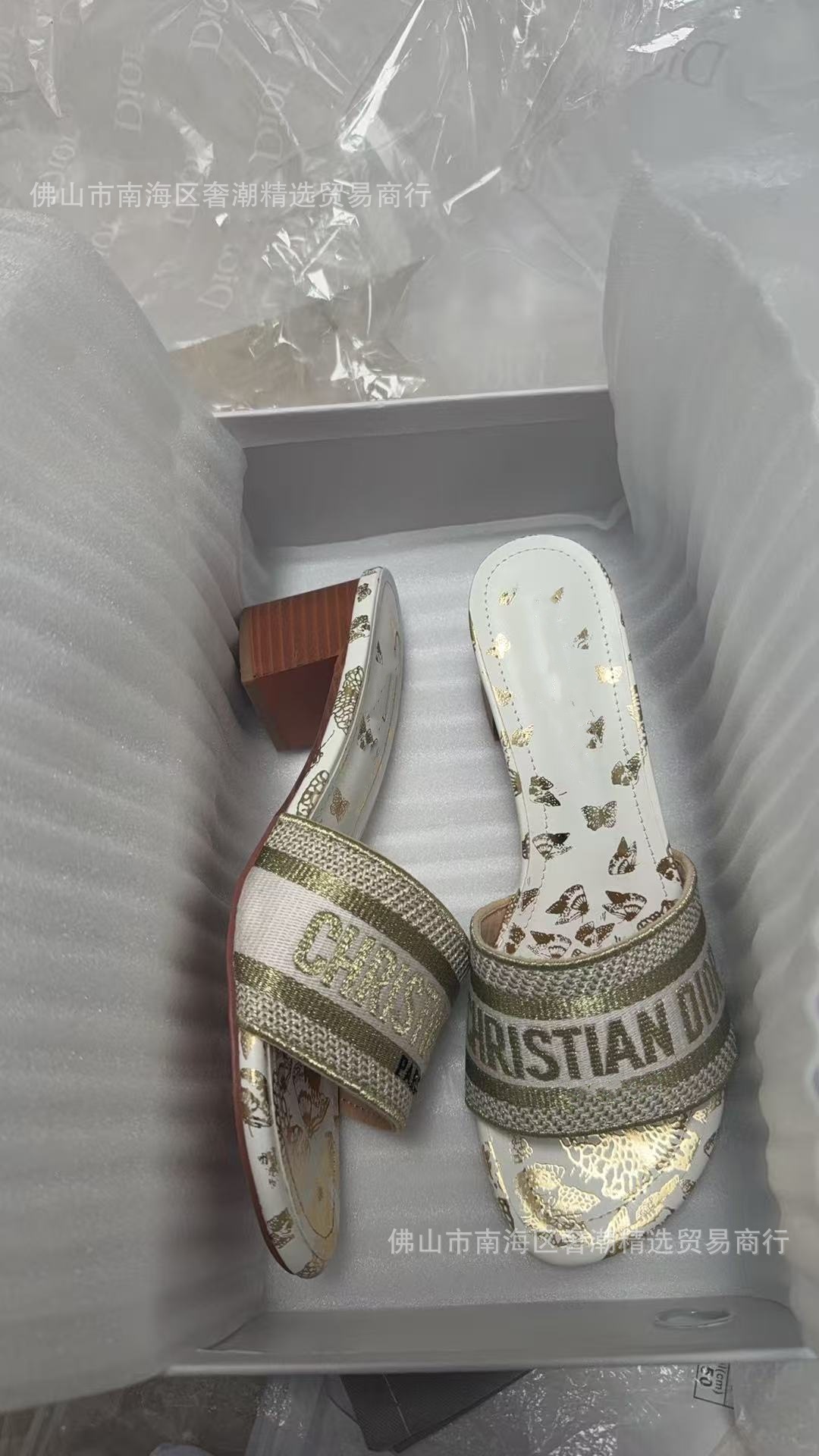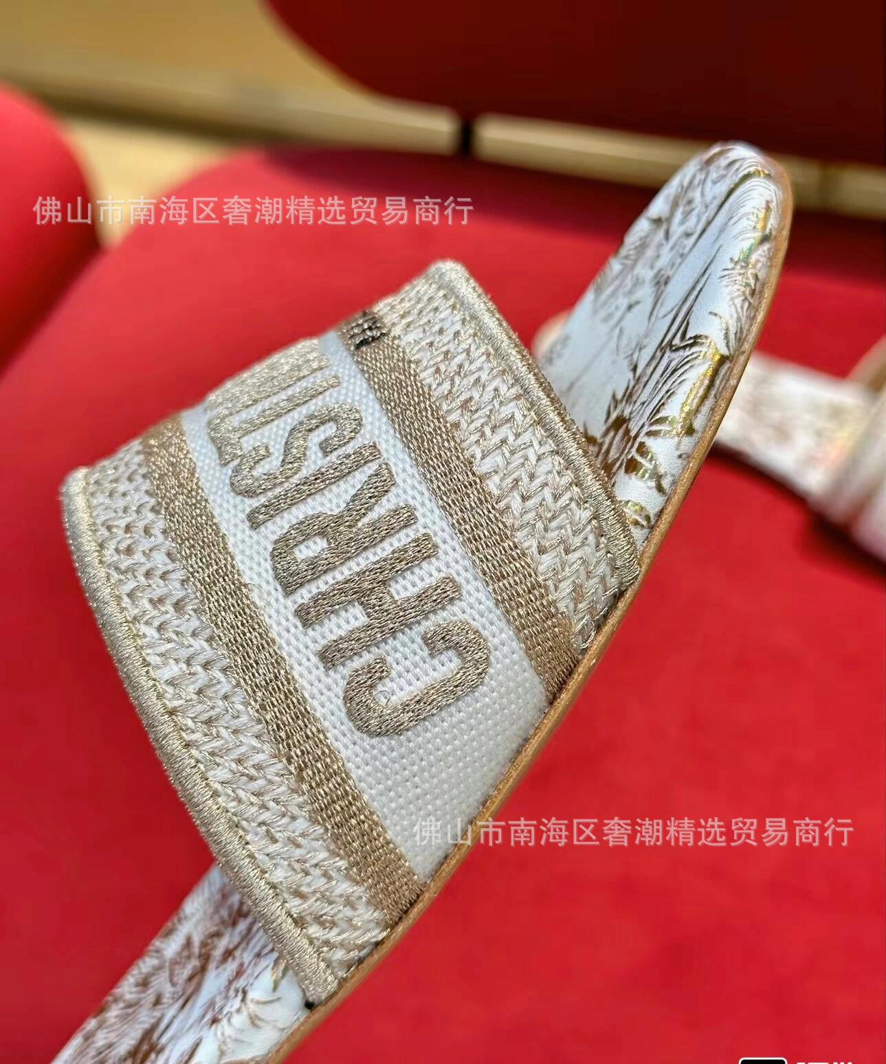 2025SS 여름 새 D 홈 황금 나비 인쇄 편지 자수 슬리퍼 여성 해변 외부 한 단어 샌들스토어 가기