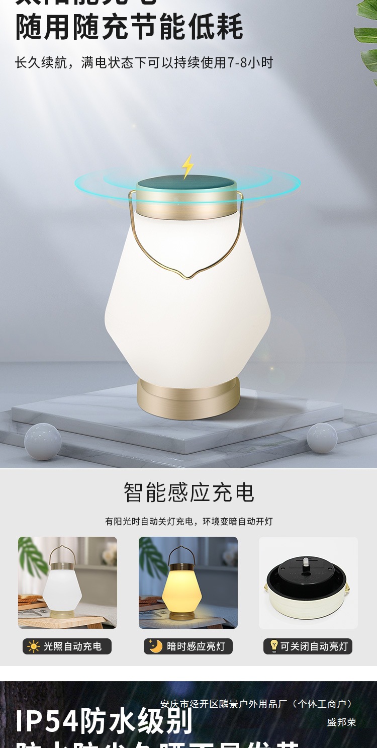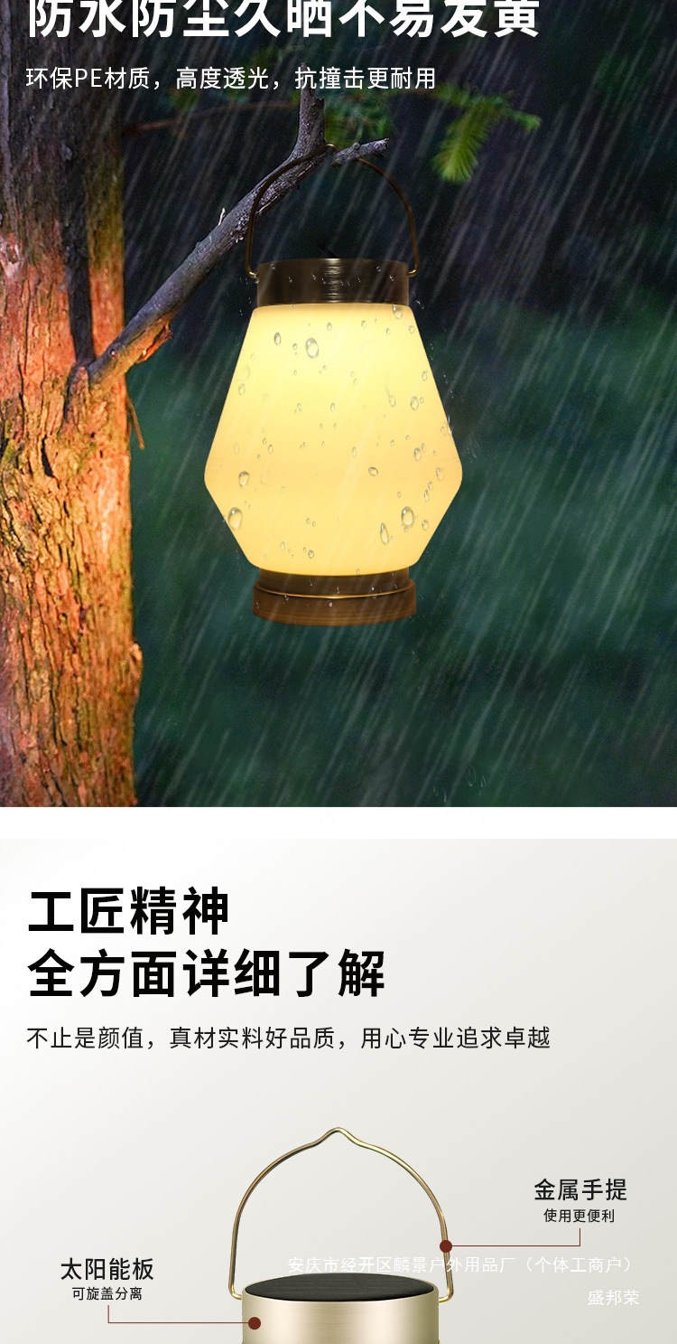 야외 레저 휴대용 램프 정원 캠핑 램프 LED 태양 충전 방수 텐트 램프 데스크탑 테이블 램프