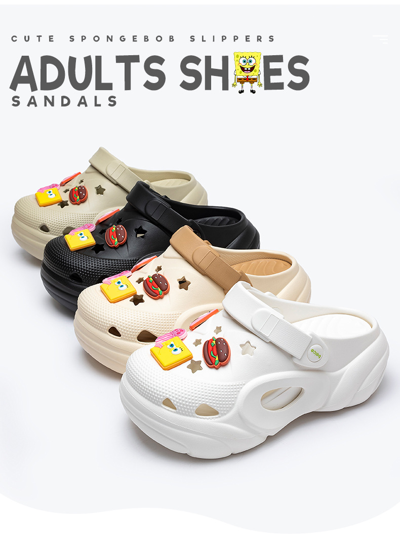 스폰지 밥 사각형 두꺼운 밑창 여성용 여름 멋진 슬리퍼 여름 미끄럼 방지 Baotou 슬리퍼 양방향 비치 홀 신발