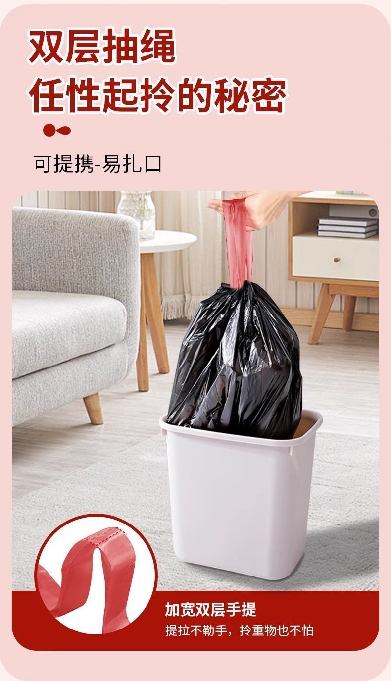 검은색 졸라매는 끈 쓰레기 봉투 두꺼운 휴대용 가정용 주방 비닐 봉투 도매 정리스토어 가기