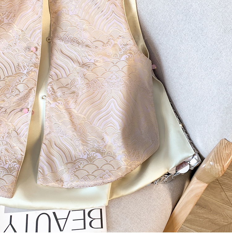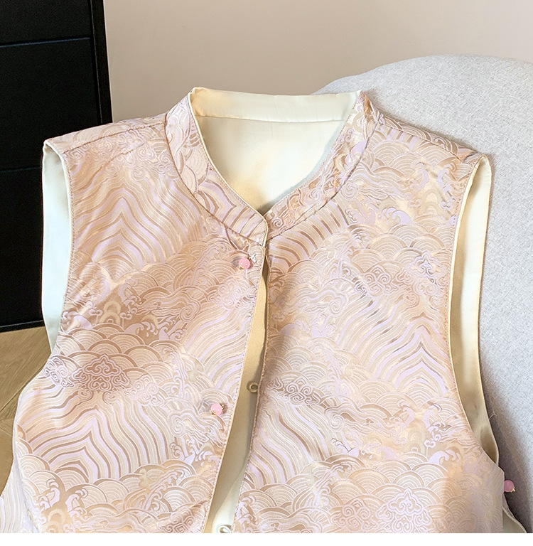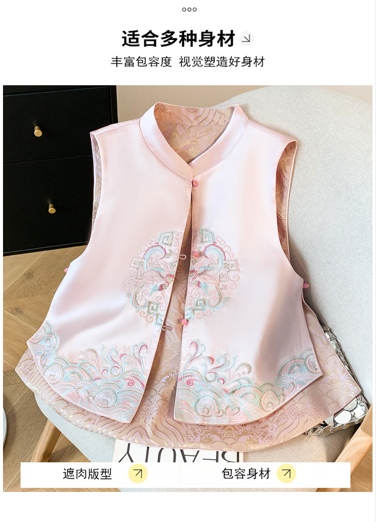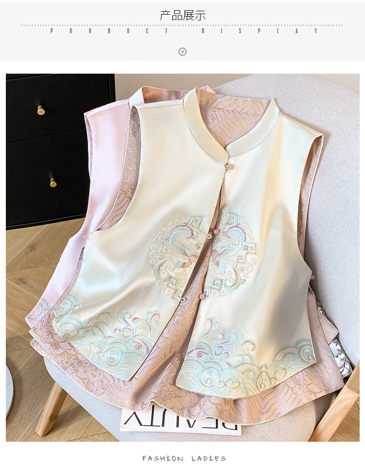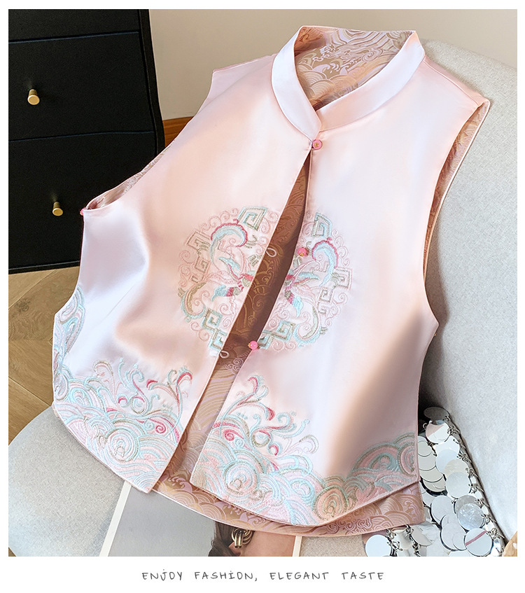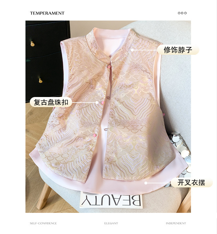 새로운 양면 더블웨어 레트로 Guofeng 조끼 중공업 수직 칼라 워와 버클 탑이있는 중국 스타일 민소매 자켓스토어 가기