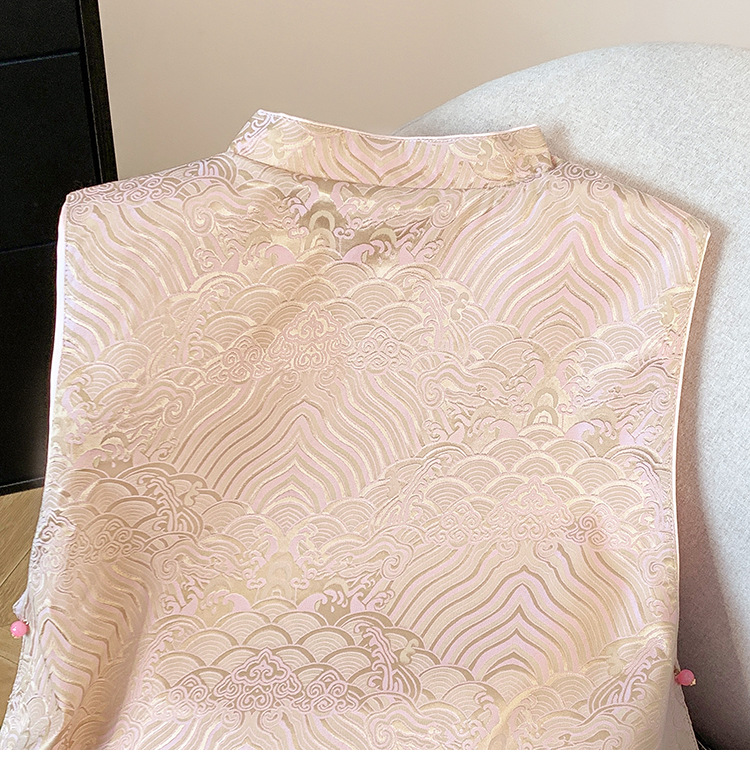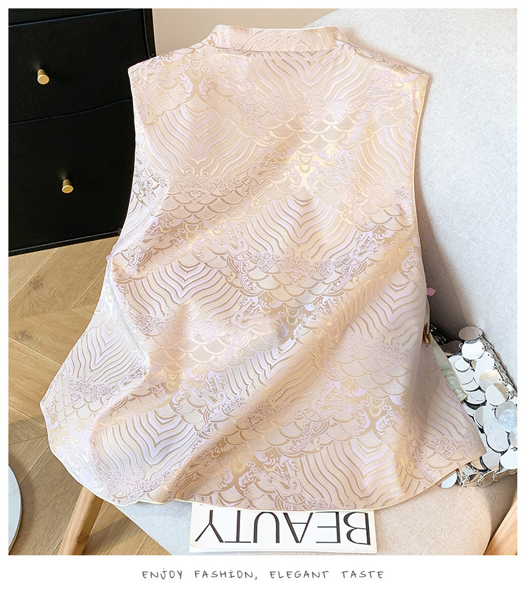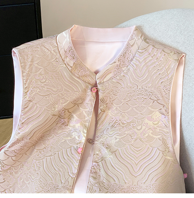 새로운 양면 더블웨어 레트로 Guofeng 조끼 중공업 수직 칼라 워와 버클 탑이있는 중국 스타일 민소매 자켓