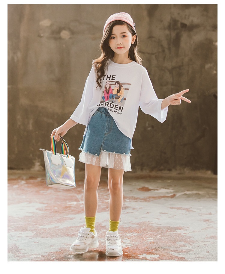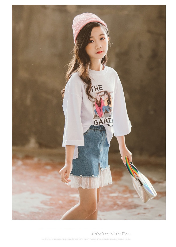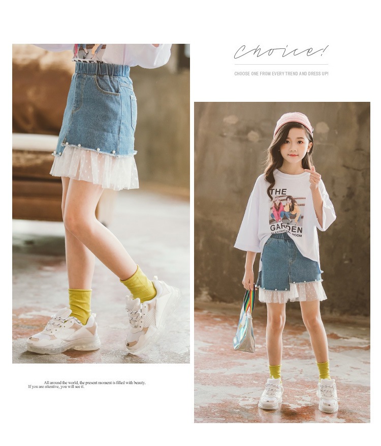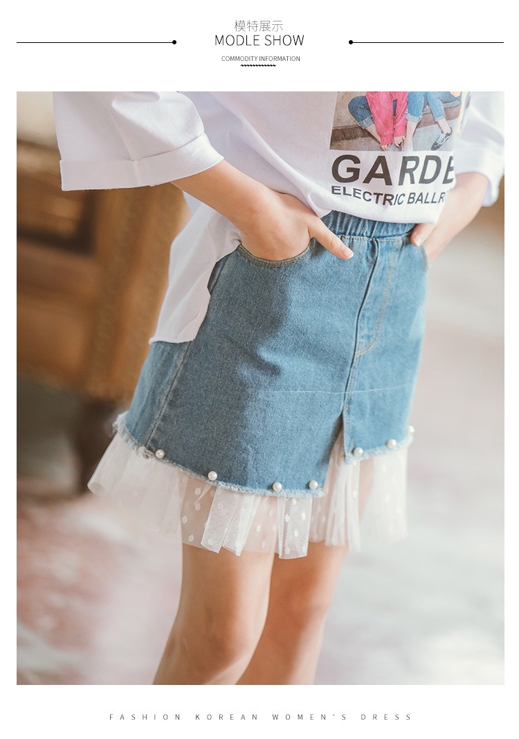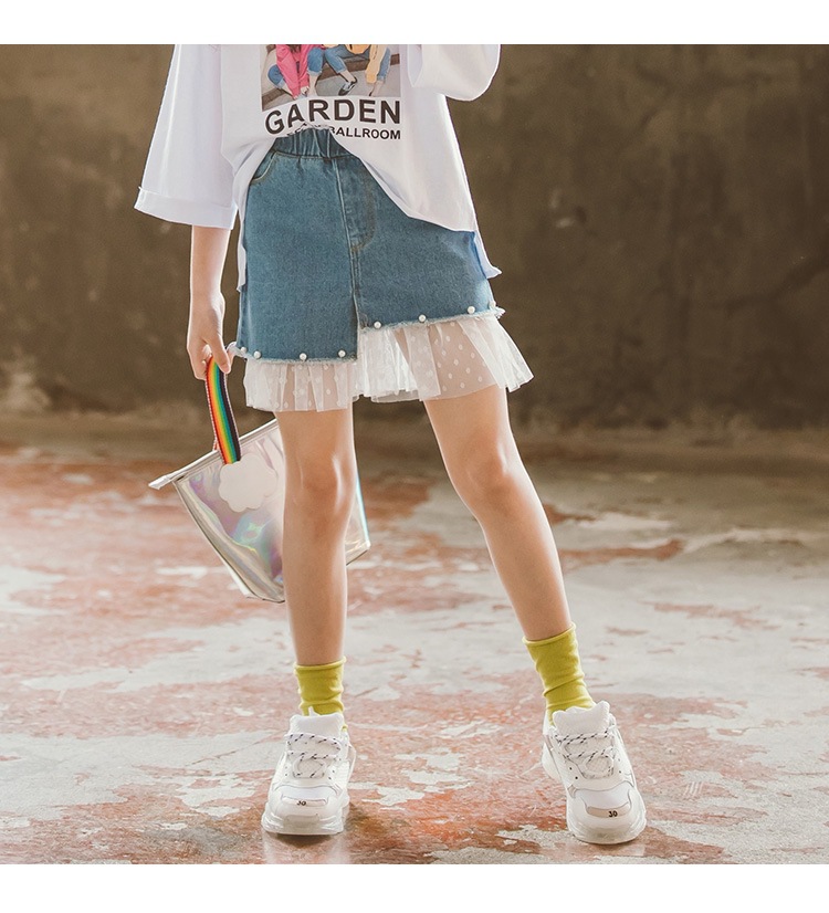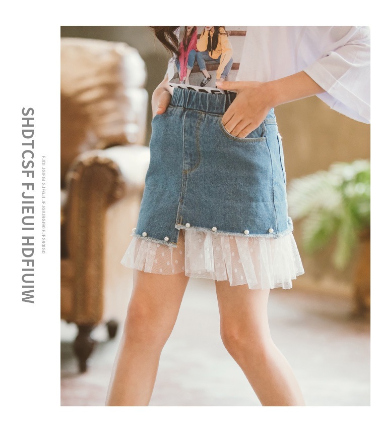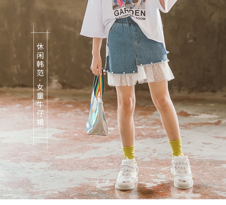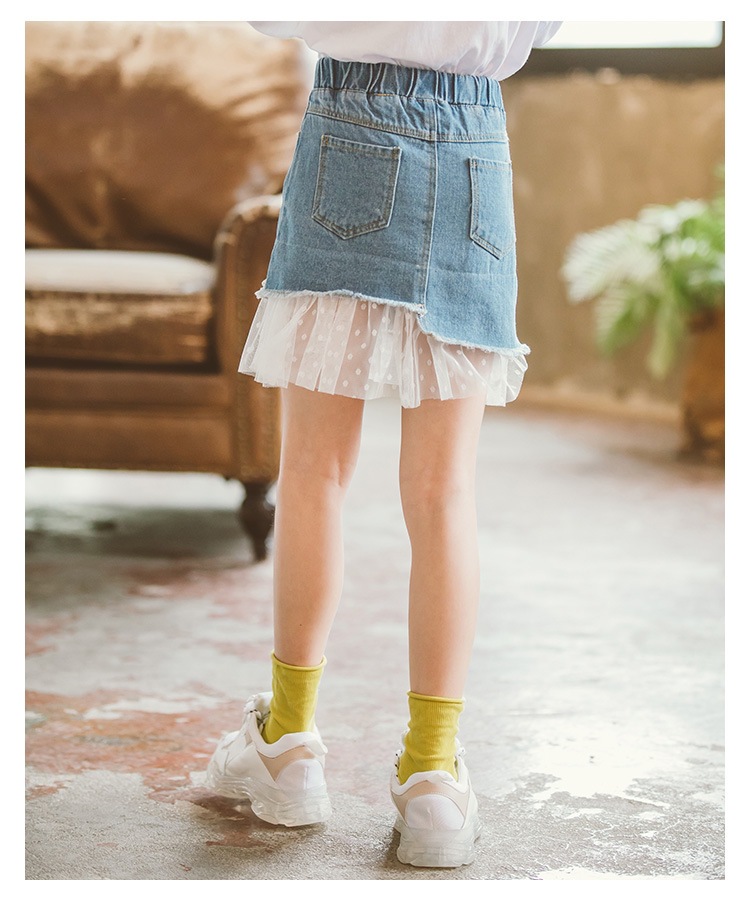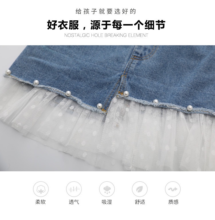 여아 데님 스커트 2026 여름 신상 한국 스타일 중소형 아동용 레이스 패치워크 스커트 큰아이들을 위한 세련된 스커트