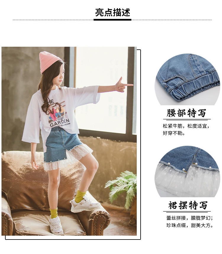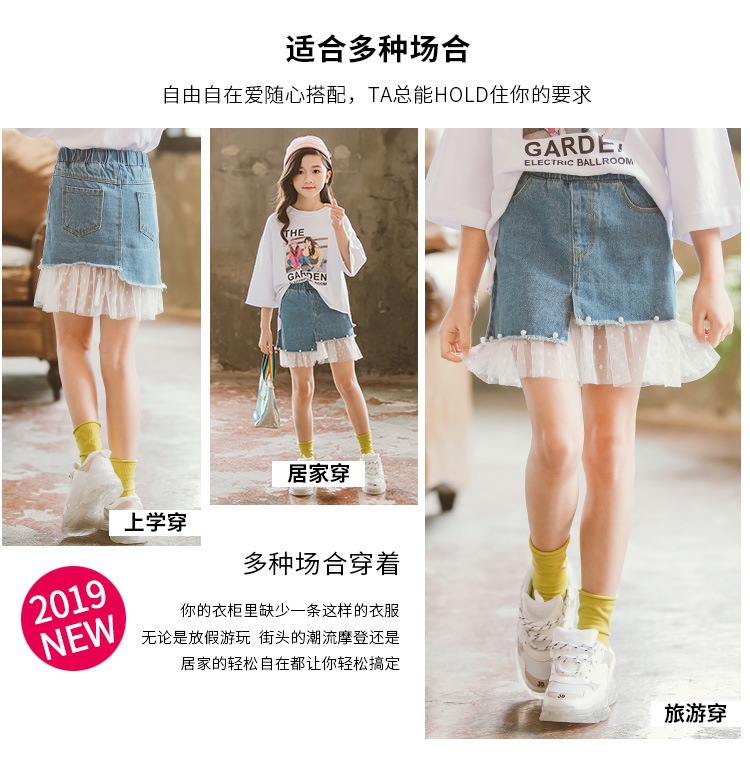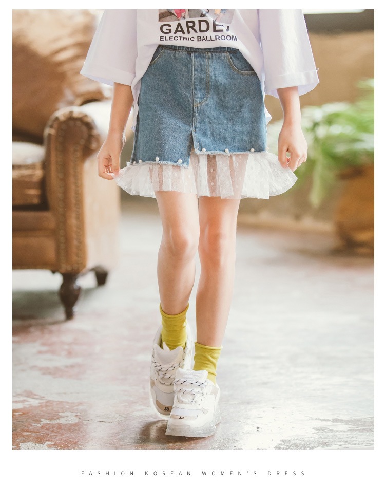 여아 데님 스커트 2026 여름 신상 한국 스타일 중소형 아동용 레이스 패치워크 스커트 큰아이들을 위한 세련된 스커트스토어 가기