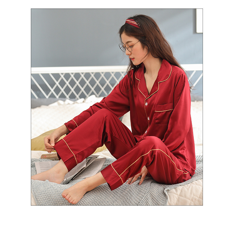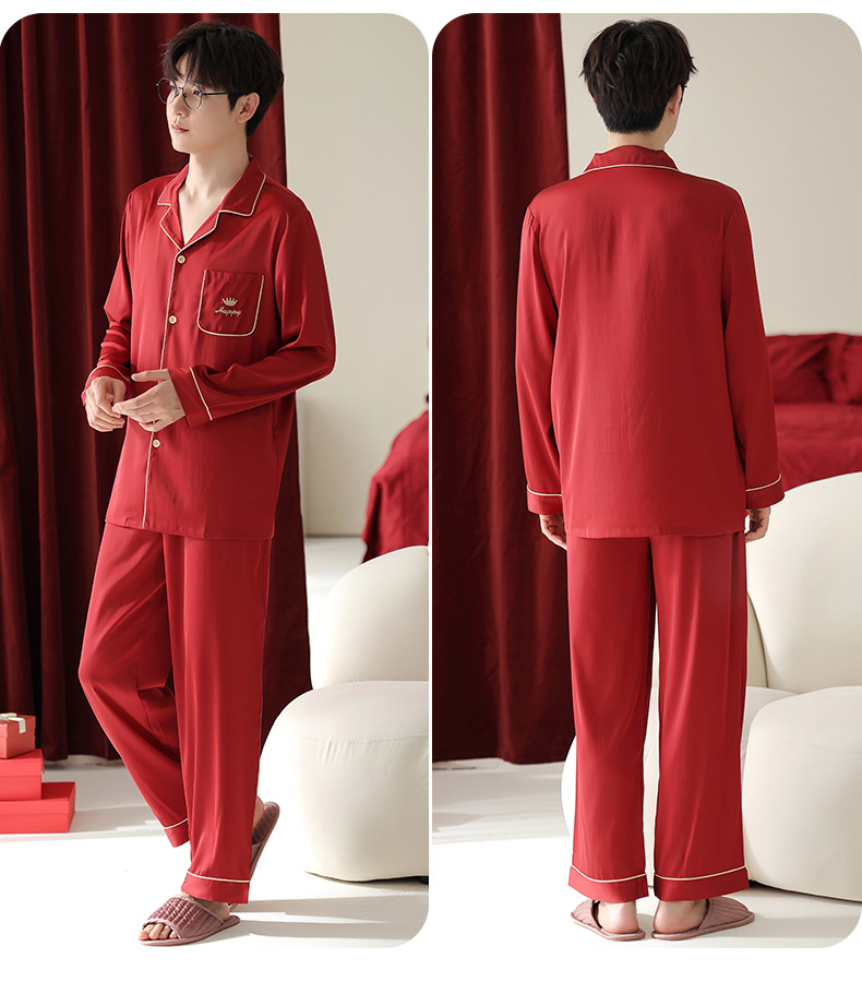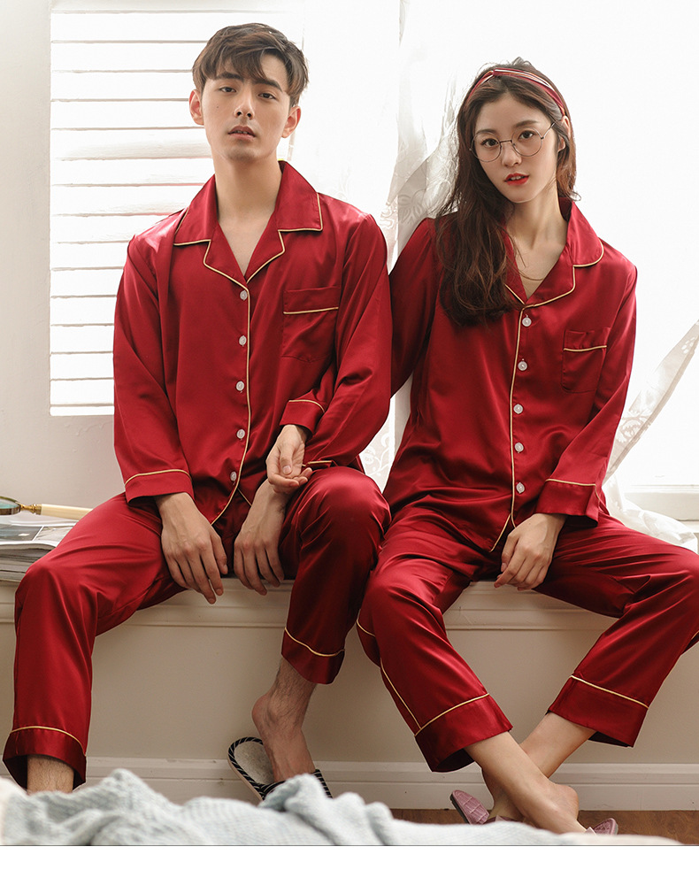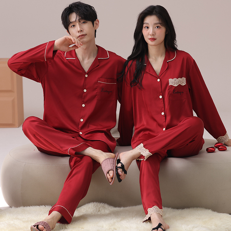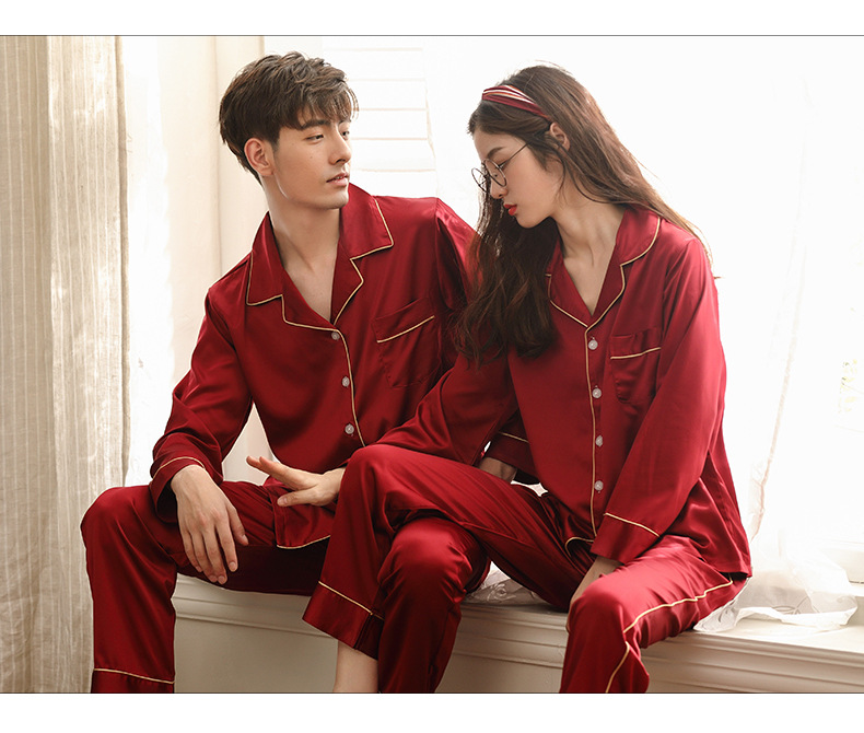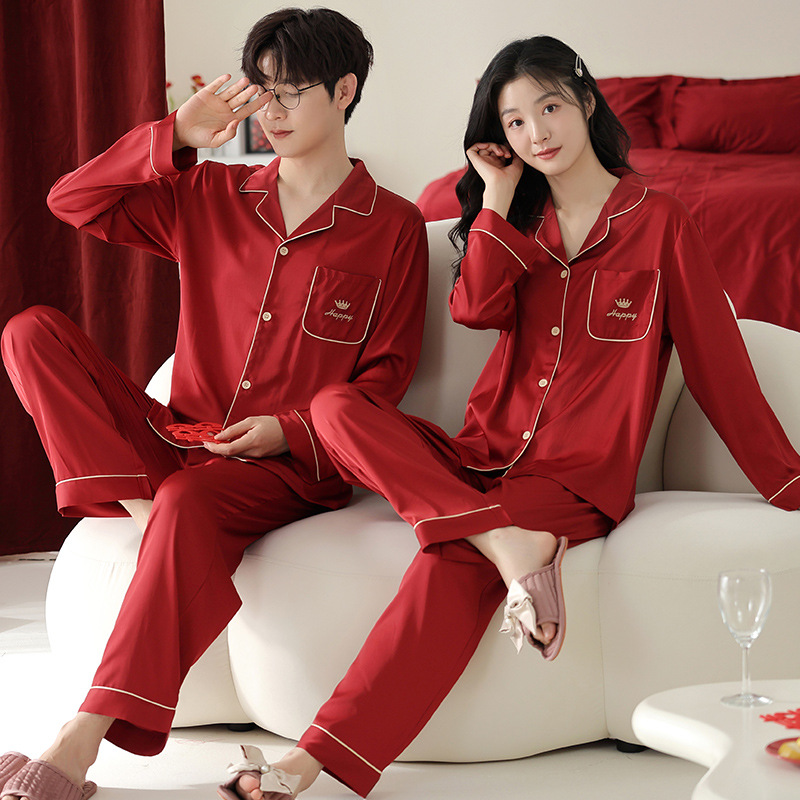 커플 잠옷 얼음 실크 봄, 가을 신혼 긴팔 빨간색 동물 년 홈웨어 남성과 여성 여름 웨딩 슈트