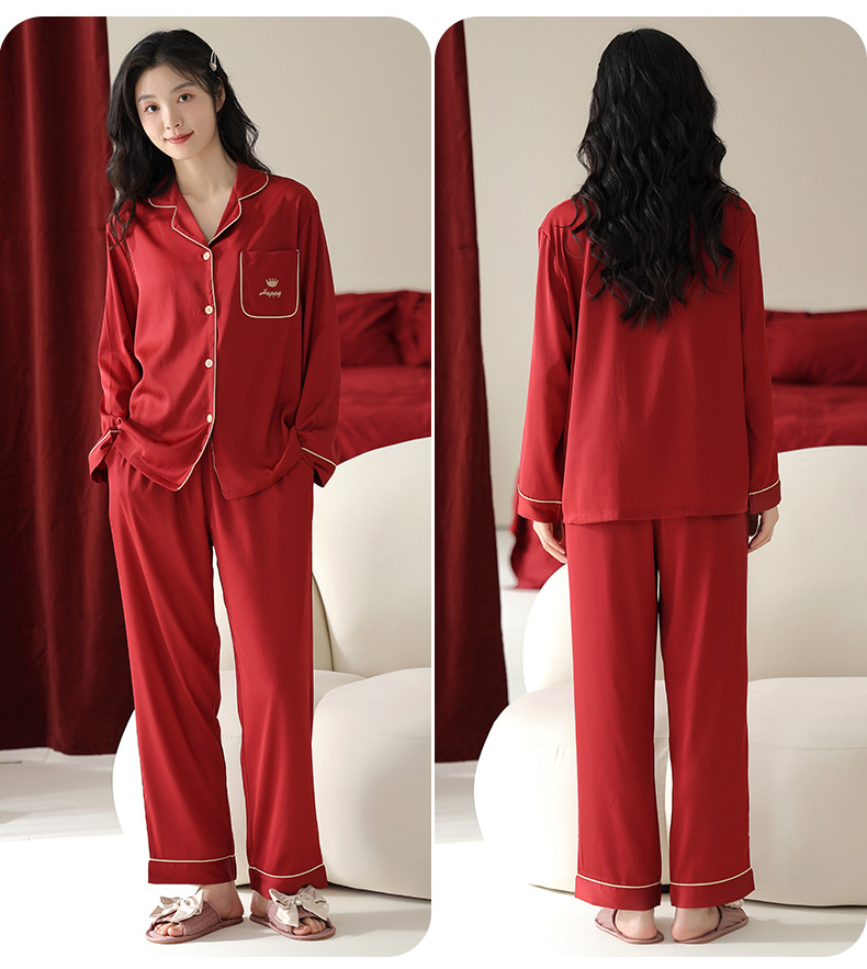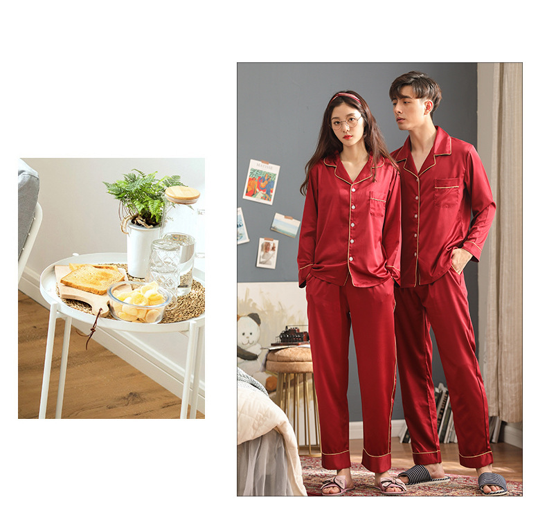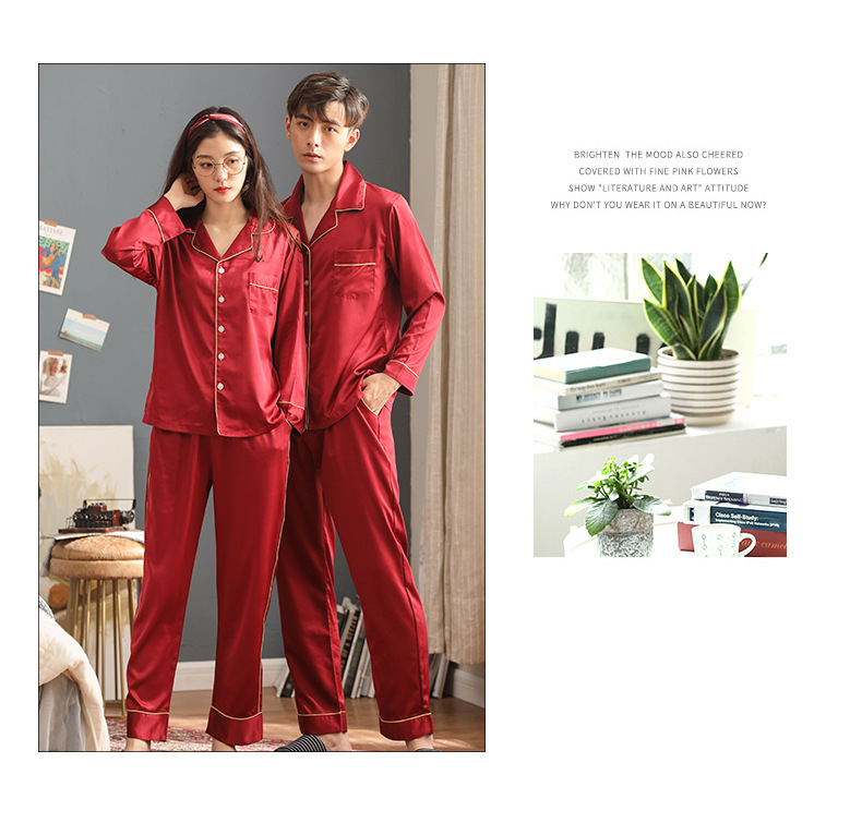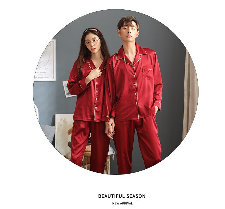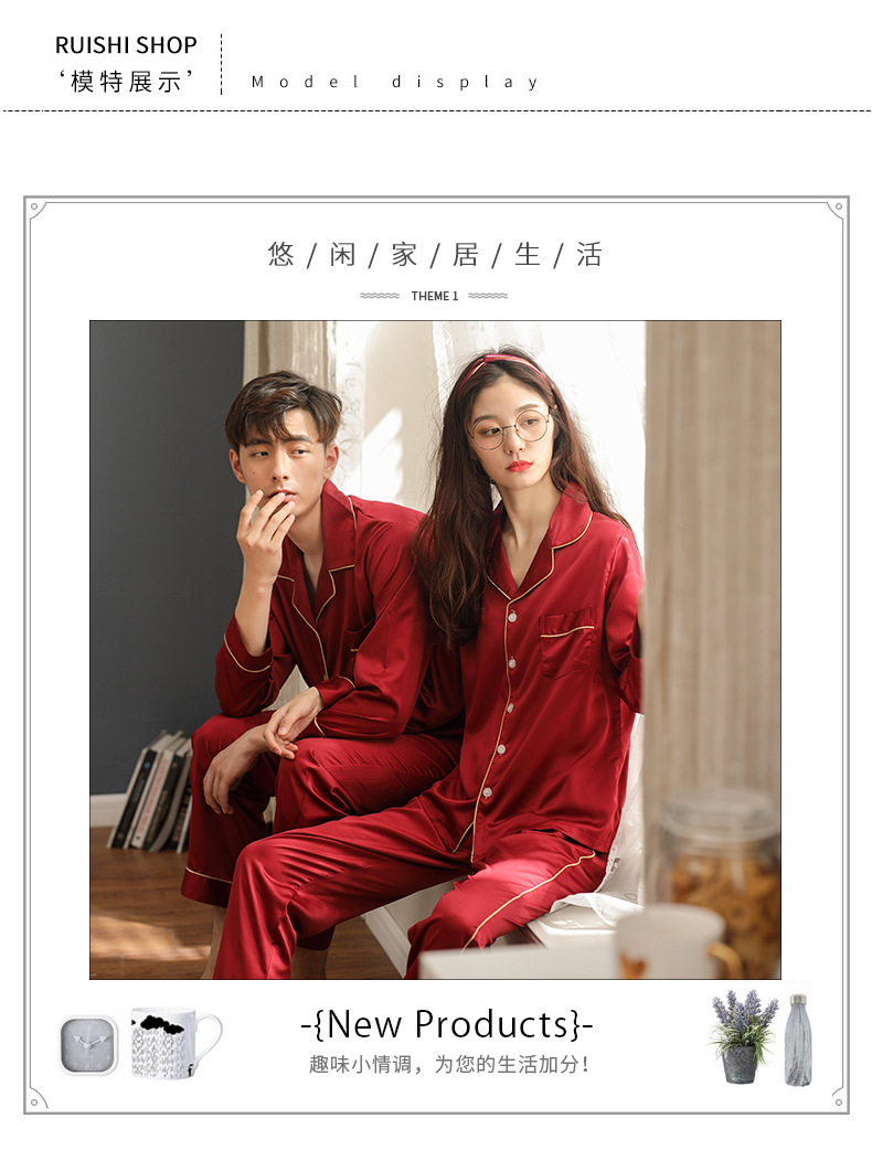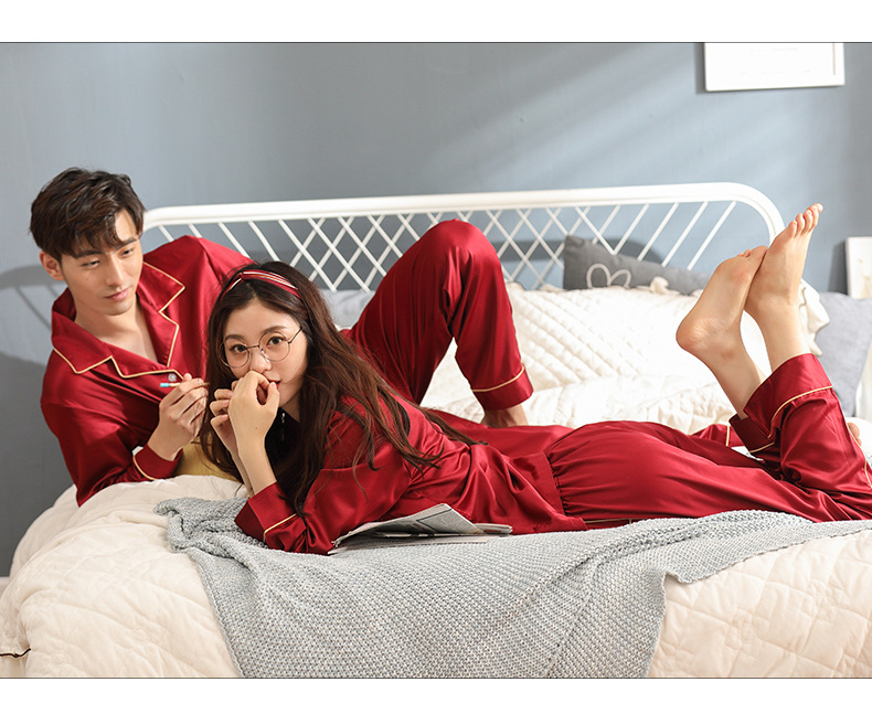 커플 잠옷 얼음 실크 봄, 가을 신혼 긴팔 빨간색 동물 년 홈웨어 남성과 여성 여름 웨딩 슈트스토어 가기
