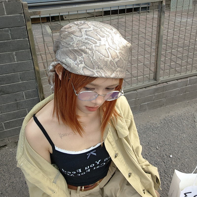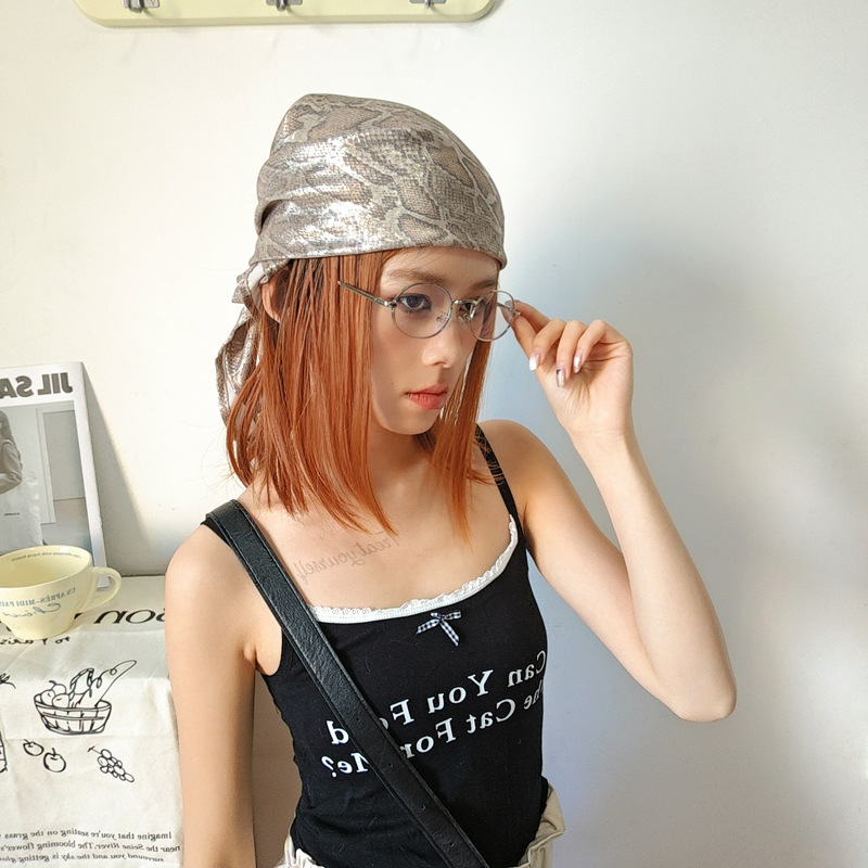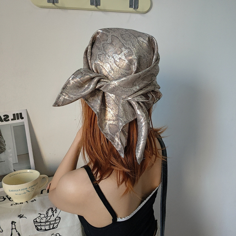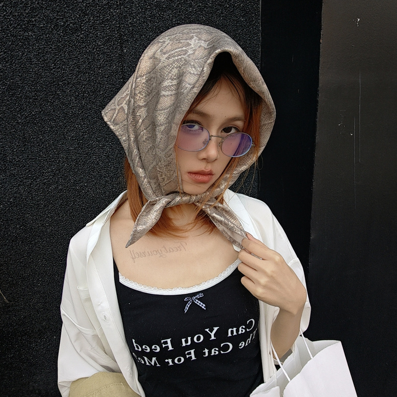인터넷 연예인 같은 스타일 Y2K 타이드 스파이스 소녀 스퀘어 터반 스카프 실크 스카프 밀레니엄 스타일 힙합 맞춤형 파이썬 패턴 레트로 모자스토어 가기