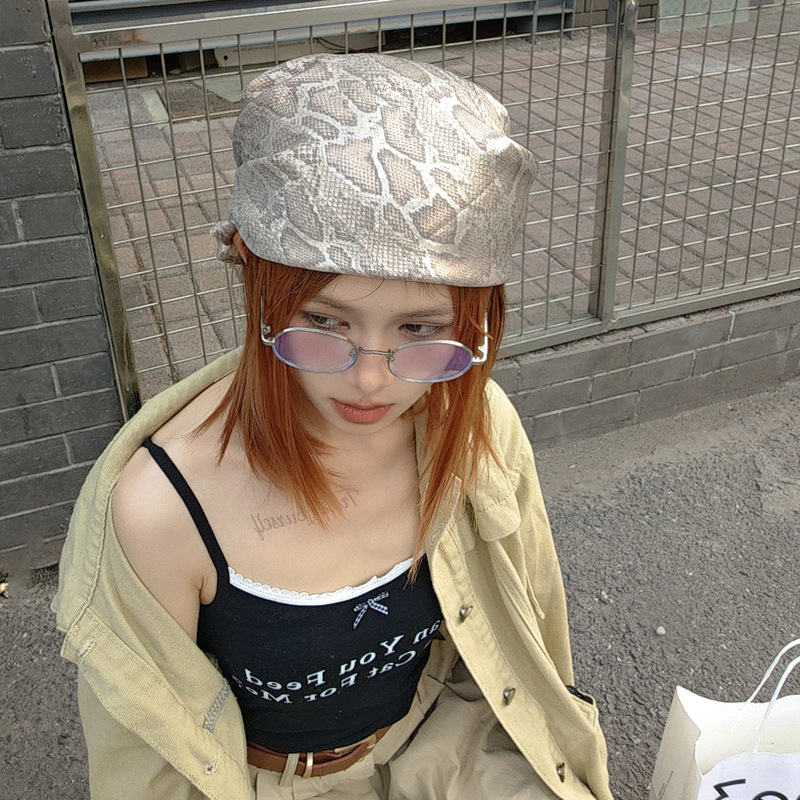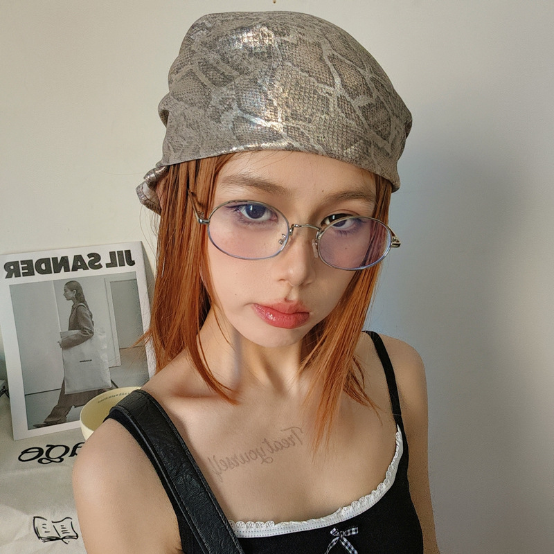 인터넷 연예인 같은 스타일 Y2K 타이드 스파이스 소녀 스퀘어 터반 스카프 실크 스카프 밀레니엄 스타일 힙합 맞춤형 파이썬 패턴 레트로 모자