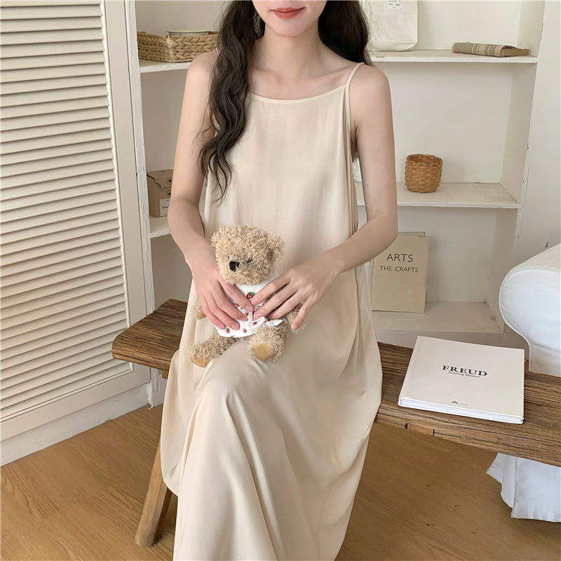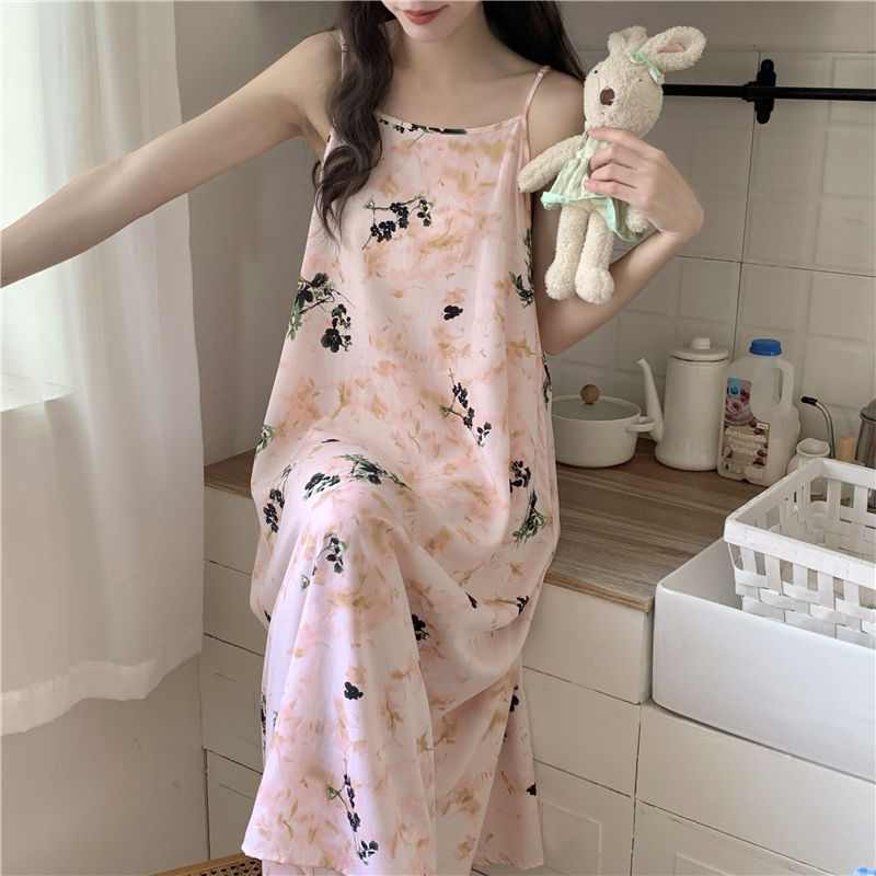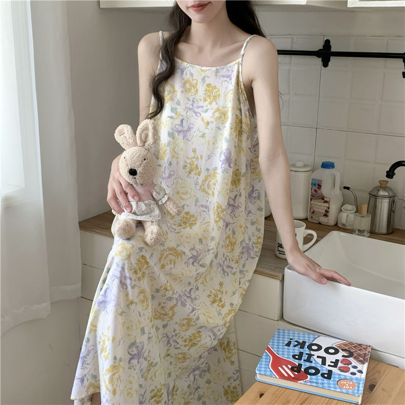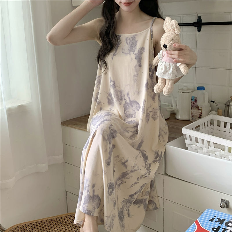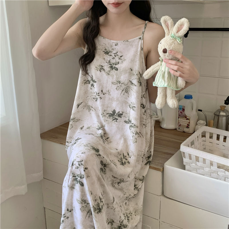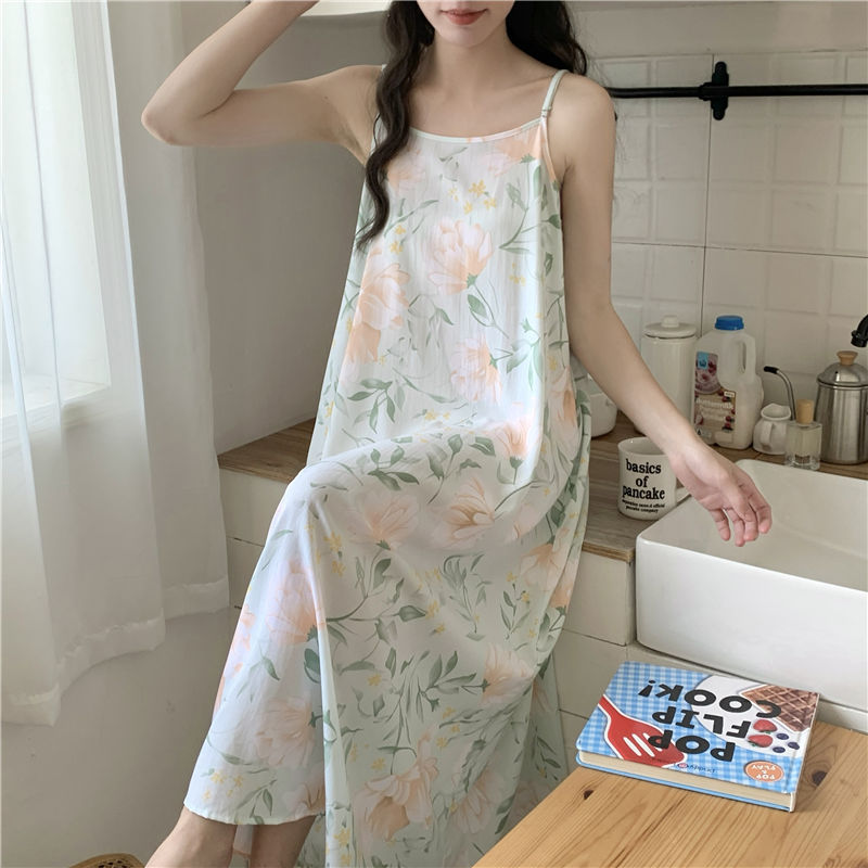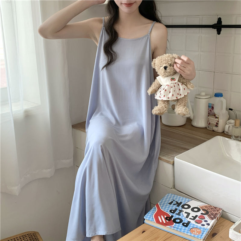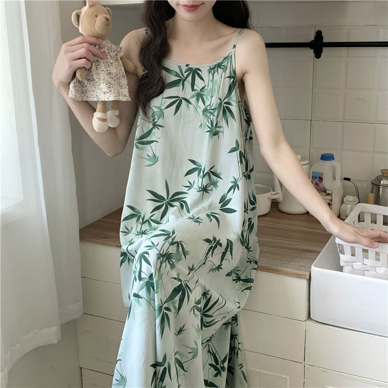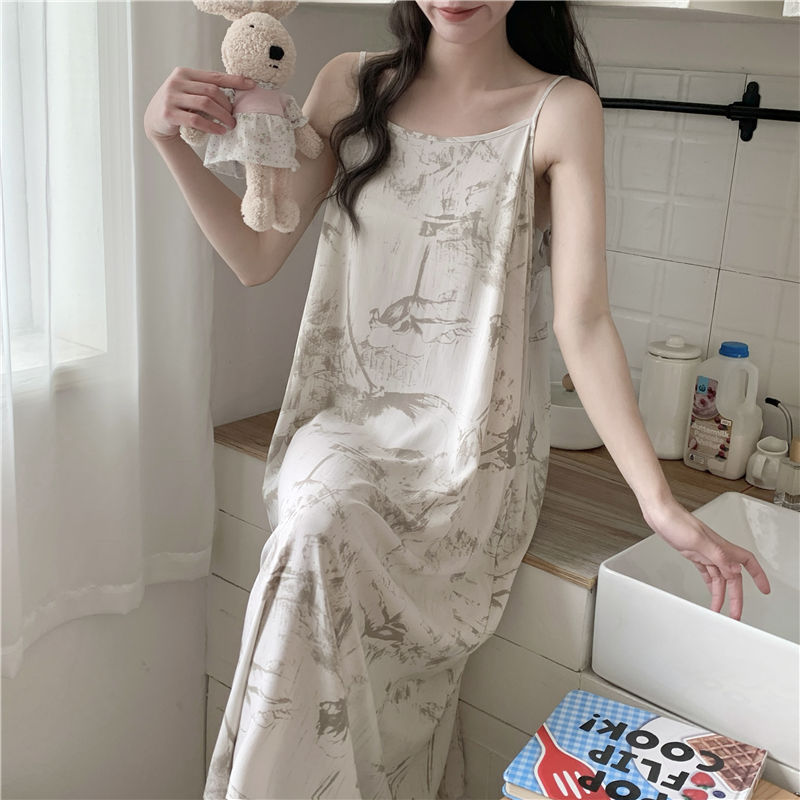 슬링 코튼 실크 나이트가운 여성의 여름 민소매 긴 원피스 플러스 사이즈 겉옷 임산부 나이트가운 인공면 파자마스토어 가기