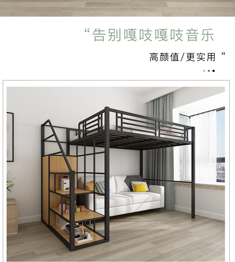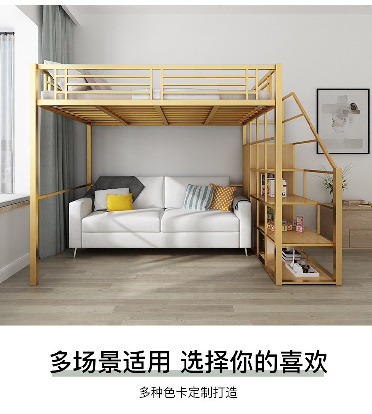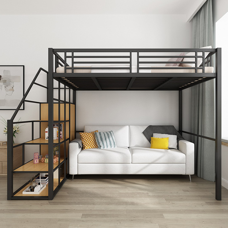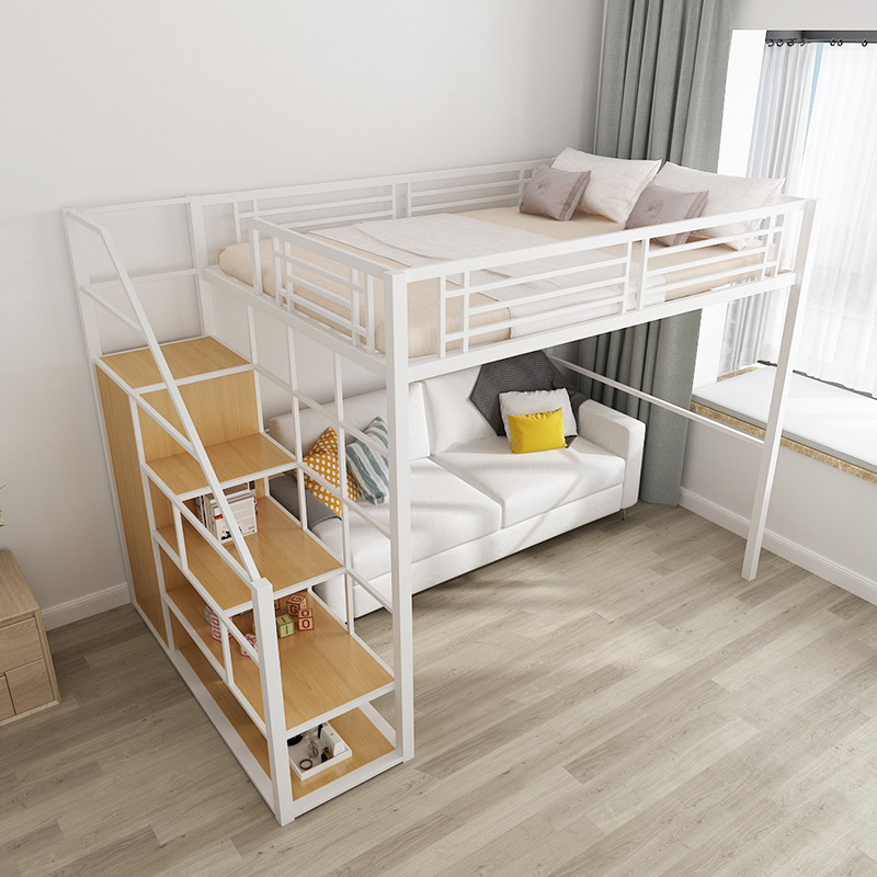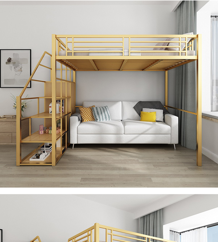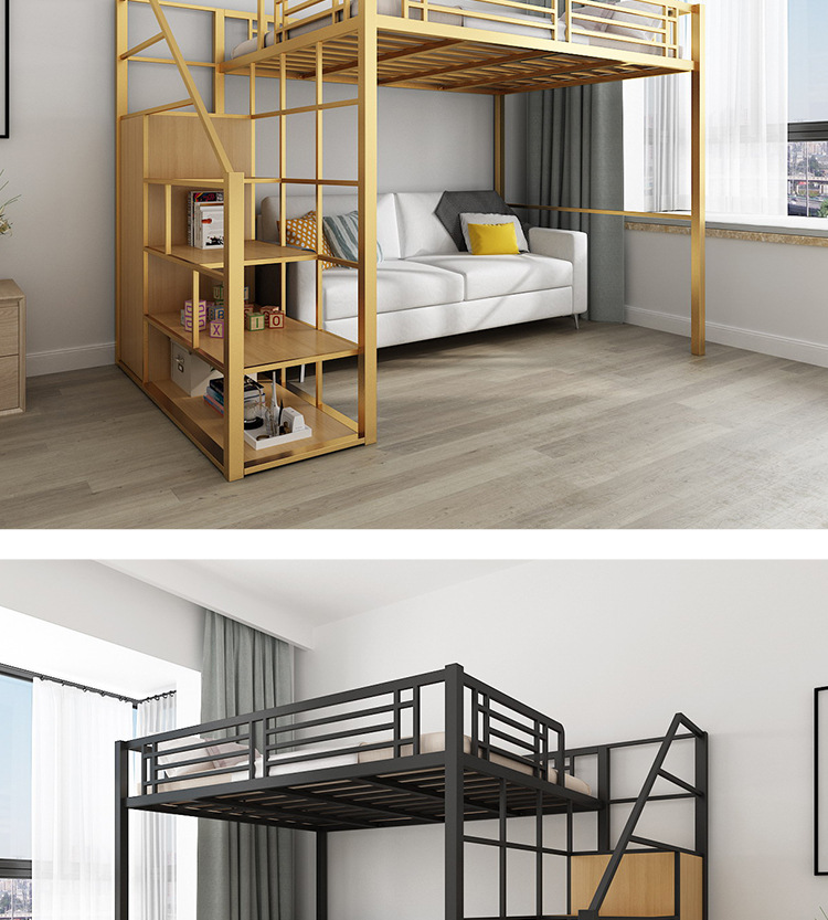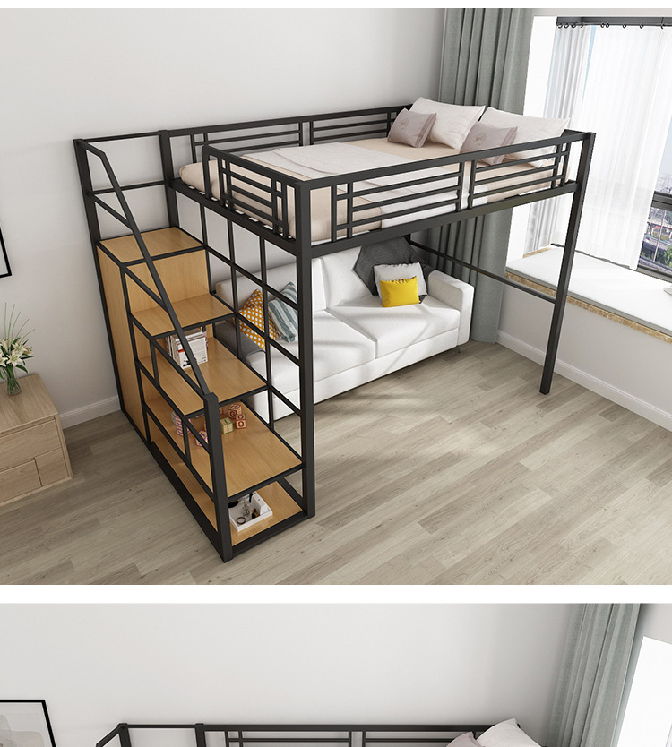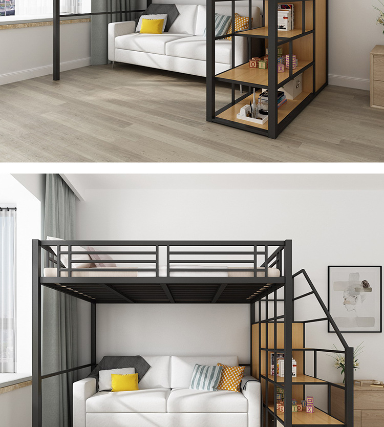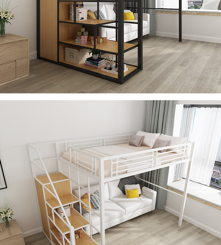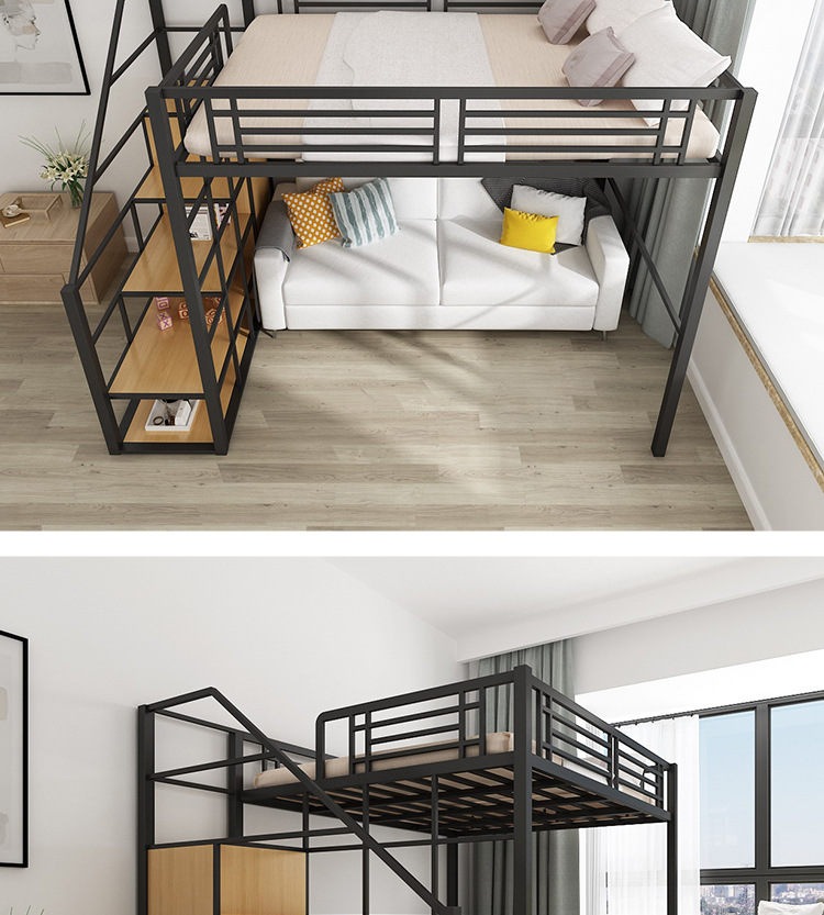 [공장 맞춤형 가공] 침대 위에 테이블, 철제 높은 침대, 작은 다락방 공간 절약형 높낮이 침대