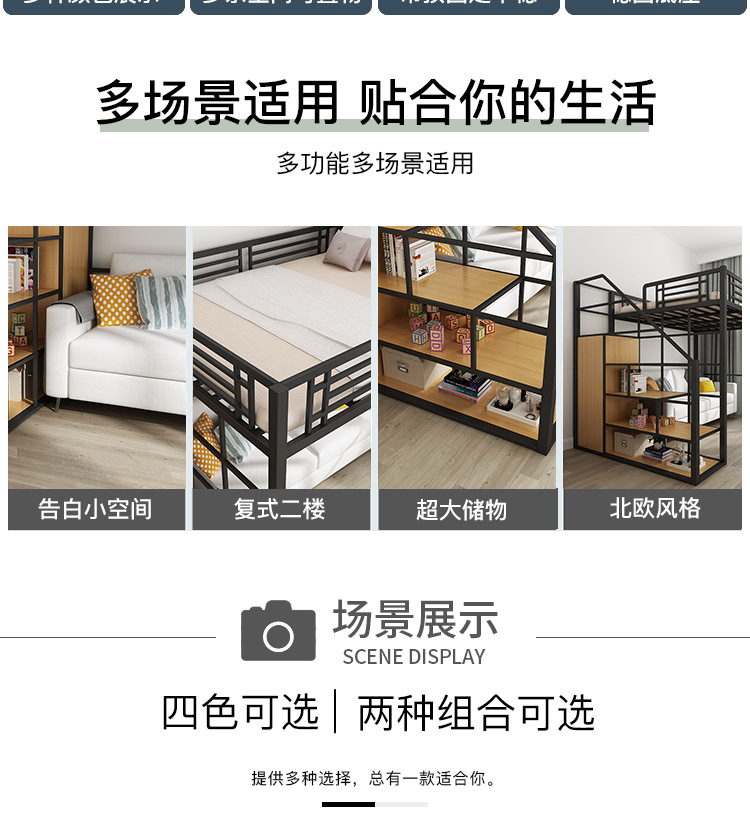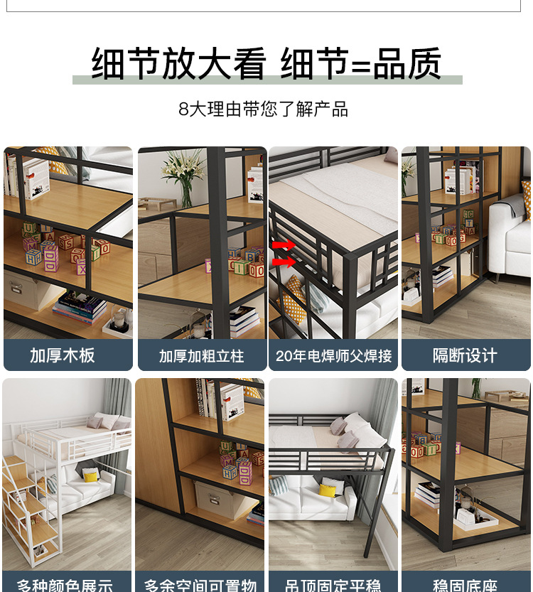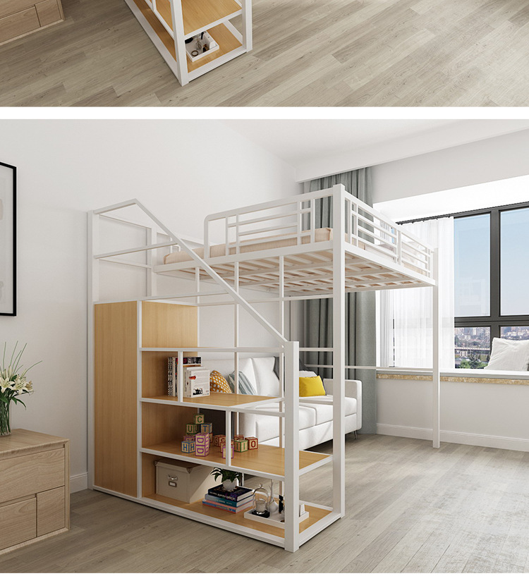 [공장 맞춤형 가공] 침대 위에 테이블, 철제 높은 침대, 작은 다락방 공간 절약형 높낮이 침대스토어 가기