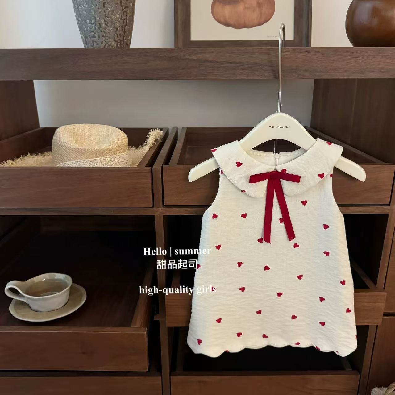여자 여름 달콤한 사랑 원피스 2025 새로운 아기 소녀 한국 얇은 귀여운 인형 칼라 조끼 원피스스토어 가기