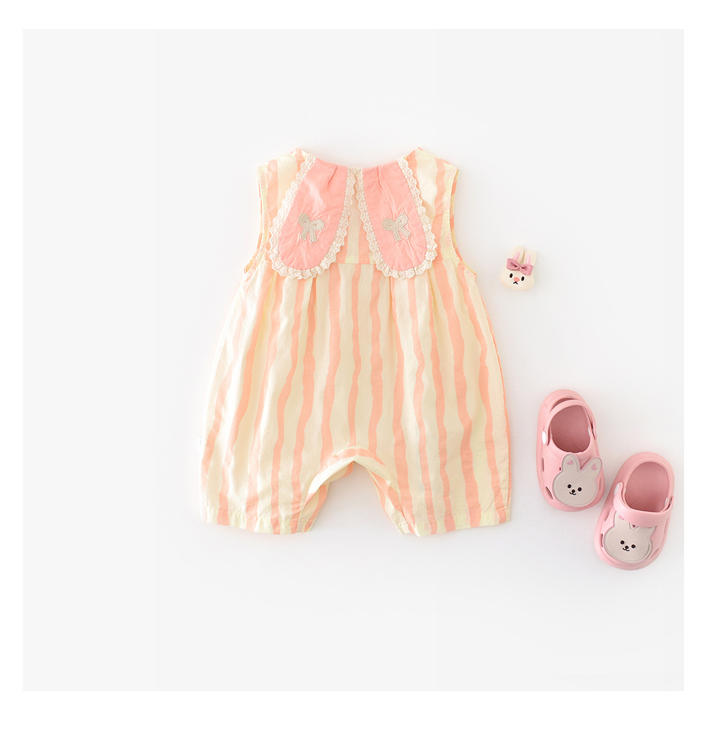 2025秋季新款儿童卡通连身衣 新生儿条纹脱卸领长袖爬服53566