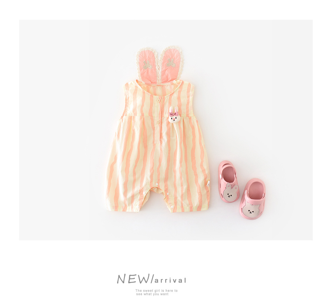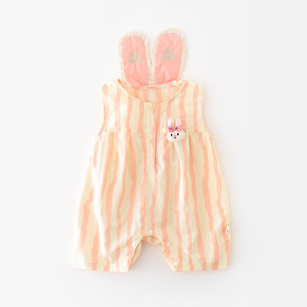 25 여름 새 한국 스타일 소녀의 불규칙한 줄무늬 등반 착용 아기 유아 만화 토끼 귀 52121스토어 가기