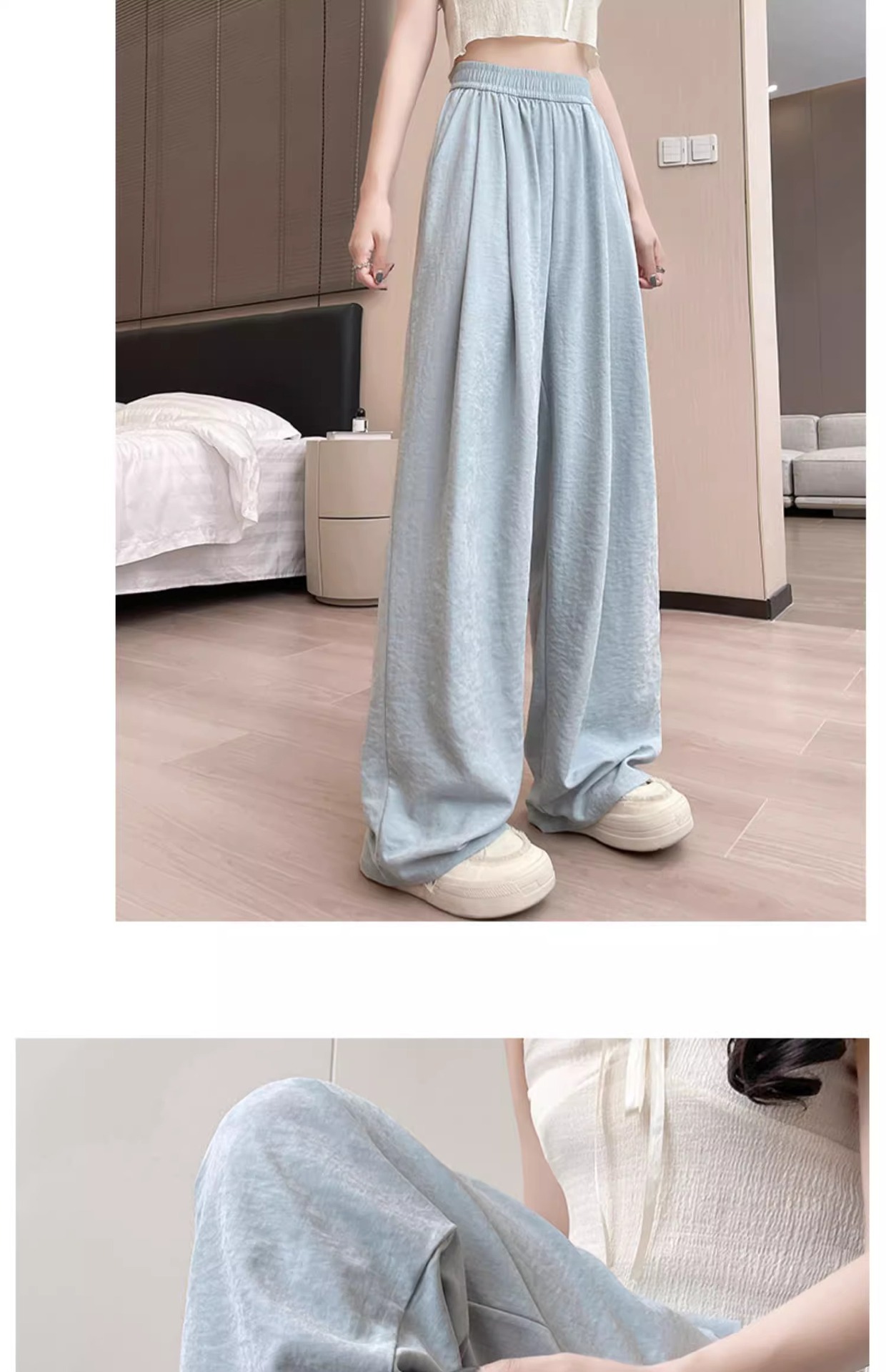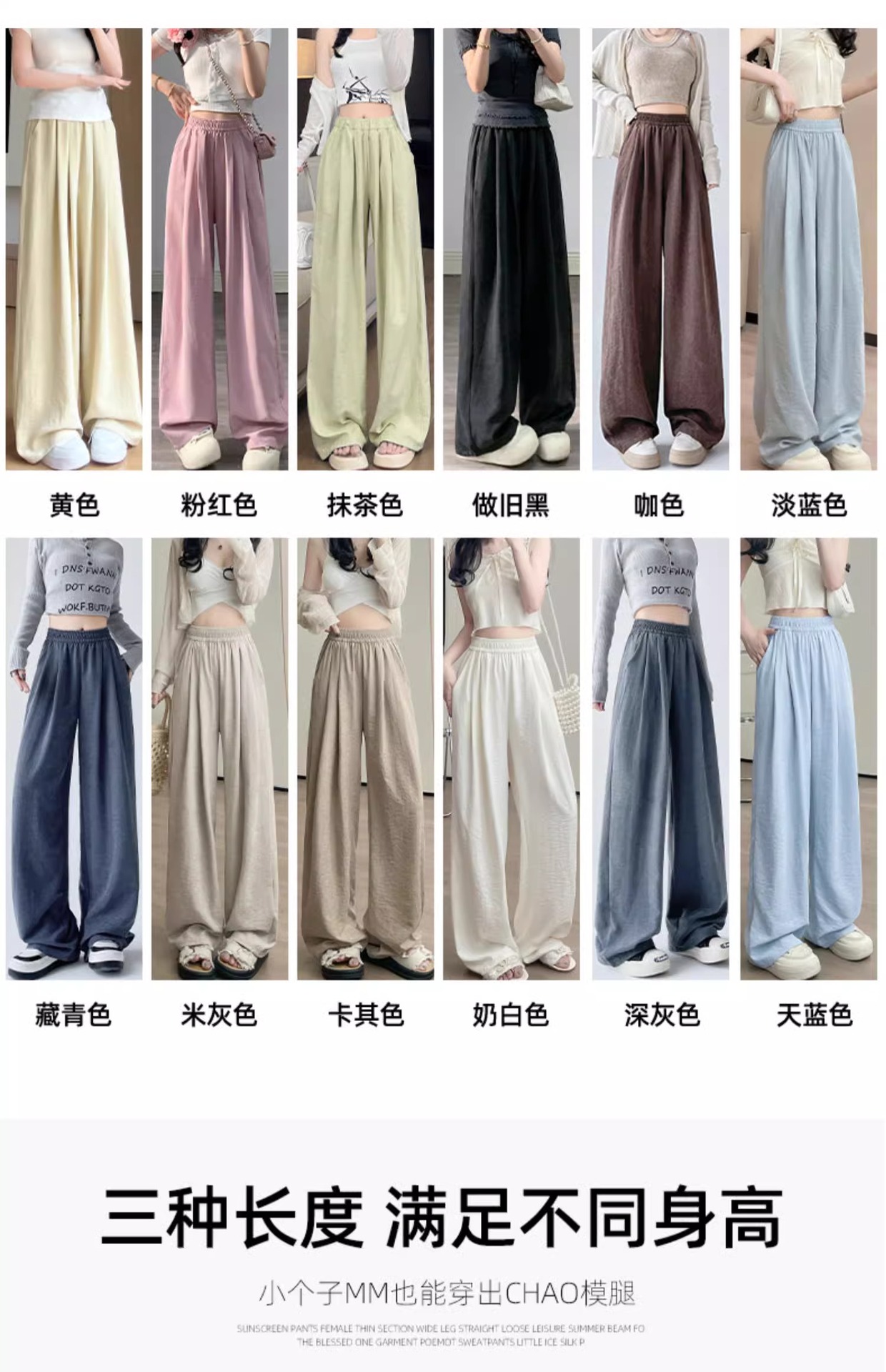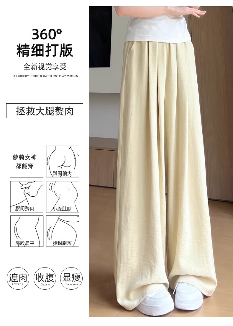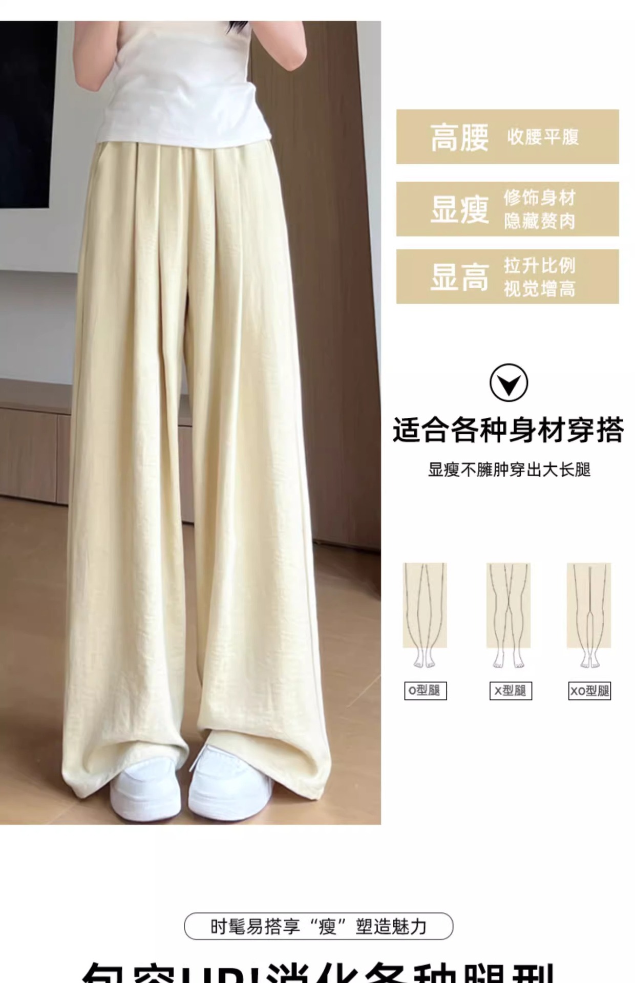 노란 우유 푸 야마모토 바지 여성 여름 새로운 높은 허리 느슨한 투약 캐주얼 휴식 아이스 실크 스트레이트 바지스토어 가기