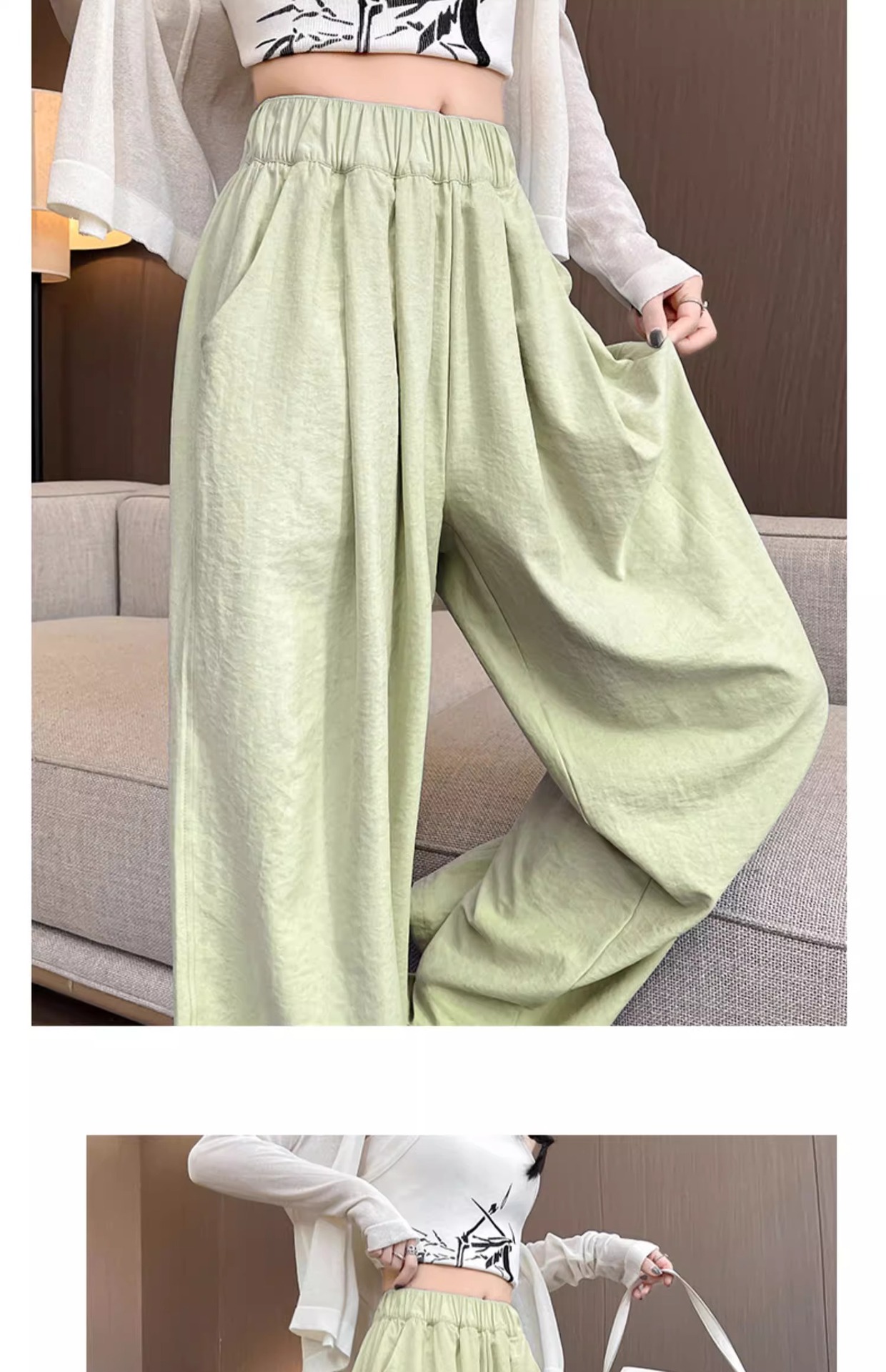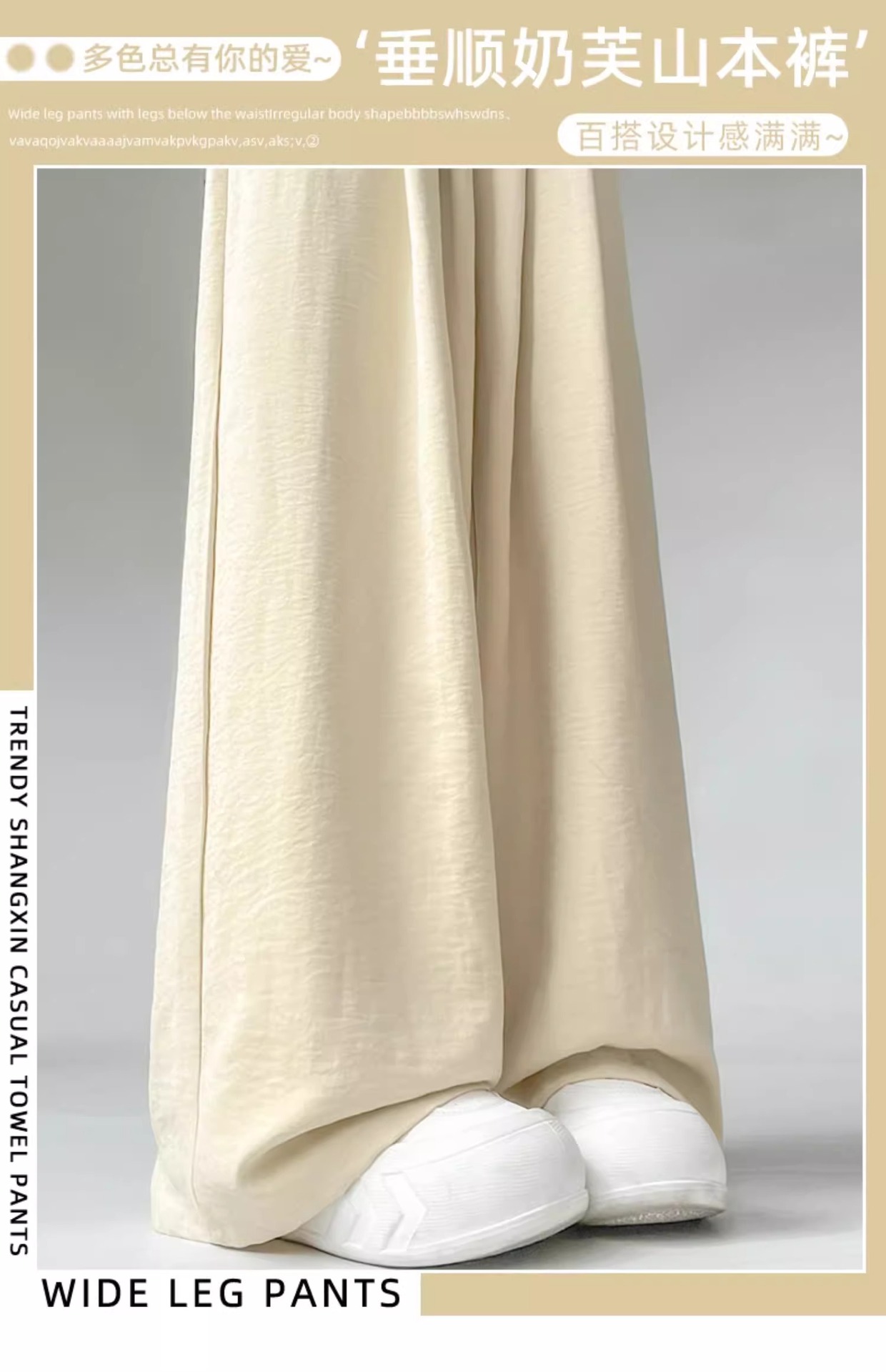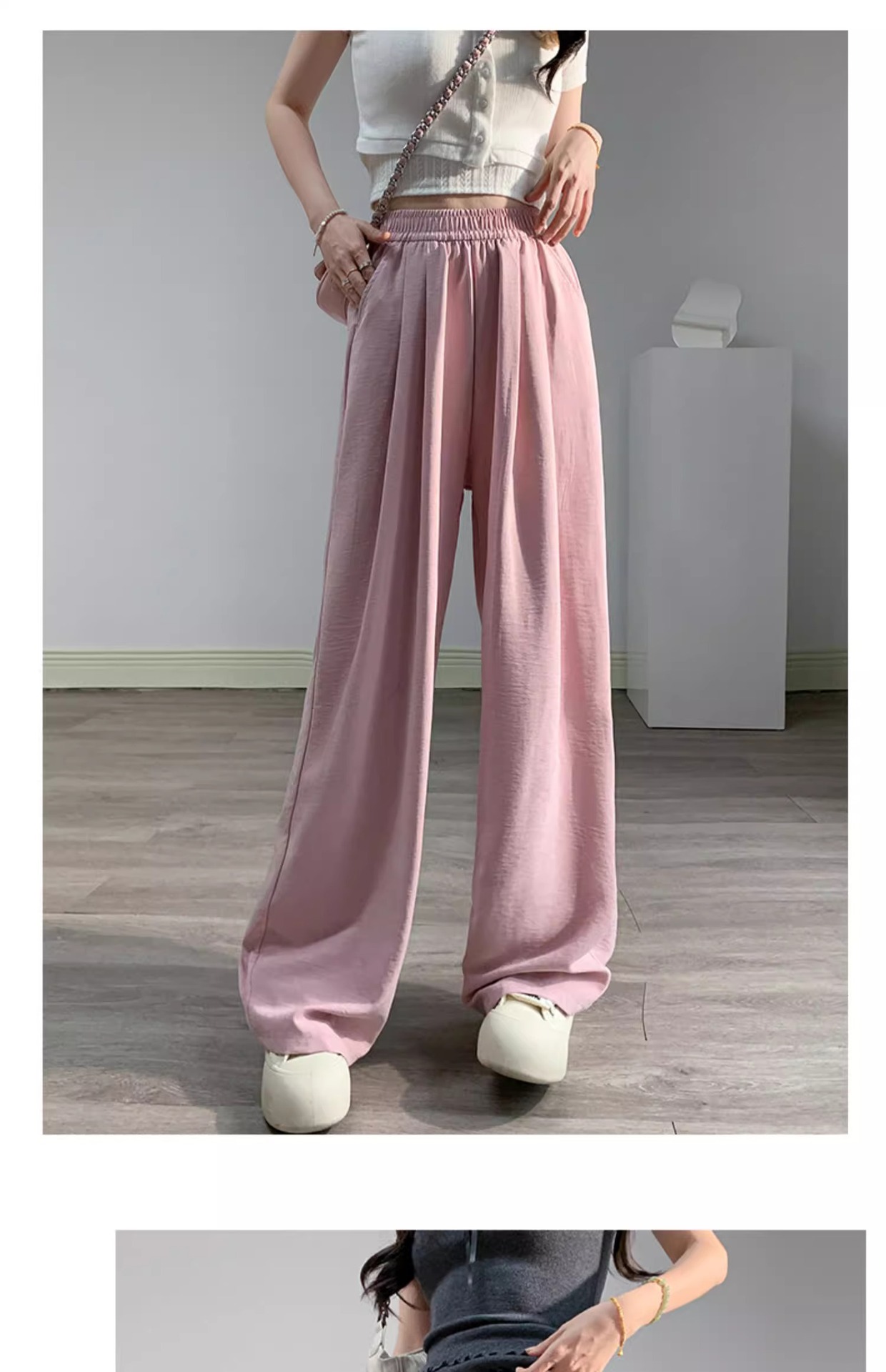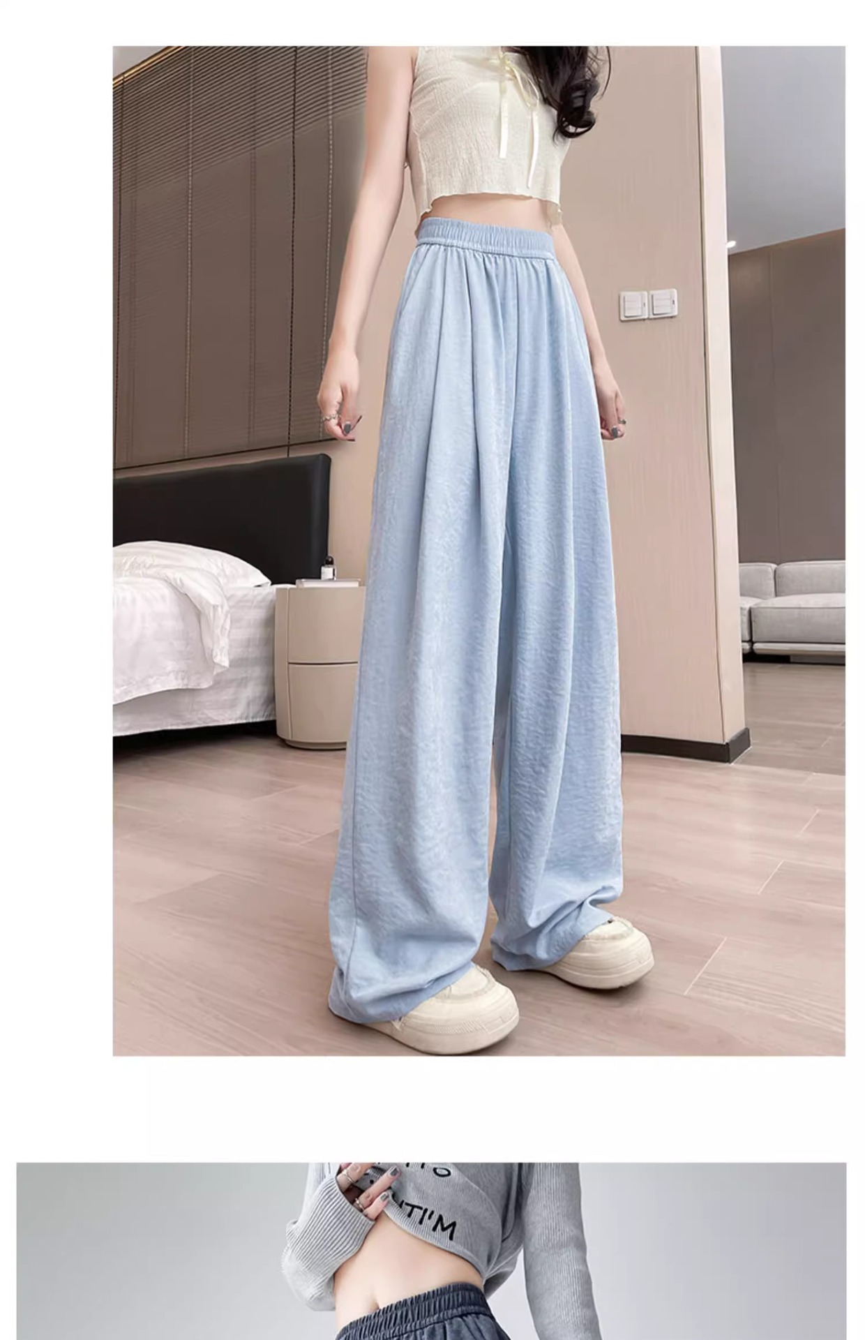 노란 우유 푸 야마모토 바지 여성 여름 새로운 높은 허리 느슨한 투약 캐주얼 휴식 아이스 실크 스트레이트 바지스토어 가기