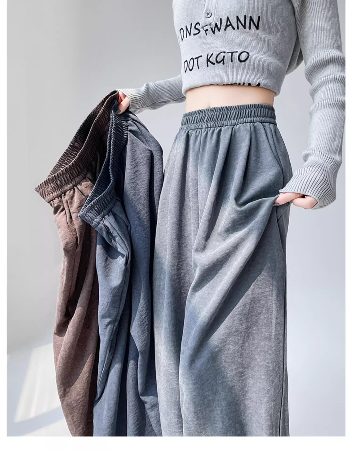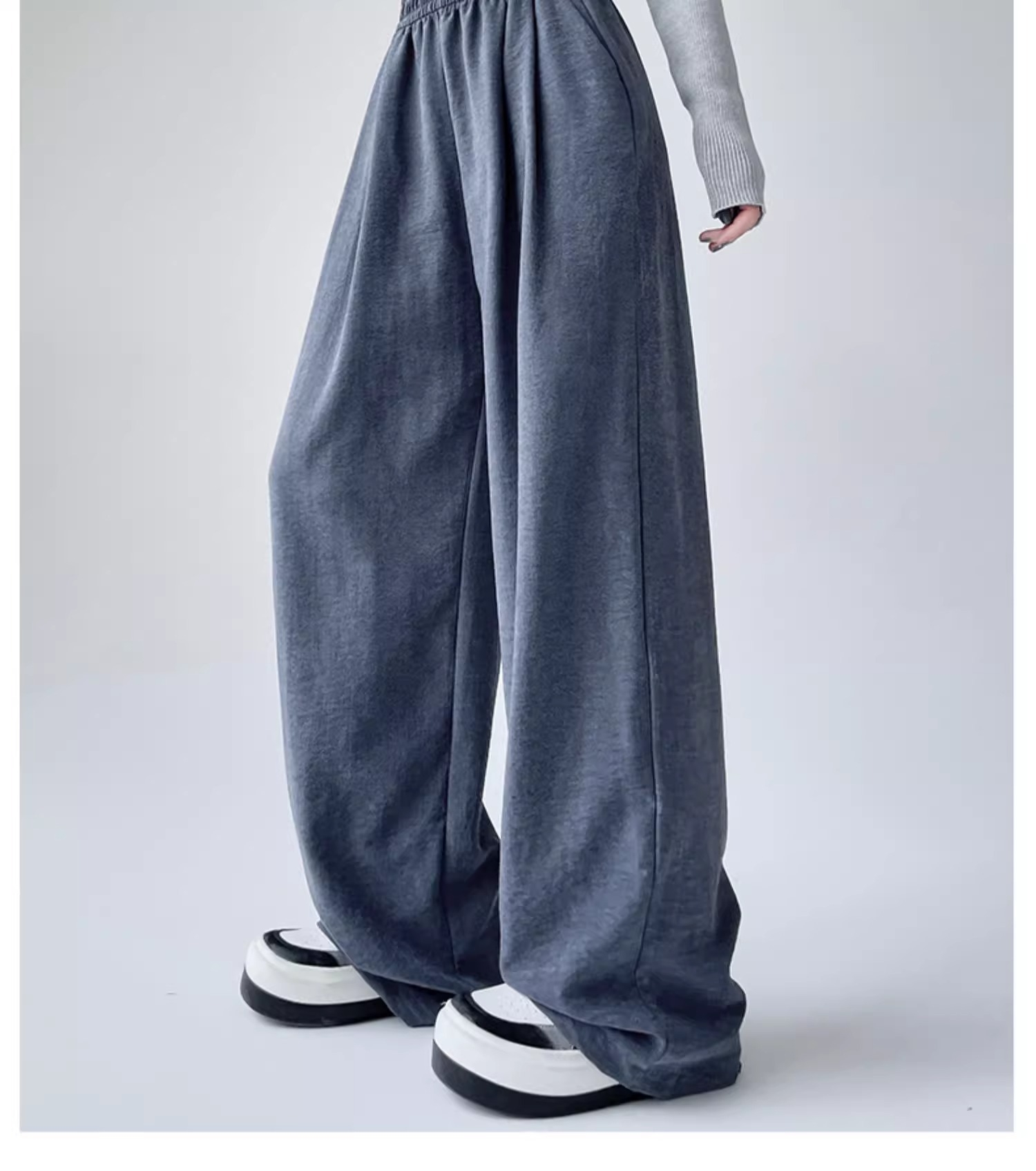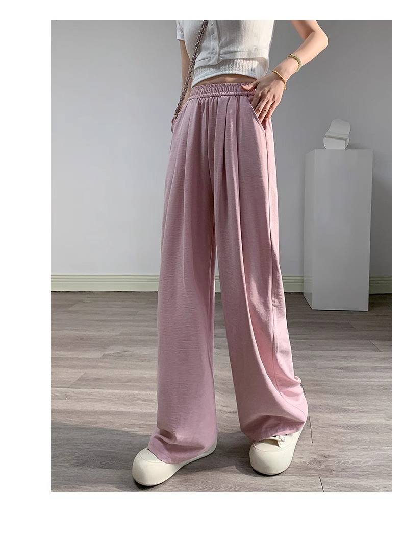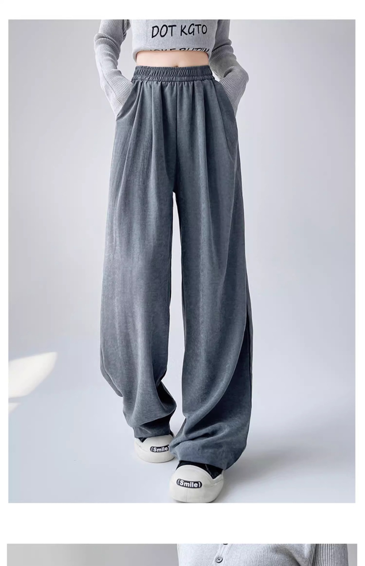 노란 우유 푸 야마모토 바지 여성 여름 새로운 높은 허리 느슨한 투약 캐주얼 휴식 아이스 실크 스트레이트 바지스토어 가기