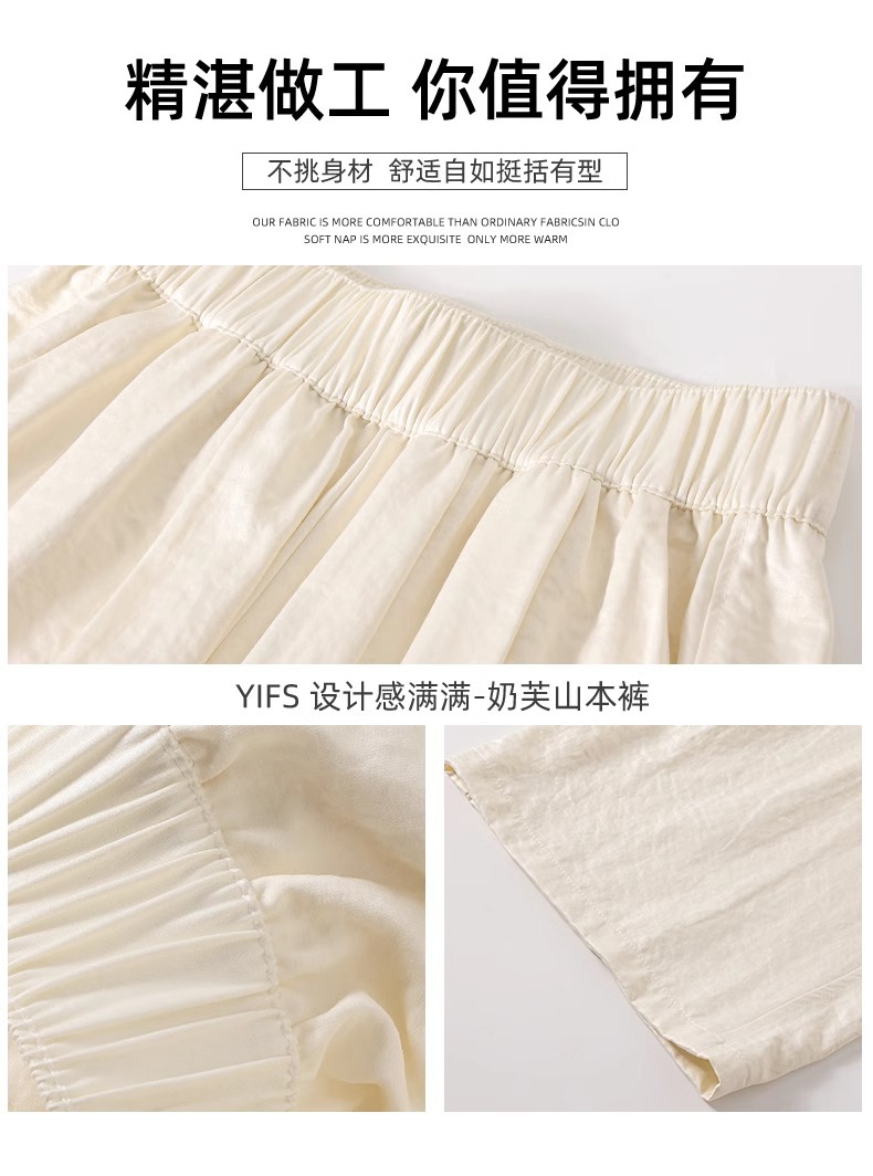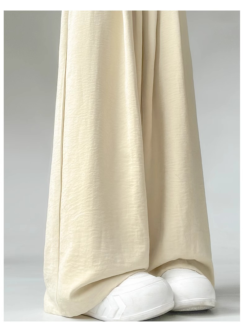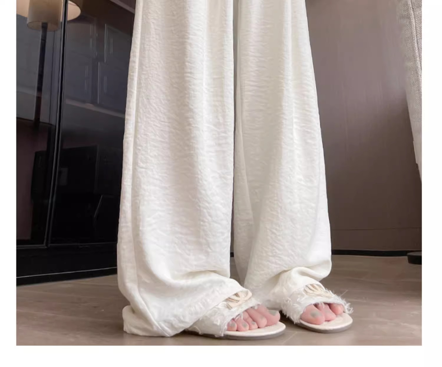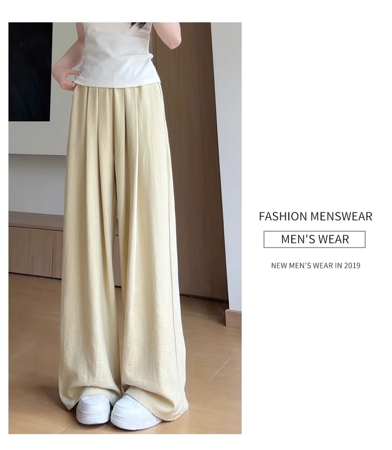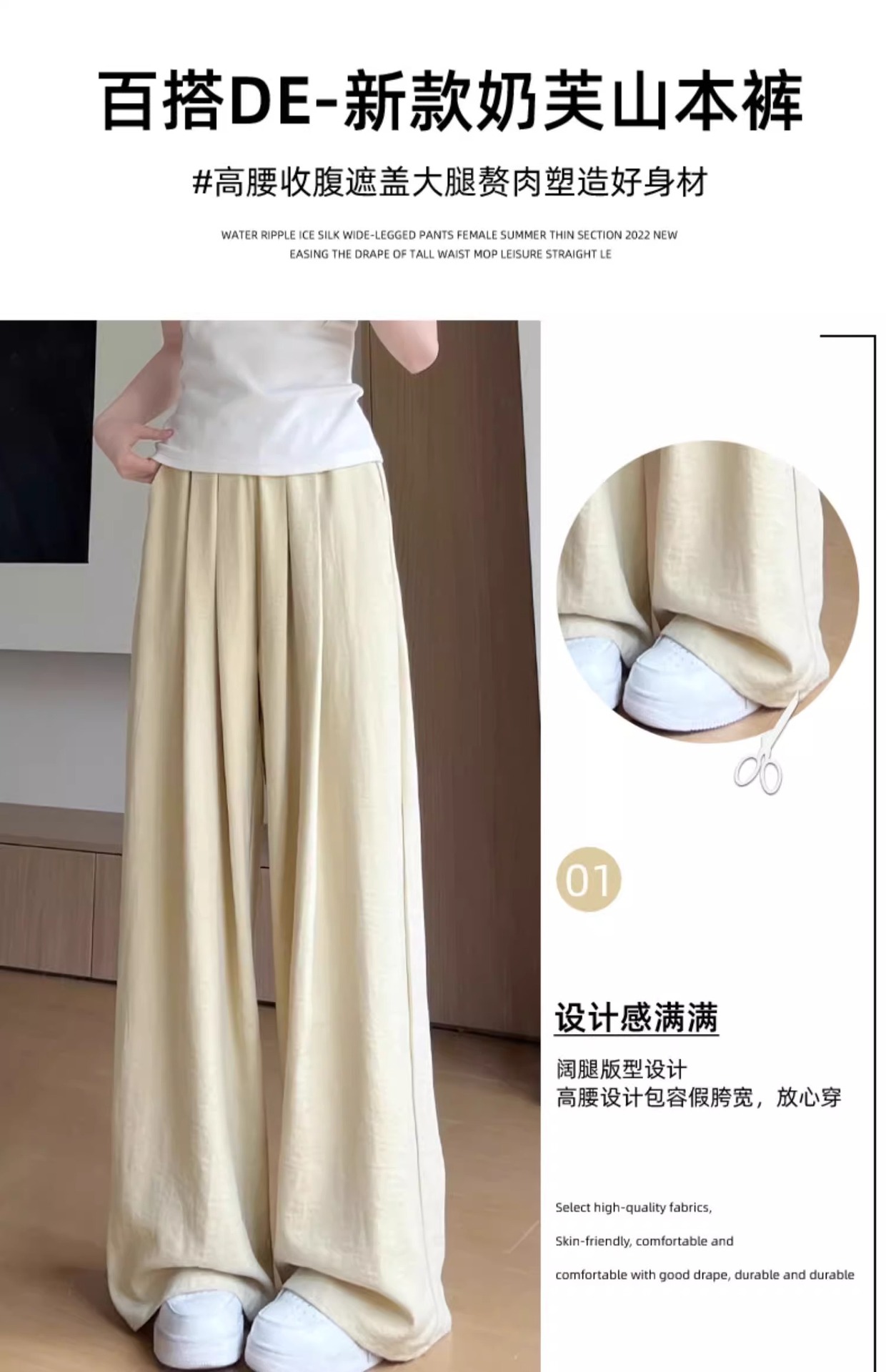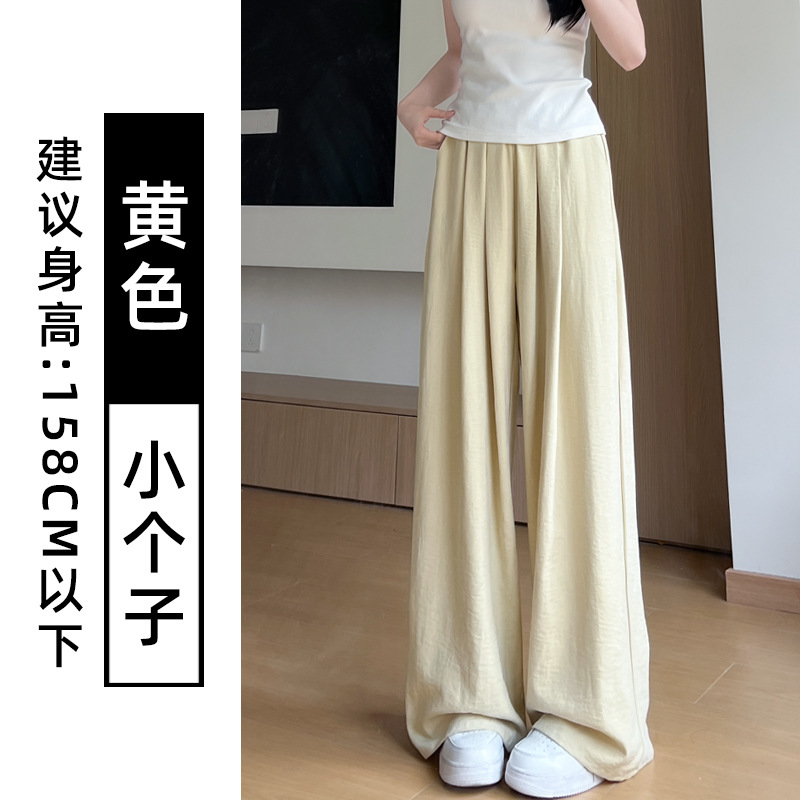 노란 우유 푸 야마모토 바지 여성 여름 새로운 높은 허리 느슨한 투약 캐주얼 휴식 아이스 실크 스트레이트 바지