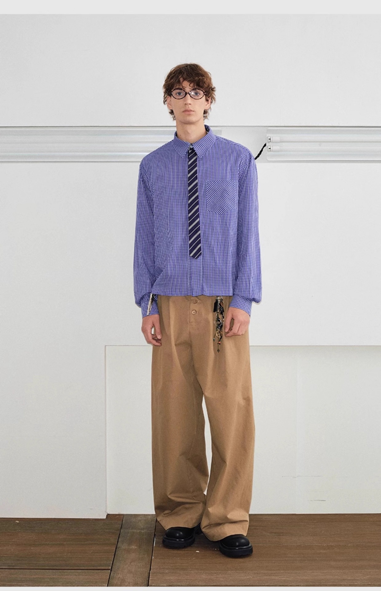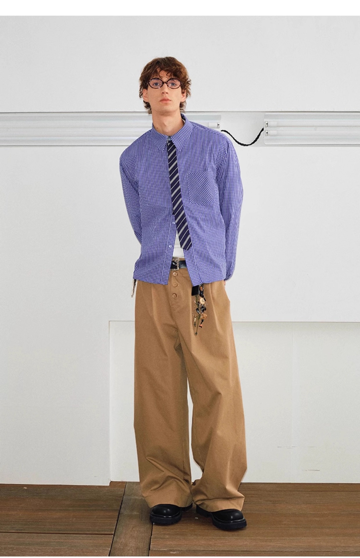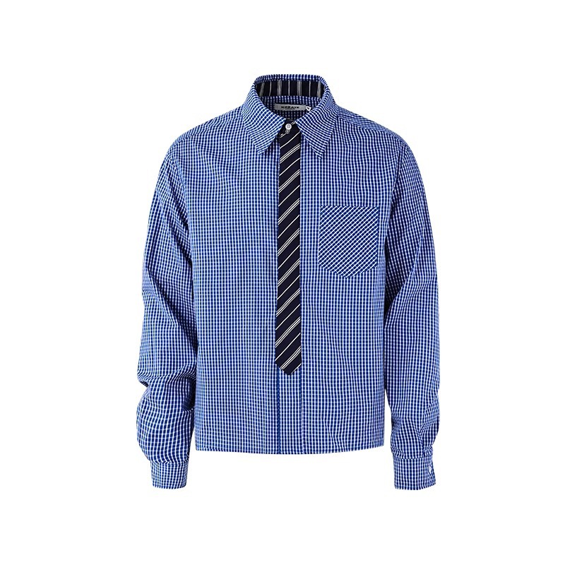 2025 년 봄과 가을 새로운 금 정리 넥타이 바느질 오래된 돈 스타일 느슨한 캐주얼 격자 무늬 긴 소매 셔츠