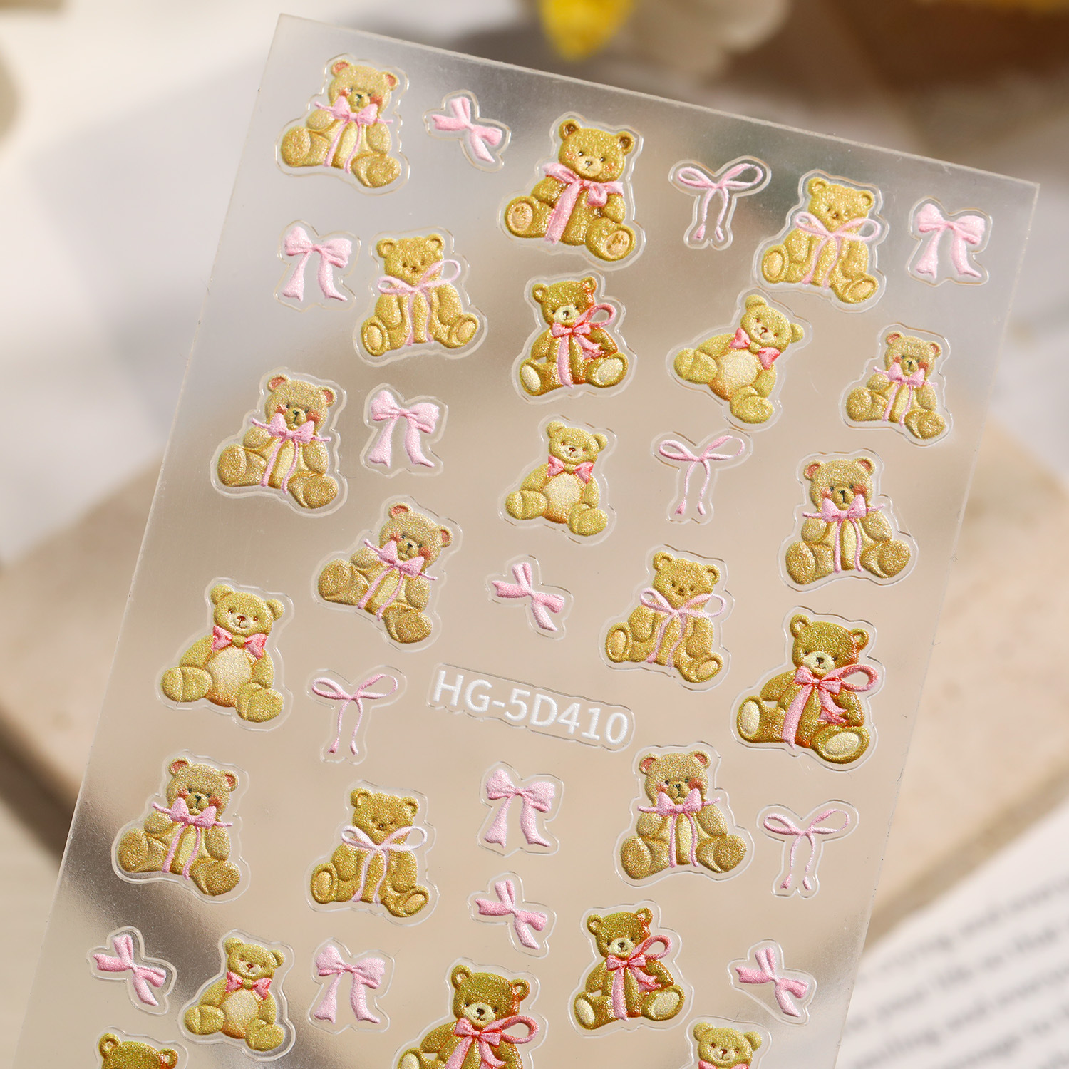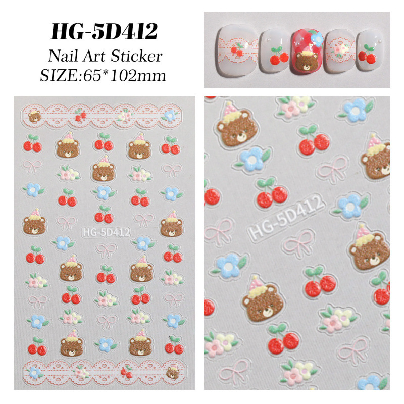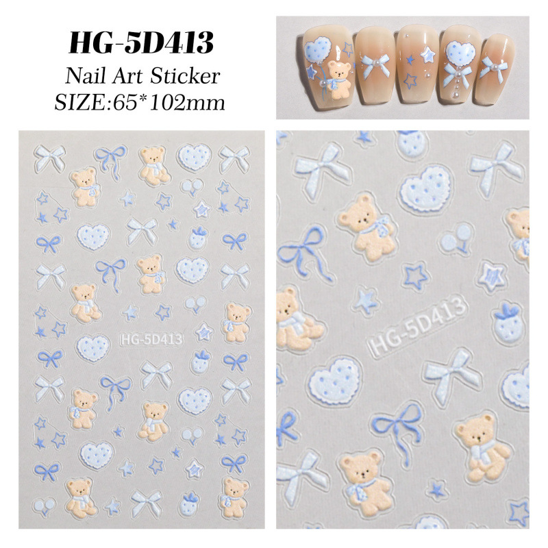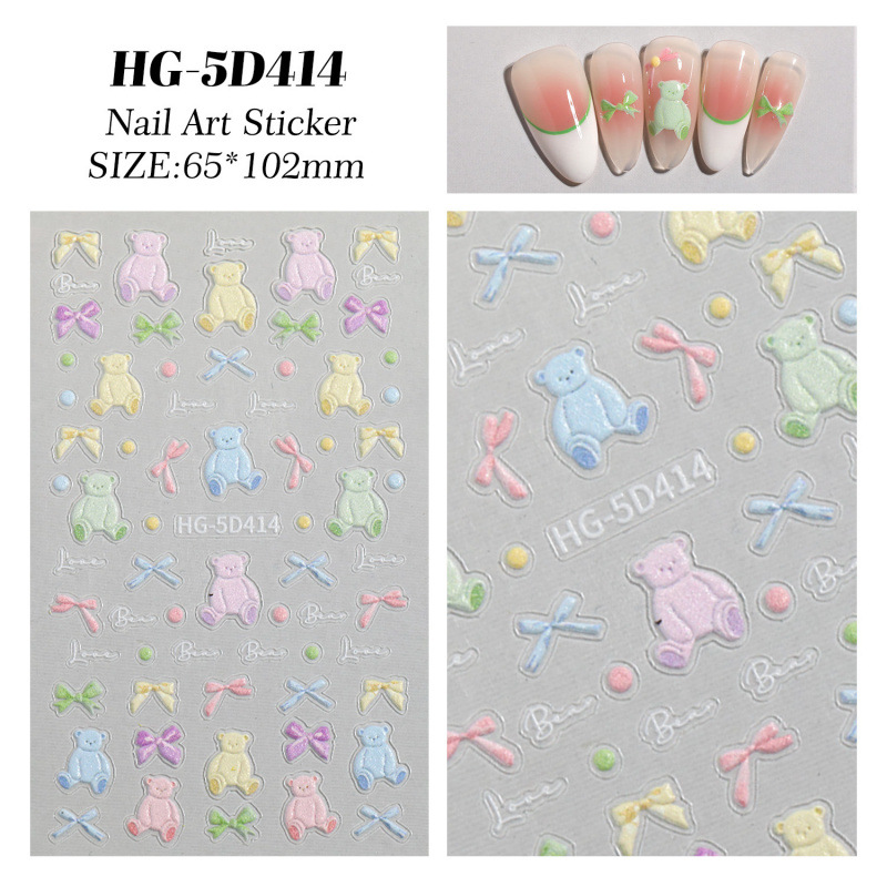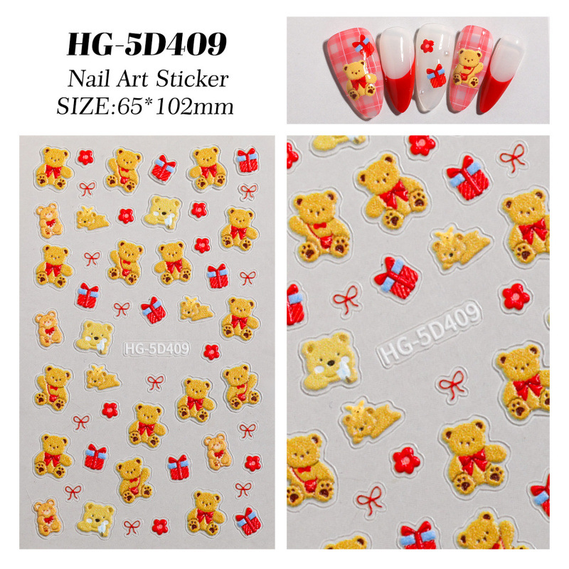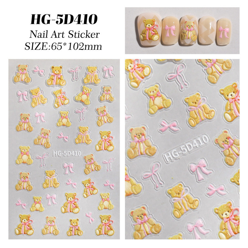 만화 귀여운 곰 네일 아트 스티커 5D 구호 스테레오 다크 브라운 곰 인형 네일 스티커 보석 HG스토어 가기