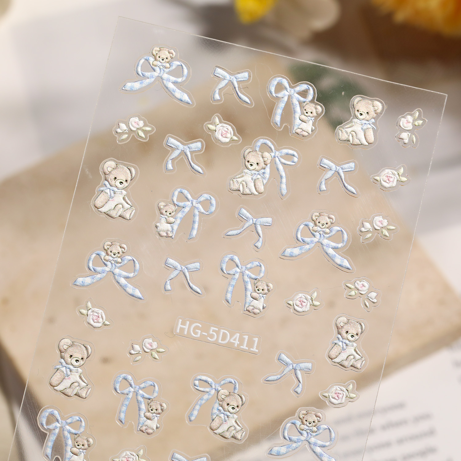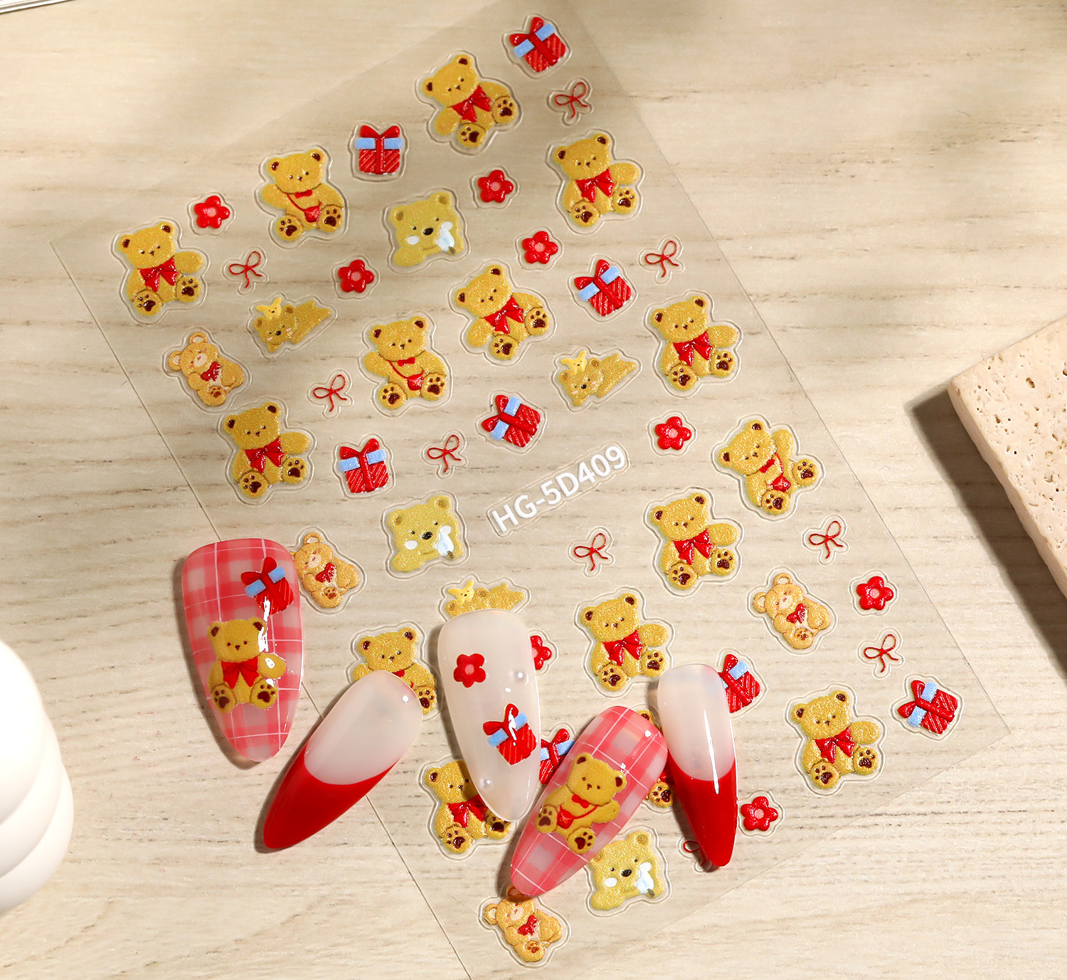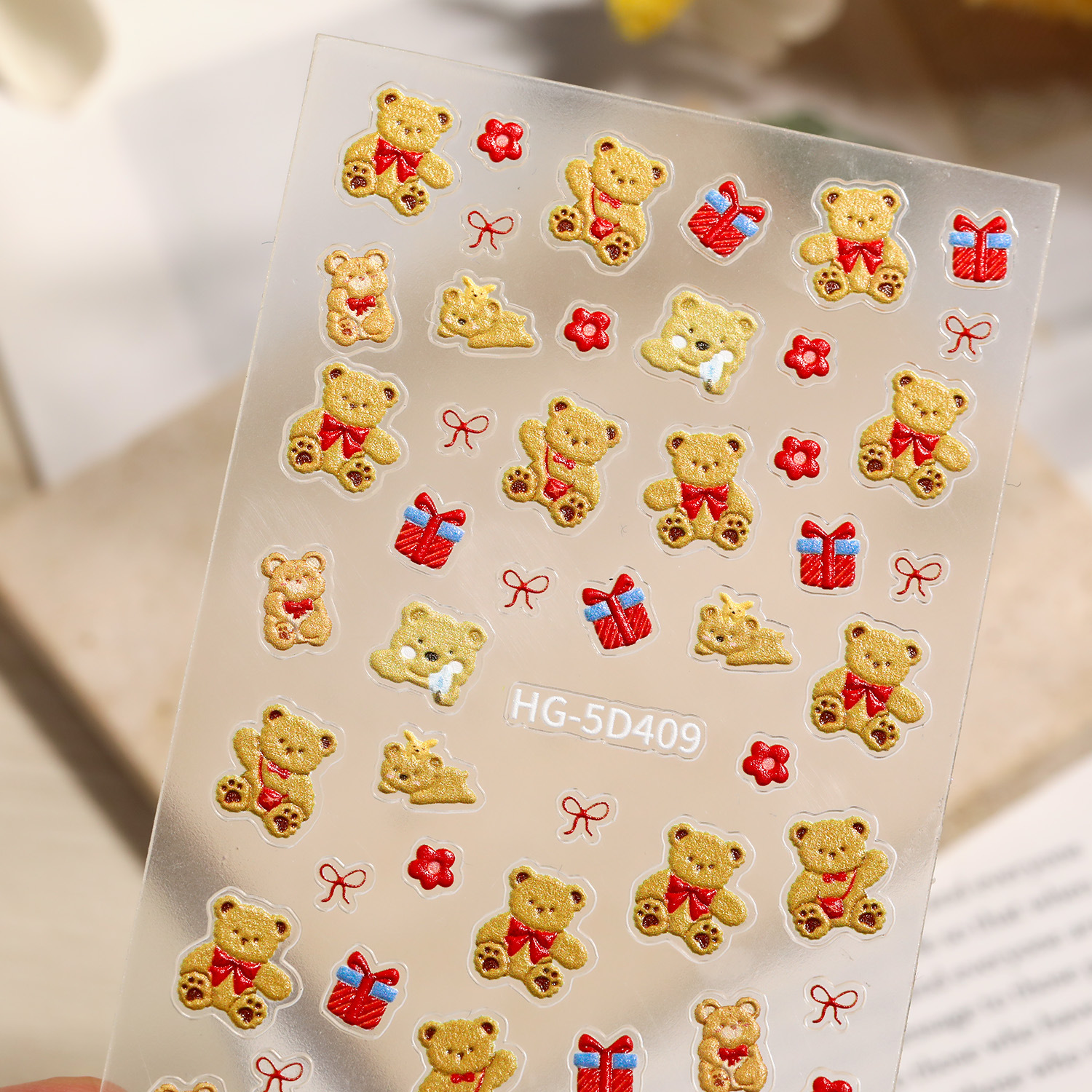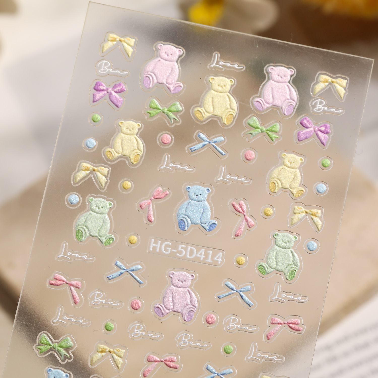 만화 귀여운 곰 네일 아트 스티커 5D 구호 스테레오 다크 브라운 곰 인형 네일 스티커 보석 HG스토어 가기