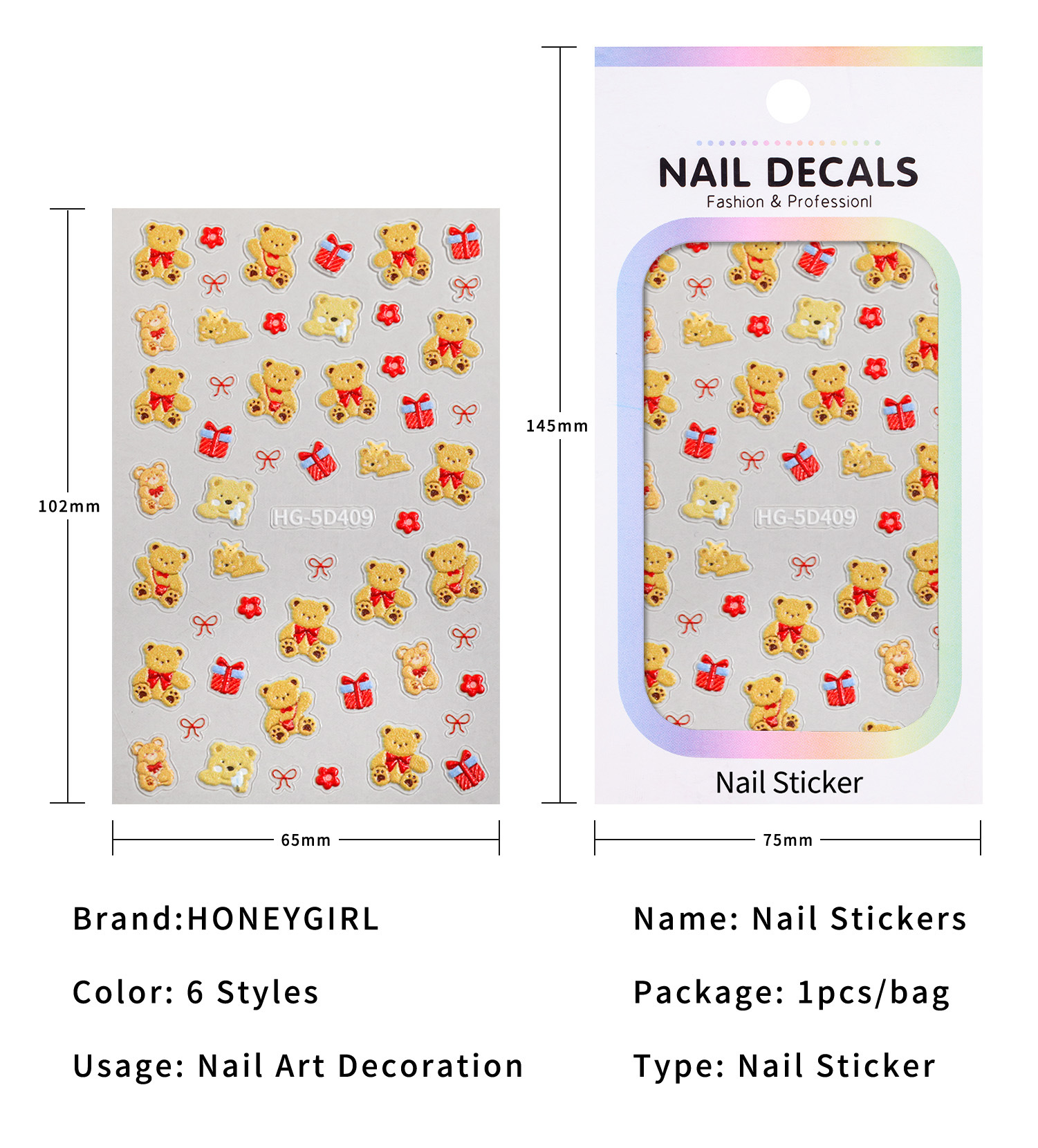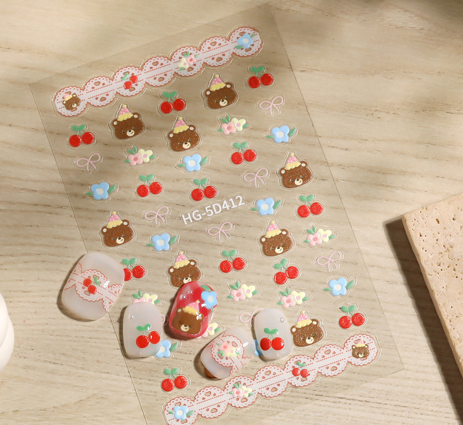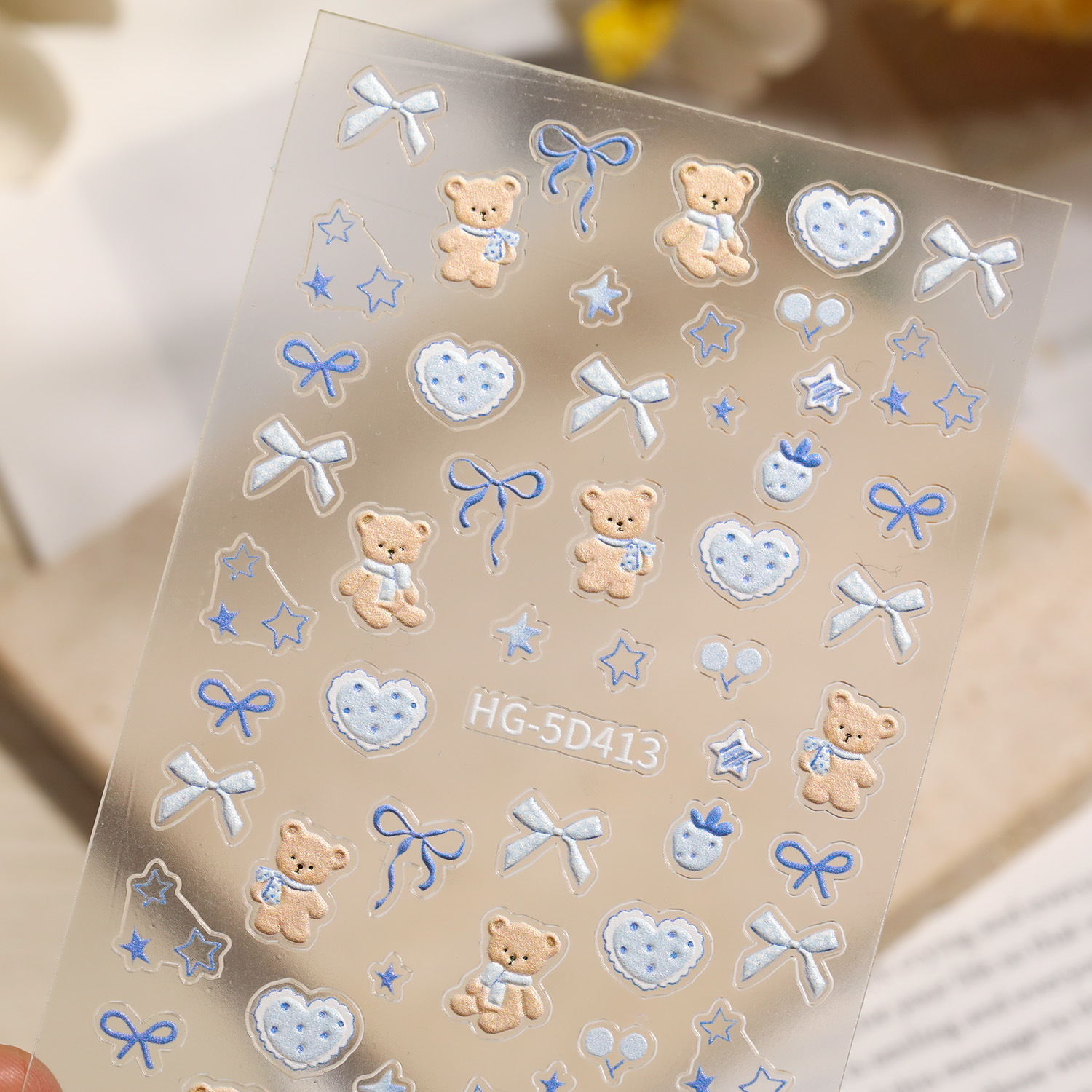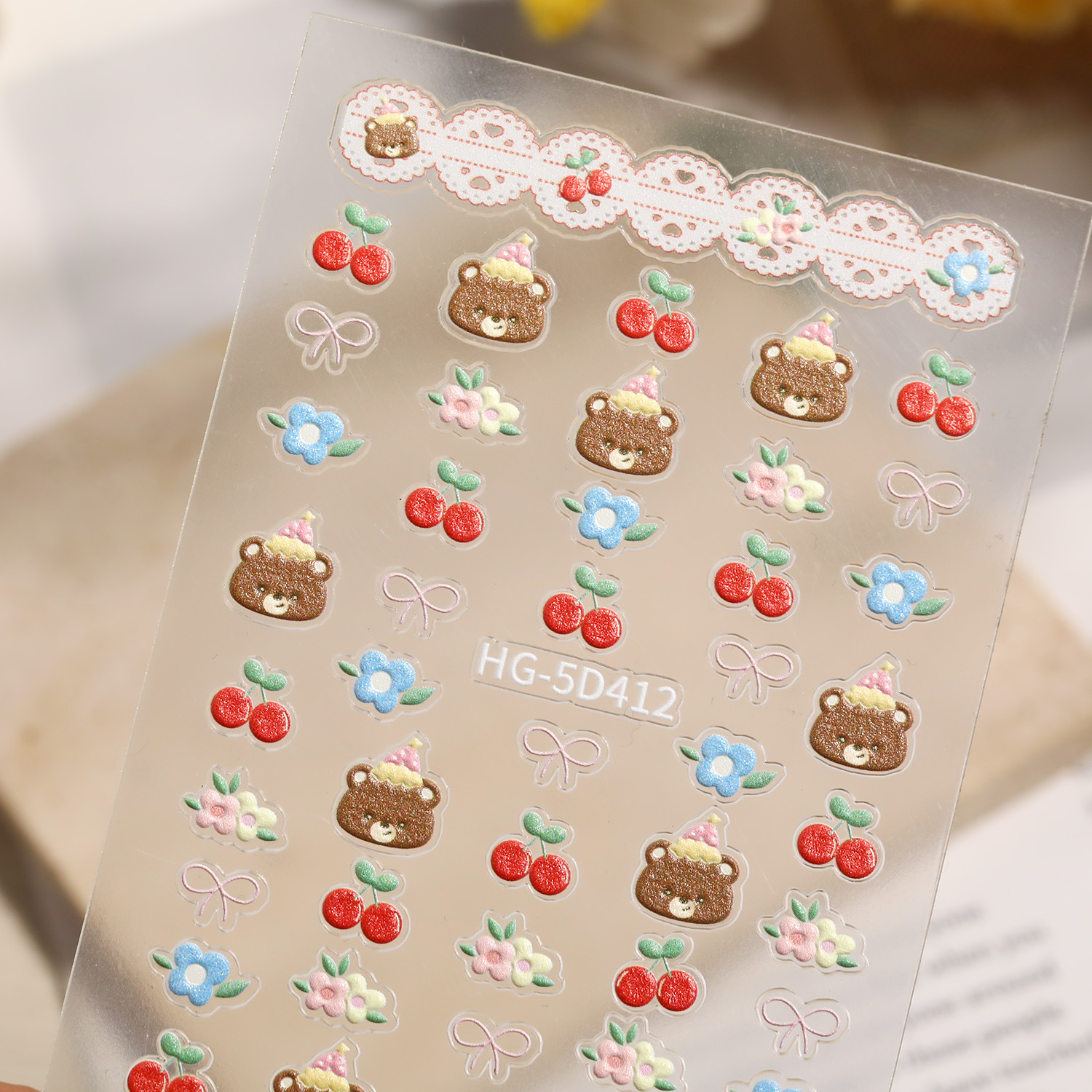 만화 귀여운 곰 네일 아트 스티커 5D 구호 스테레오 다크 브라운 곰 인형 네일 스티커 보석 HG