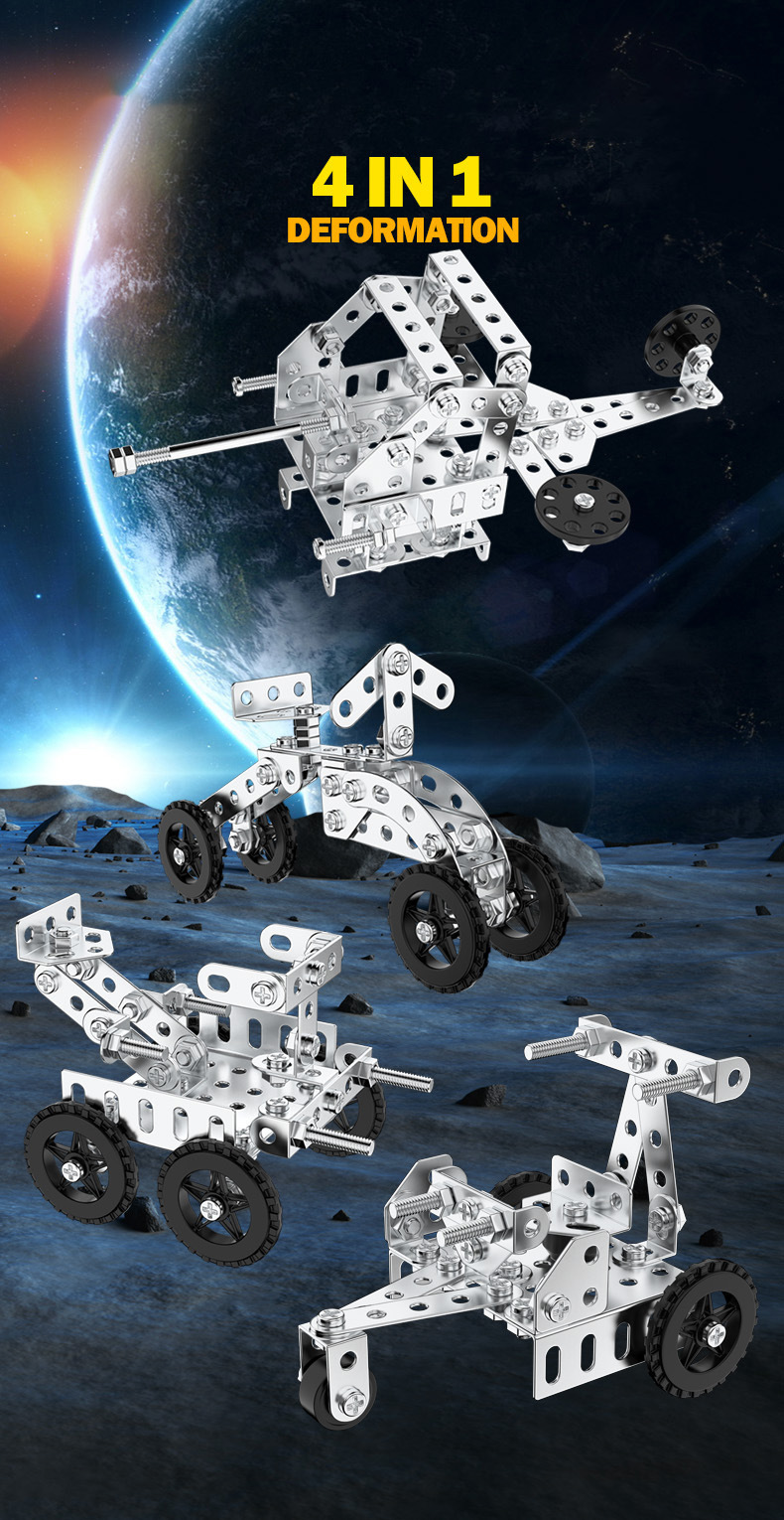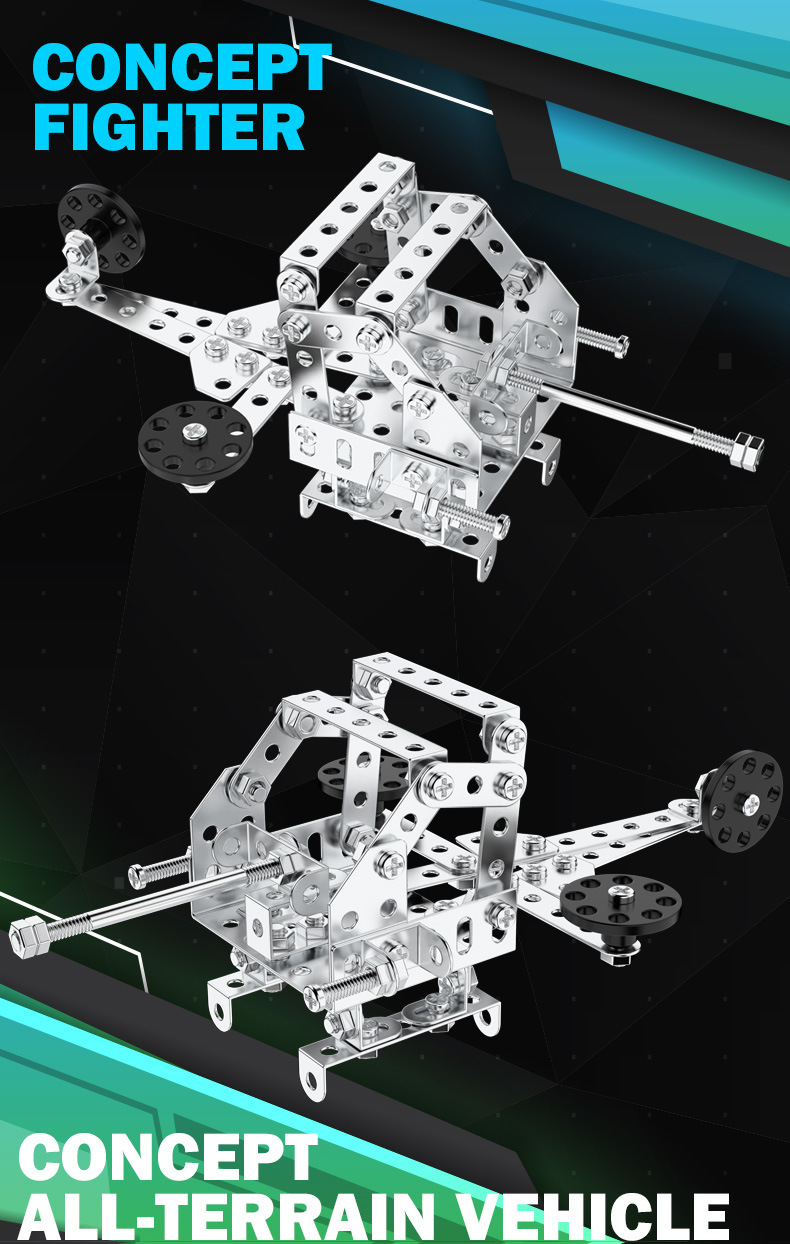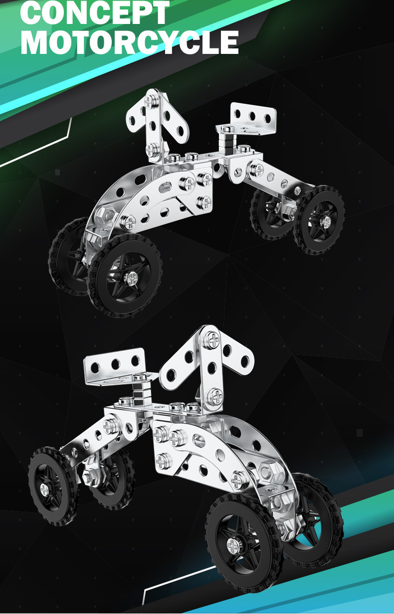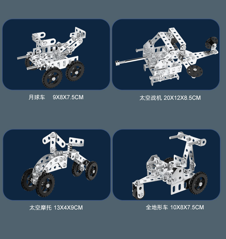 도매 어린이 금속 조립 장난감 3D 입체 창조적 인 조립 개념 자동차 공간 모델 항공기 오토바이 빌딩 블록
