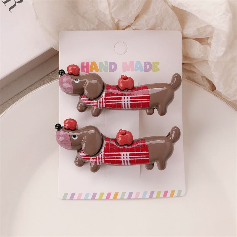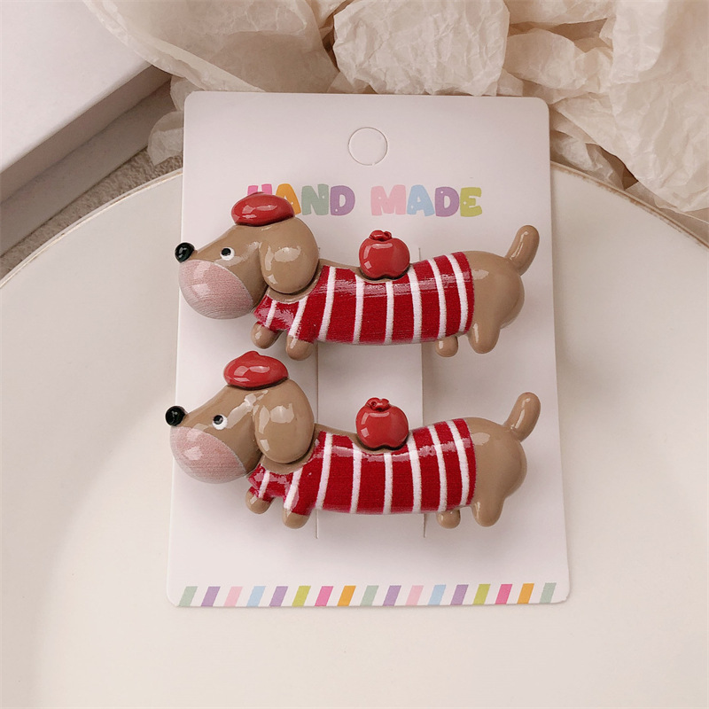 새로운 닥스 훈트 강아지 재미 동물 머리핀 여성 틈새 디자인 센스 귀여운 사이드 덕빌 클립 깨진 머리 앞머리 클립