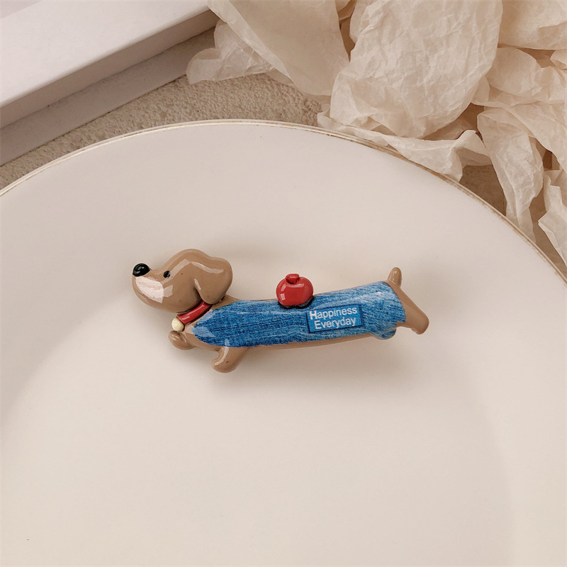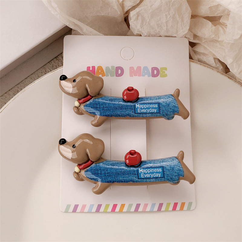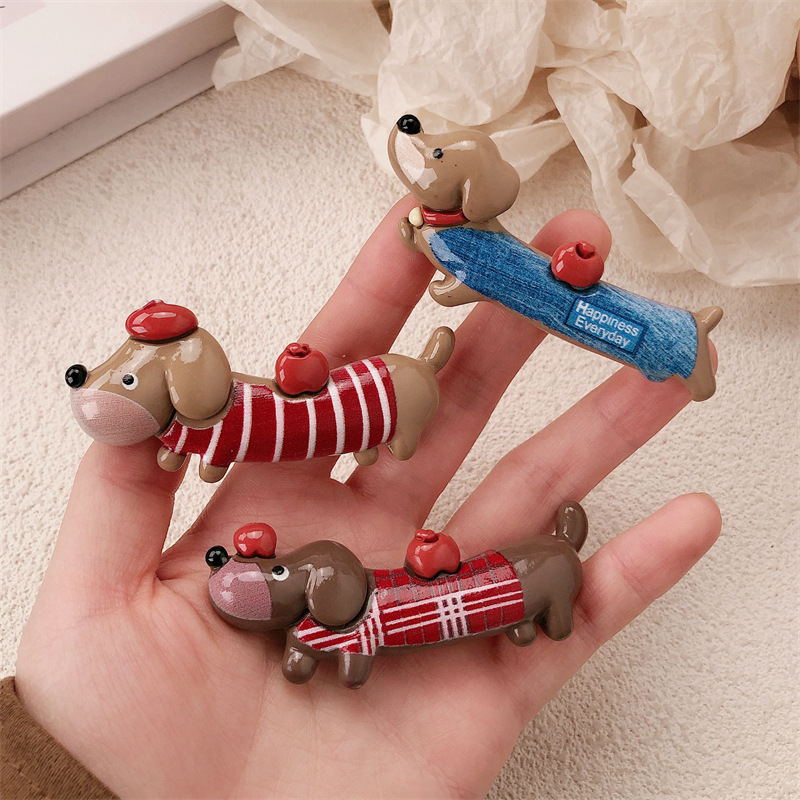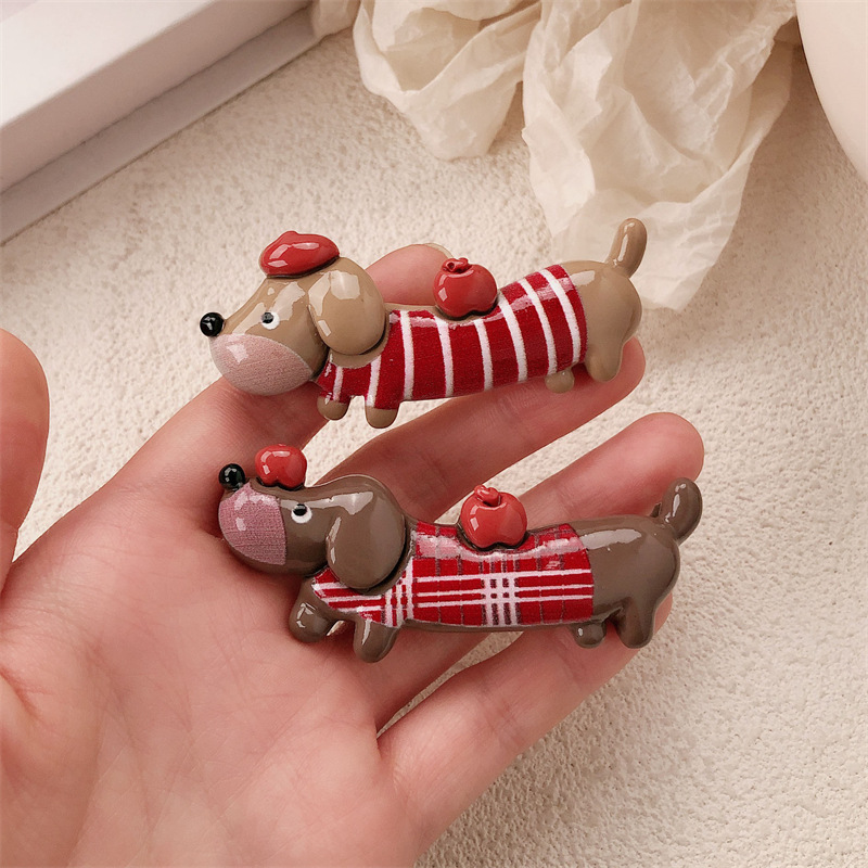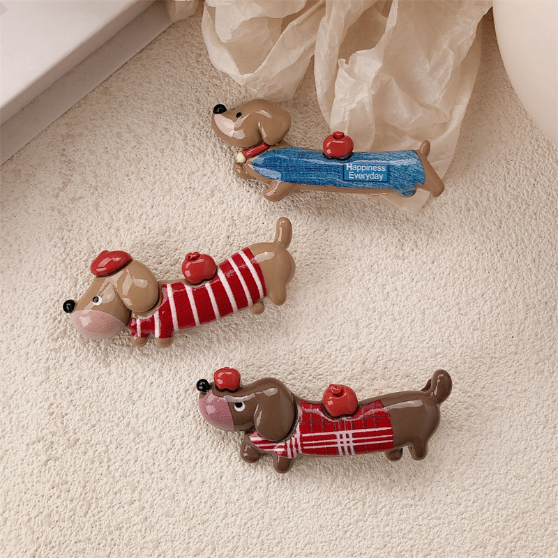 새로운 닥스 훈트 강아지 재미 동물 머리핀 여성 틈새 디자인 센스 귀여운 사이드 덕빌 클립 깨진 머리 앞머리 클립스토어 가기