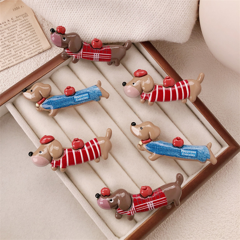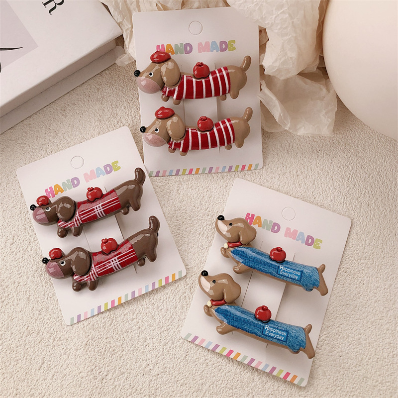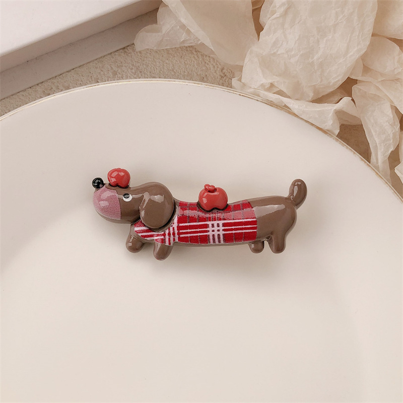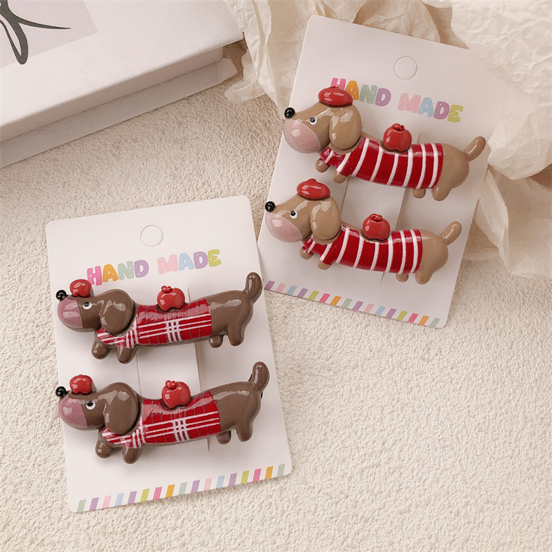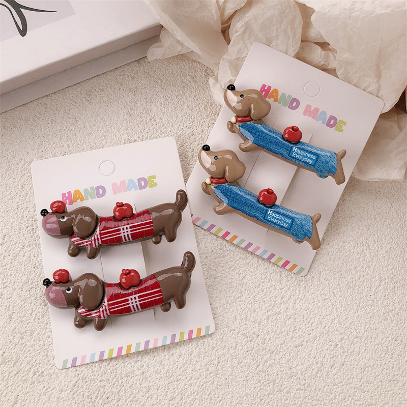 새로운 닥스 훈트 강아지 재미 동물 머리핀 여성 틈새 디자인 센스 귀여운 사이드 덕빌 클립 깨진 머리 앞머리 클립스토어 가기